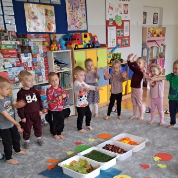 Podczas zajęć sensorycznych dzieci z grupy Kotki przeniosły się w świat jesiennych barw i faktur. Przedszkolaki śpiewały piosenki o tematyce jesieni ...