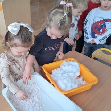 Zimowe doświadczenia ze śniegiem w grupie Kotków