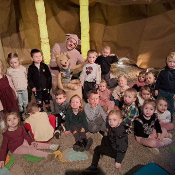 „Kotki” i „Misie” wybrały się na wyjątkową wycieczkę do Teatru Lalki i Aktora "Kubuś", gdzie obejrzały przedstawienie pt. „Misiaczek”.