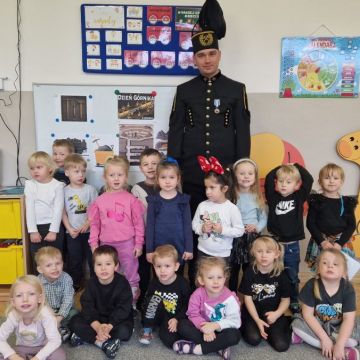 Dziś dzieci z grup Krasnale i Misie gościły wyjątkowego gościa – Górnika z kopalni odkrywkowej.