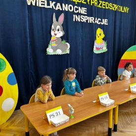 W pierwszym etapie konkursu przedszkolaki wykonały kolorowe, kreatywne i piękne prace plastyczne związane z tematyką świąteczną. Wszystkie prace zostały wysoko ocenione przez komisję konkursową. Następnie dzieci wzięły udział w miniquizie wiedzy o Wielkanocy, z którym poradziły sobie znakomicie. Konkurs przebiegał w ciepłej i radosnej atmosferze. Wszyscy uczestnicy zaprezentowali bardzo wysoki poziom, dlatego szanowne jury postanowiło przyznać wszystkim dzieciom pierwsze miejsca oraz wyróżnienia.