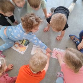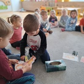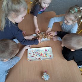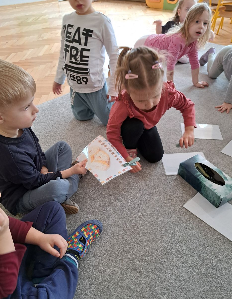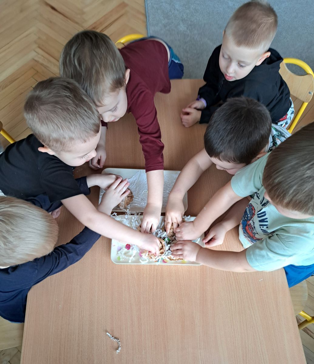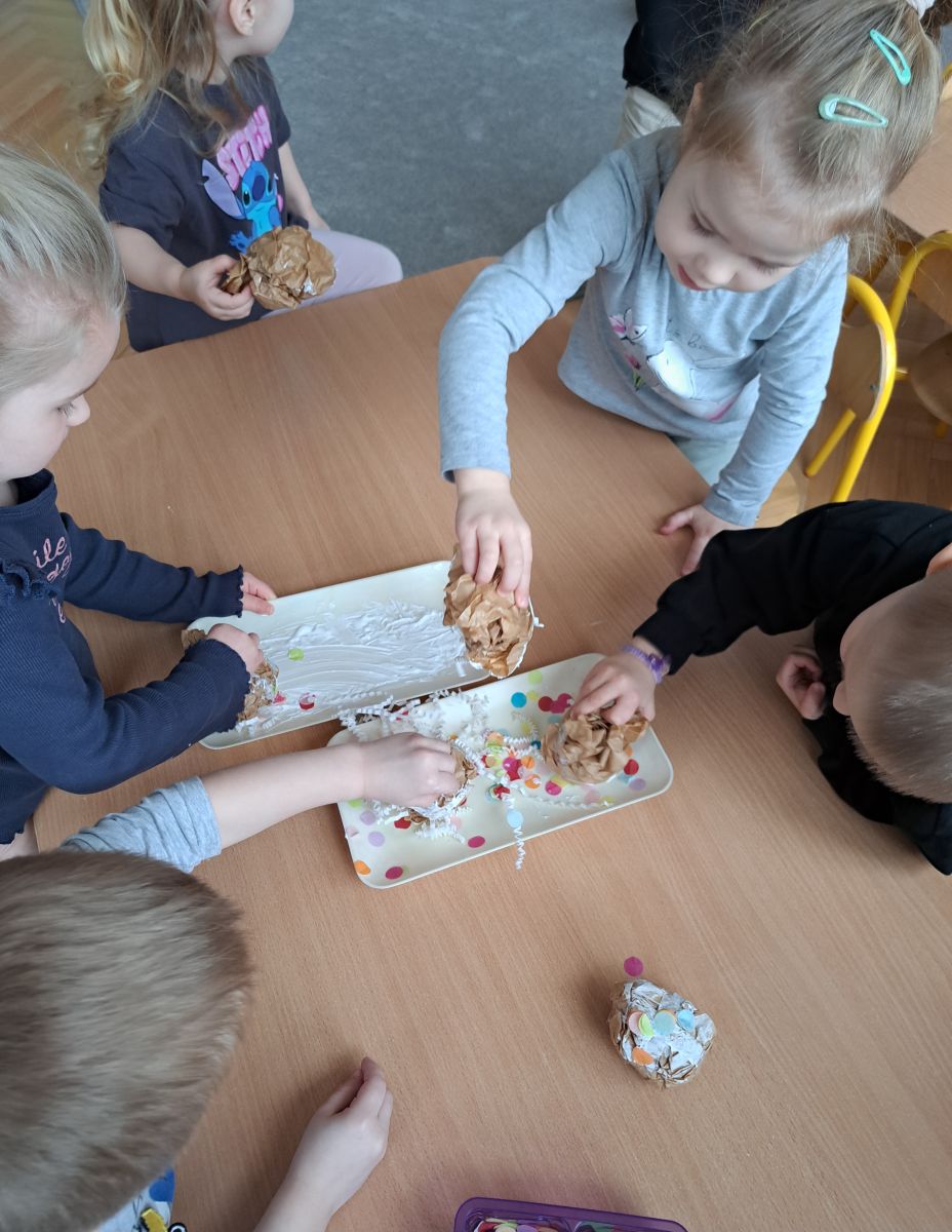 Dzieci poznały tradycje związane z tym dniem oraz porównywały wygląd słodkości z różnych krajów. Oglądały ilustracje pączków i innych wypieków, zwracając uwagę na ich kształt, kolor oraz sposób dekoracji.