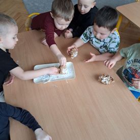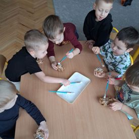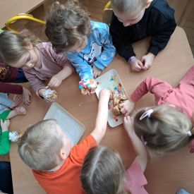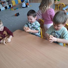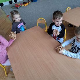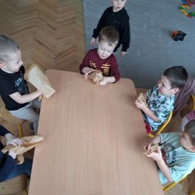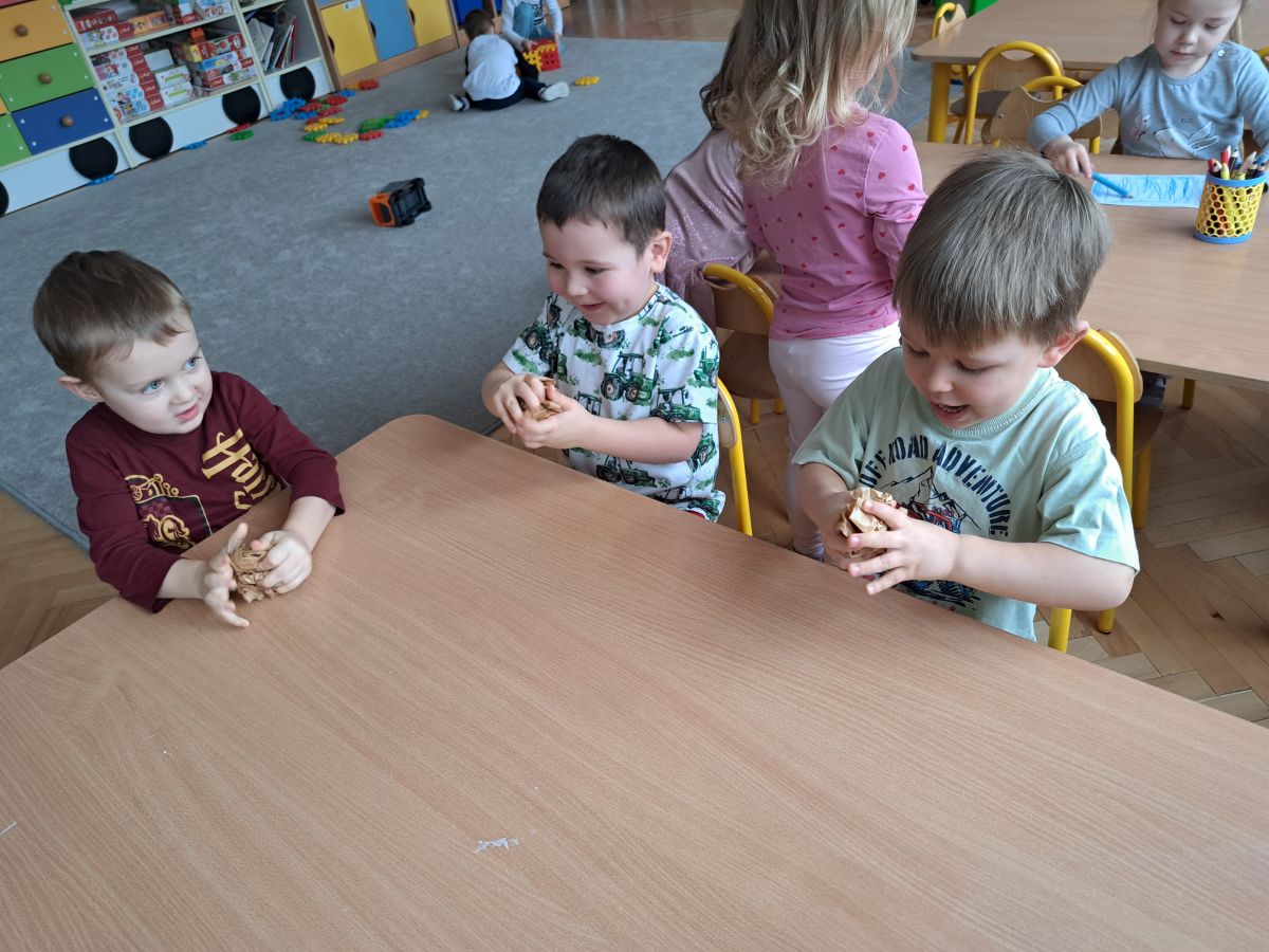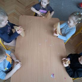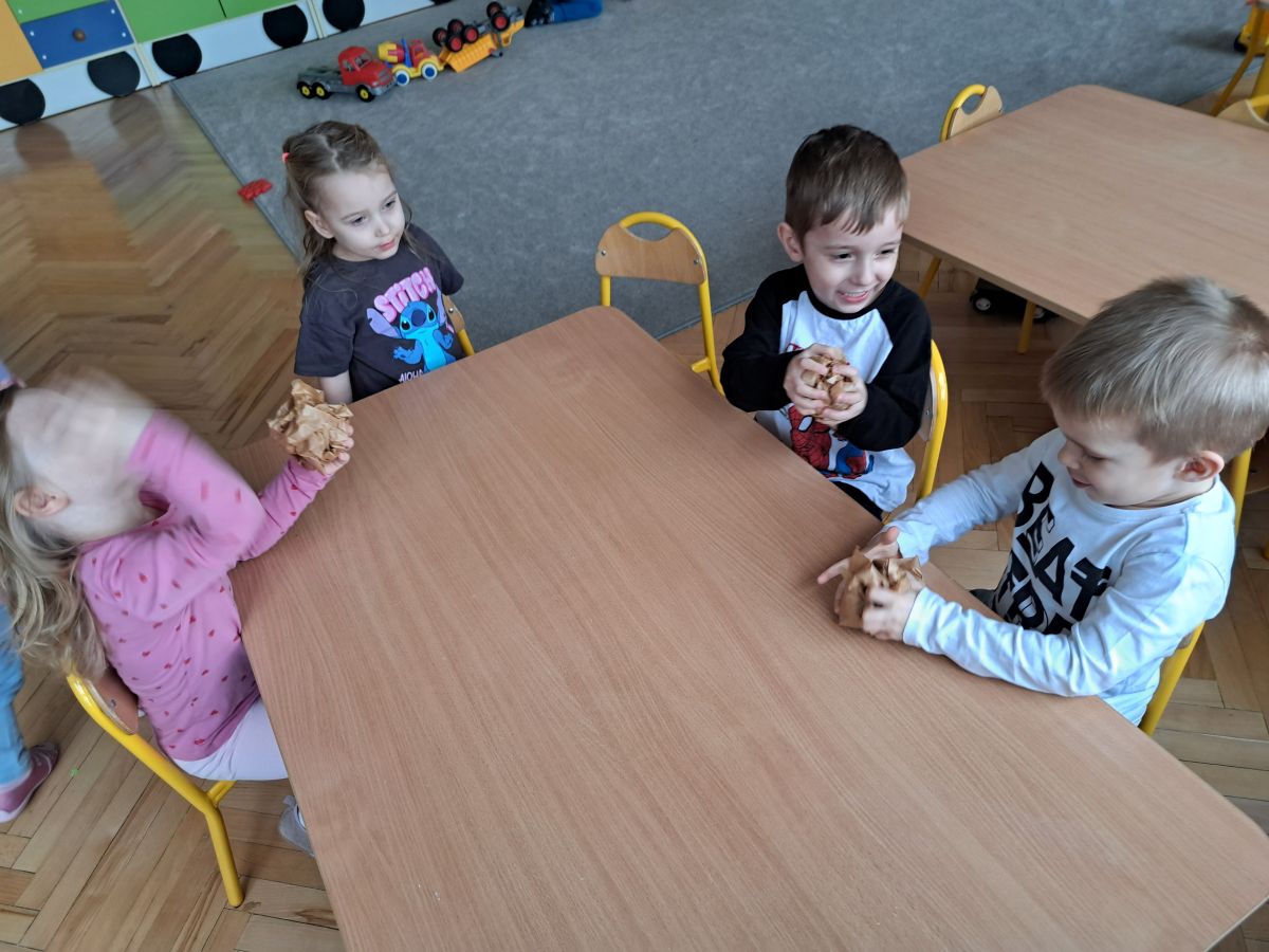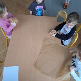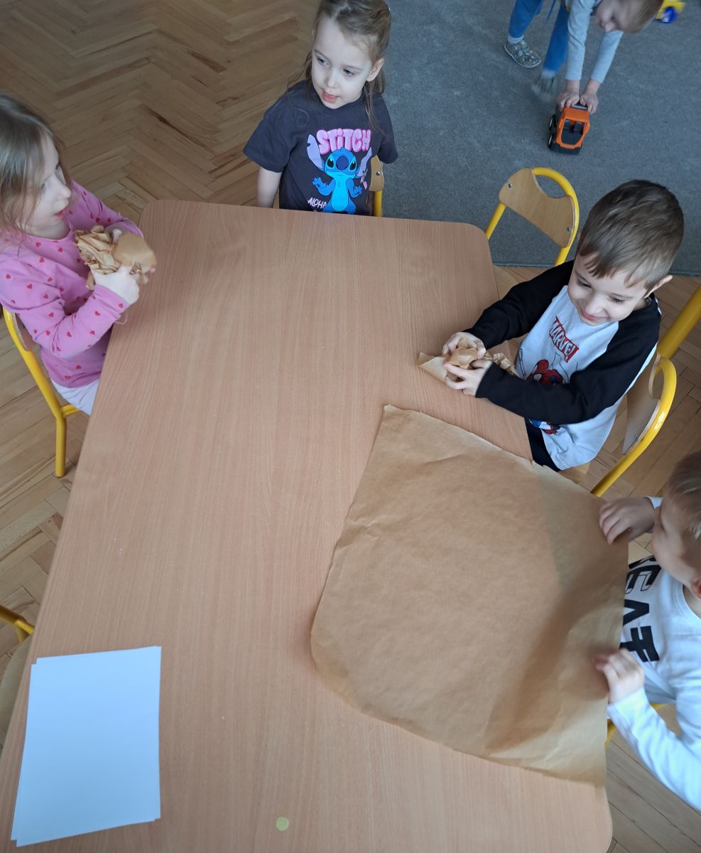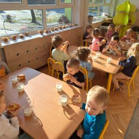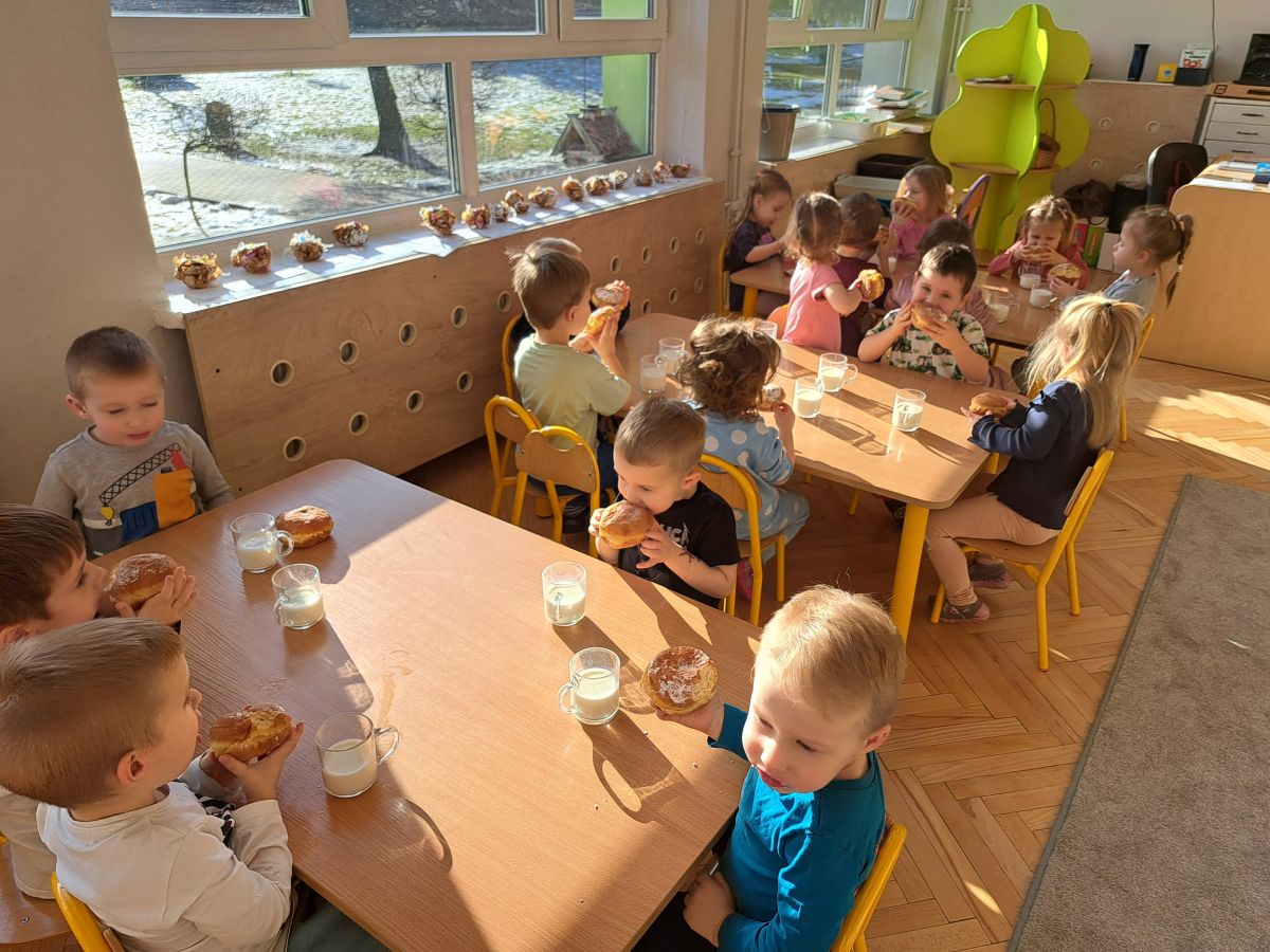 Na zakończenie, podczas podwieczorku, dzieci mogły spróbować prawdziwych pączków, co było miłym i słodkim zwieńczeniem dnia.