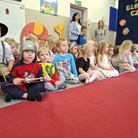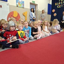 W trakcie spotkania dzieci zaprezentowały swoje talenty wokalne, śpiewając znane i lubiane piosenki: „Na wyspach Bergamutach”, „Witajcie w naszej bajce” oraz „Bajeczki”. Nie zabrakło również zabawy – Zastępca Prezydenta Miasta Kielce Pan Tomasz Porębski wziął udział w bajkowym teście, podczas którego musiał odgadnąć, z jakich bajek pochodzą przedstawiane postacie. Pomocą służyły dzieci, które wcieliły się w swoich ulubionych bohaterów i chętnie udzielały podpowiedzi.