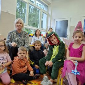 Na zakończenie spotkania dzieci wręczyły gościowi wyjątkowy upominek – własnoręcznie wykonaną książkę z ilustracjami inspirowanymi ulubionymi bajkami. Wspólne zdjęcie było pięknym podsumowaniem tego pełnego radości i ciepła wydarzenia.
