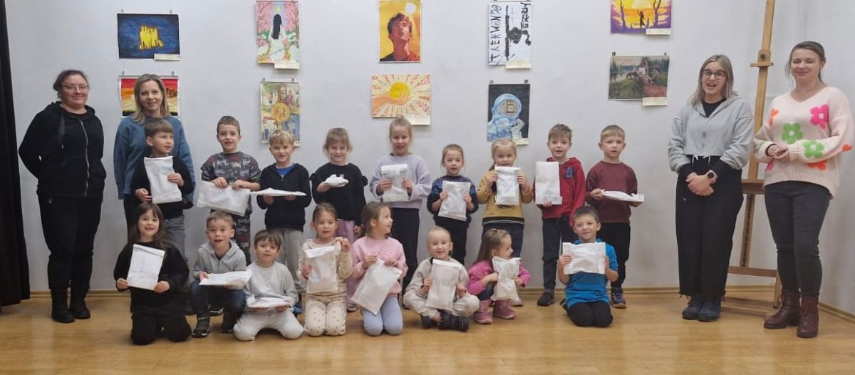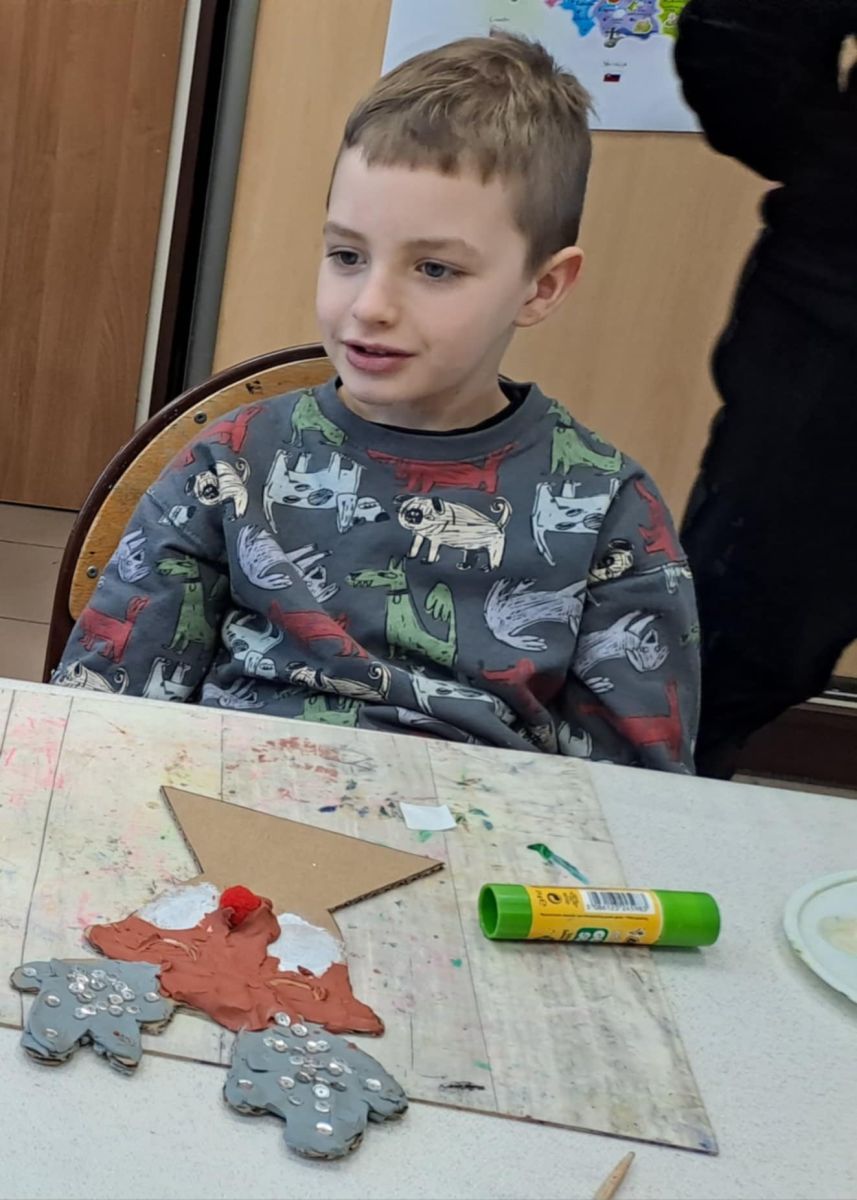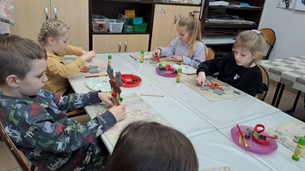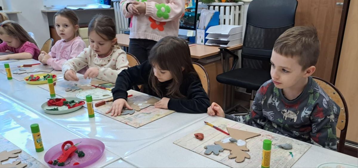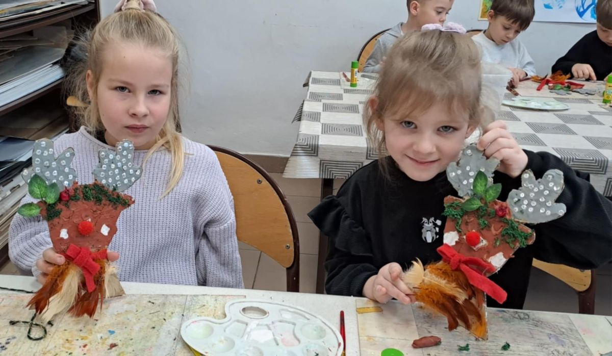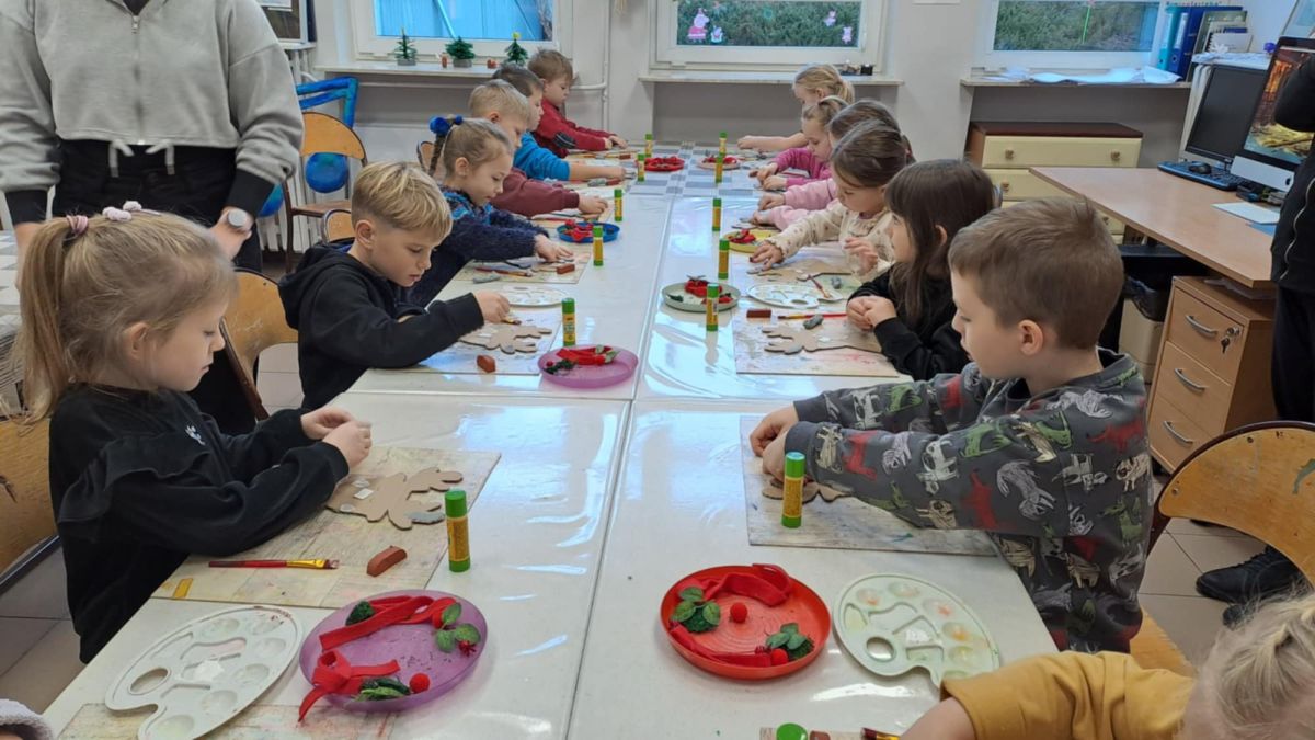 Grupa Biedronek z naszego przedszkola odwiedziła Ośrodek Kultury „Ziemowit”, aby wziąć udział w twórczych warsztatach pt. „Renifery w szaliczku”. Podczas zajęć dzieci wykonały własne, płaskie zawieszki w kształcie renifera. Każda praca była wyjątkowa – przedszkolaki dekorowały swoje renifery farbami, piórami, mchem, igliwiem oraz materiałem. Warsztaty były doskonałą okazją do rozwijania kreatywności, sprawności manualnej i wyobraźni.