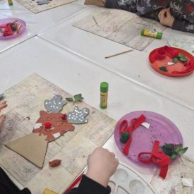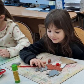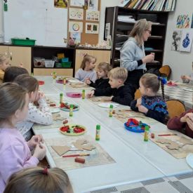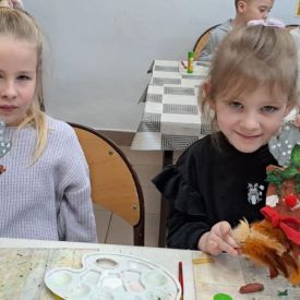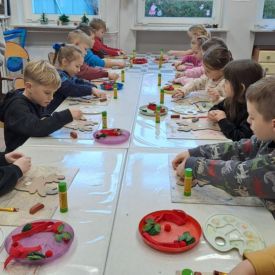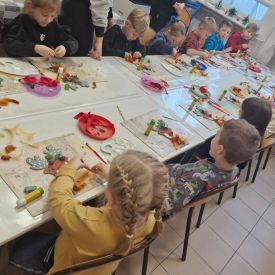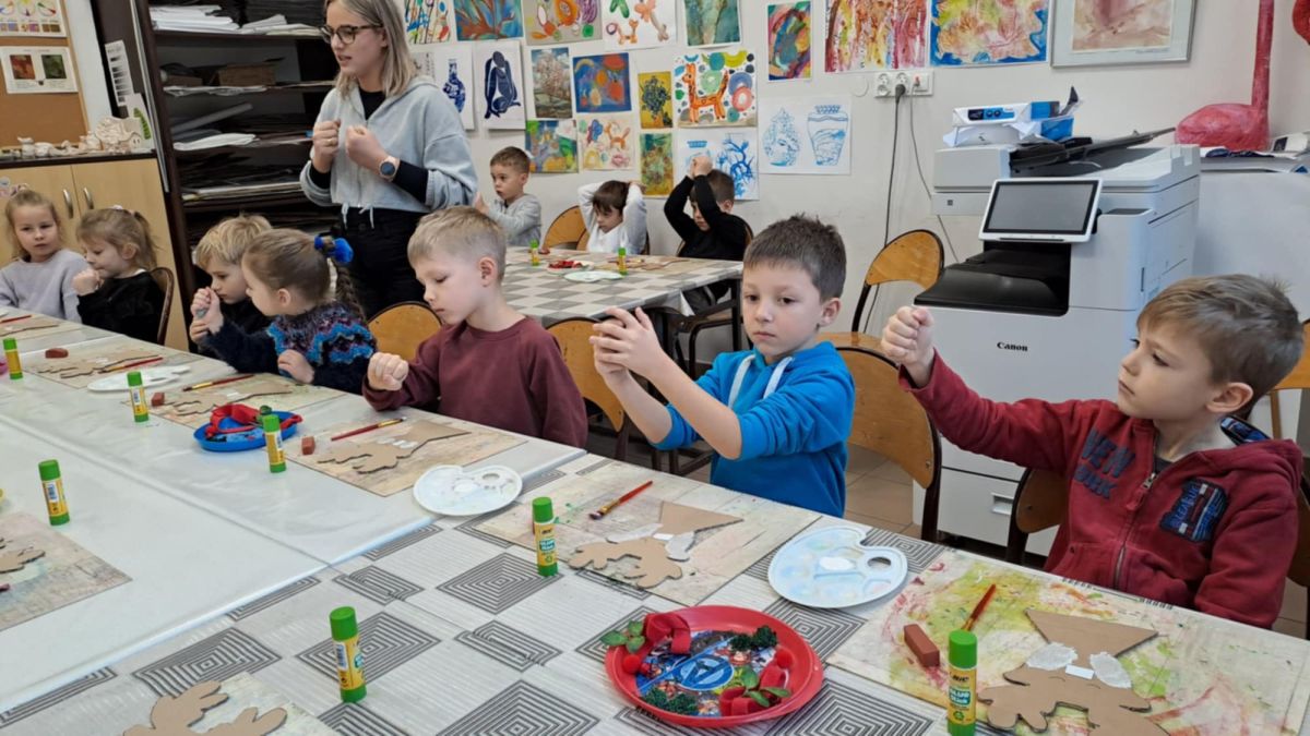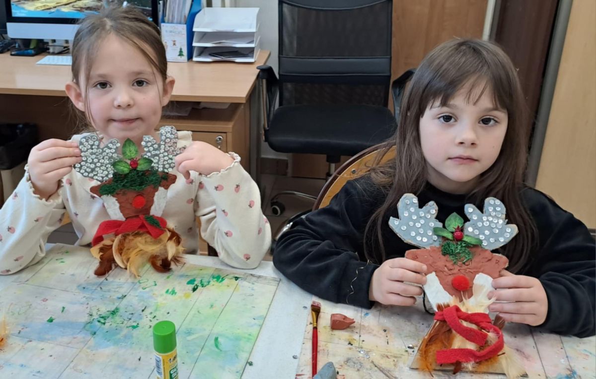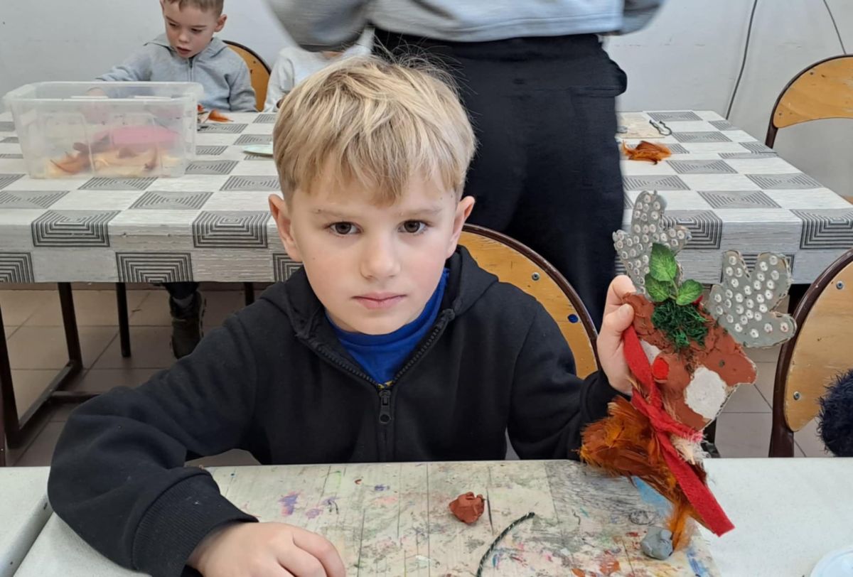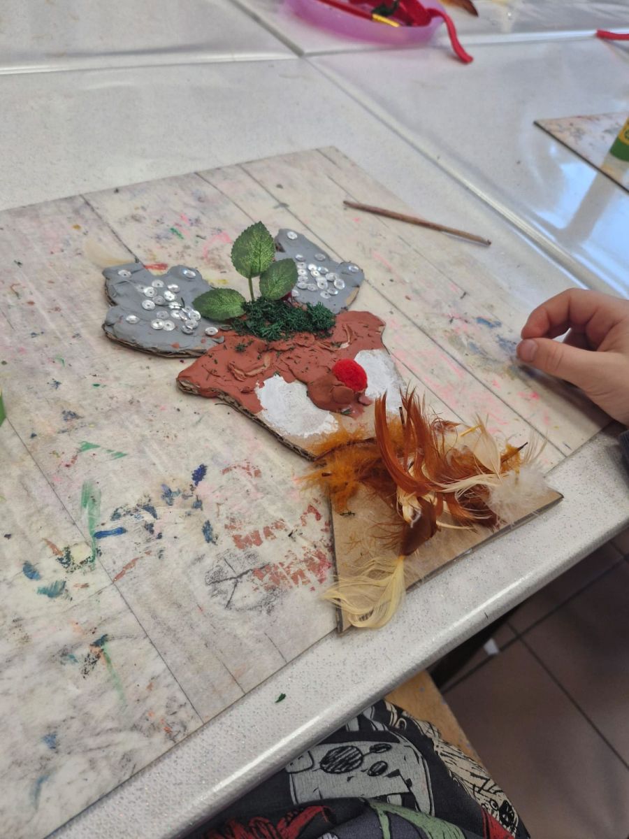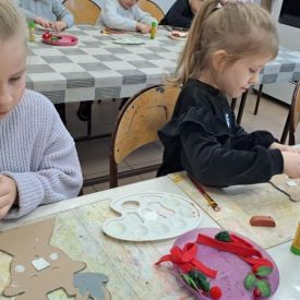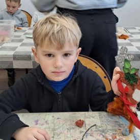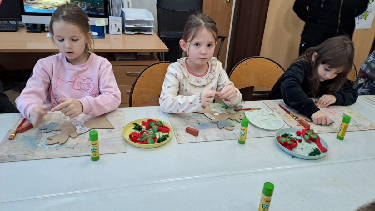 Grupa Biedronek z naszego przedszkola odwiedziła Ośrodek Kultury „Ziemowit”, aby wziąć udział w twórczych warsztatach pt. „Renifery w szaliczku”. Podczas zajęć dzieci wykonały własne, płaskie zawieszki w kształcie renifera. Każda praca była wyjątkowa – przedszkolaki dekorowały swoje renifery farbami, piórami, mchem, igliwiem oraz materiałem. Warsztaty były doskonałą okazją do rozwijania kreatywności, sprawności manualnej i wyobraźni.