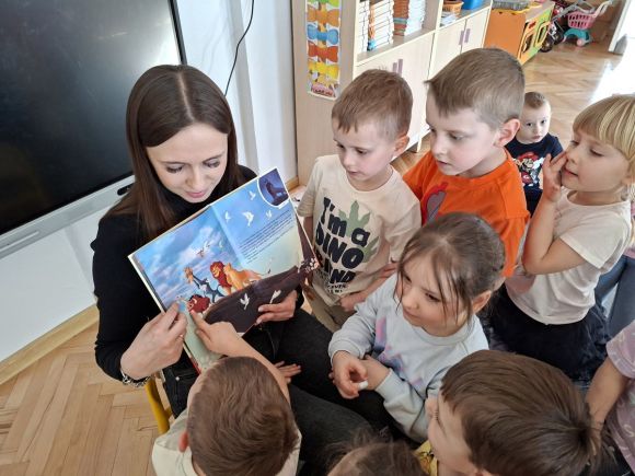 W grupie Jeżyki odbyło się kolejne spotkanie w ramach naszej przedszkolnej akcji „Rodzinne czytanie”. Dziś mieliśmy przyjemność gościć mamę Wiktorka i Kubusia, która odwiedziła nas w przedszkolu i przeczytała dzieciom dwa piękne utwory: „Król Lew” oraz „Piorun”.