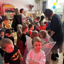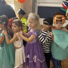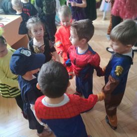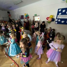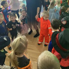 Dziękujemy dzieciom za wspaniałą zabawę, rodzicom za przygotowanie przepięknych kostiumów, a Panu Mateuszowi za kolejne niezapomniane spotkanie.