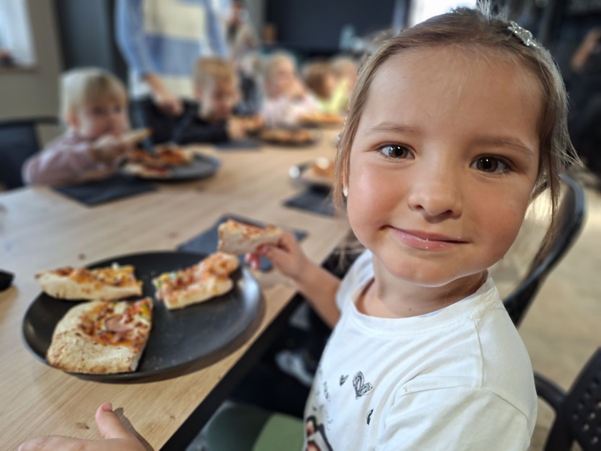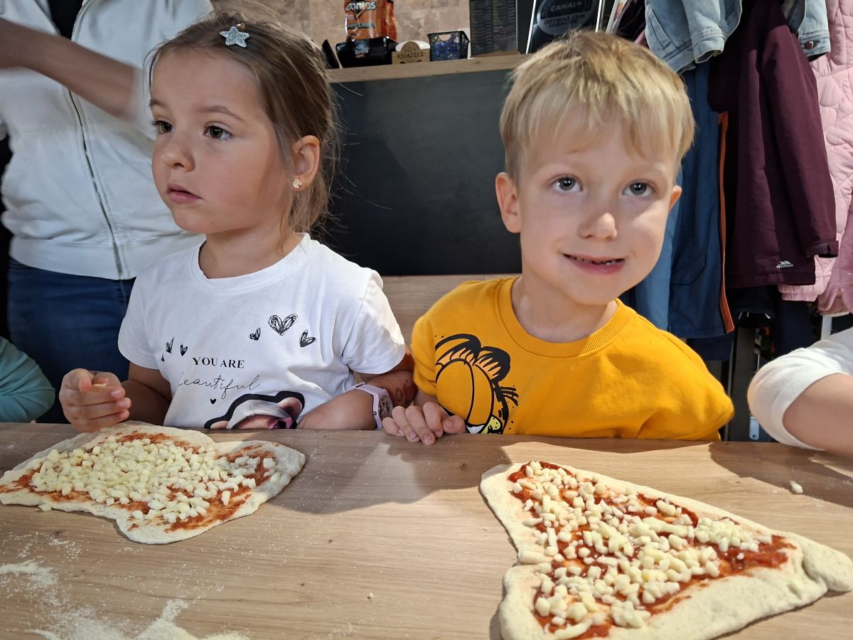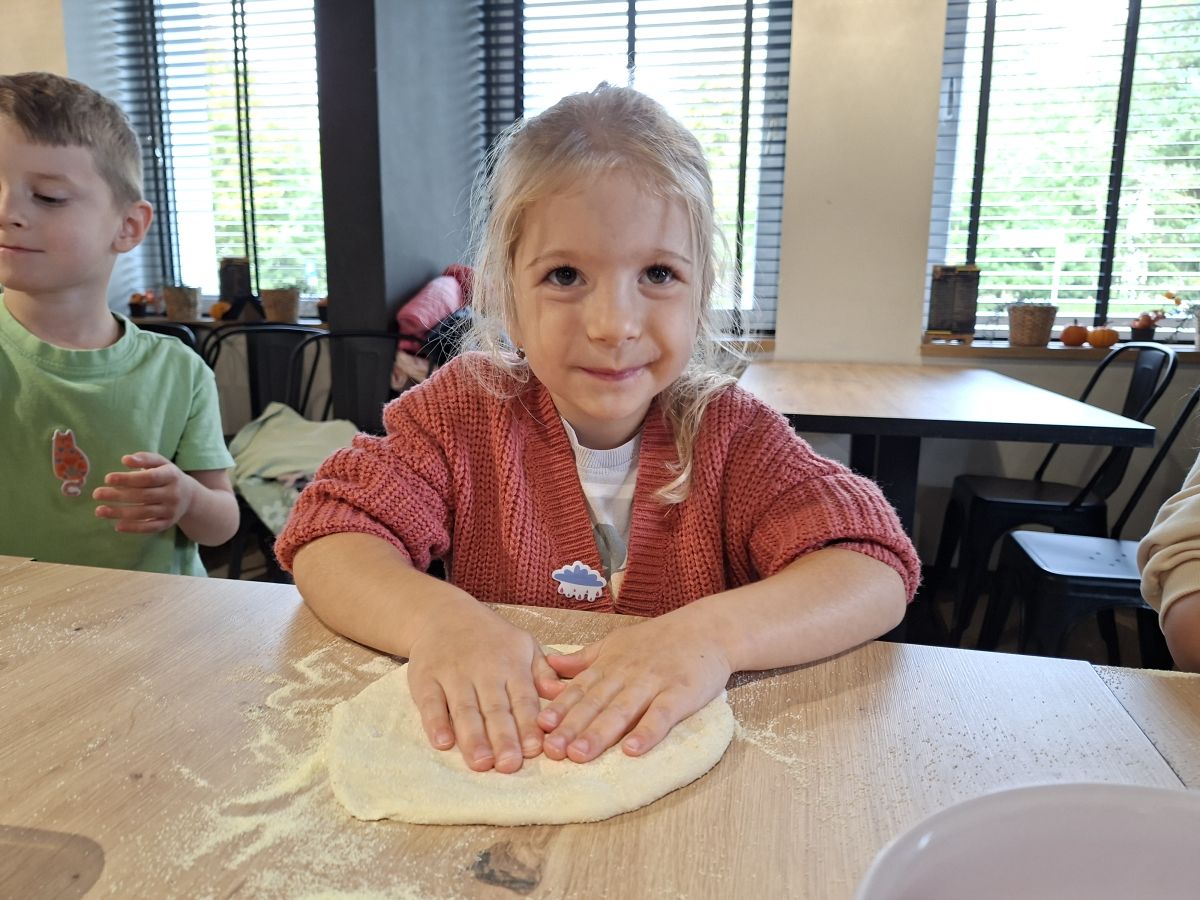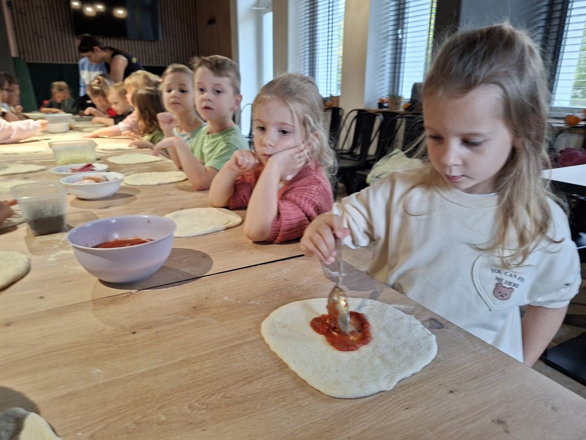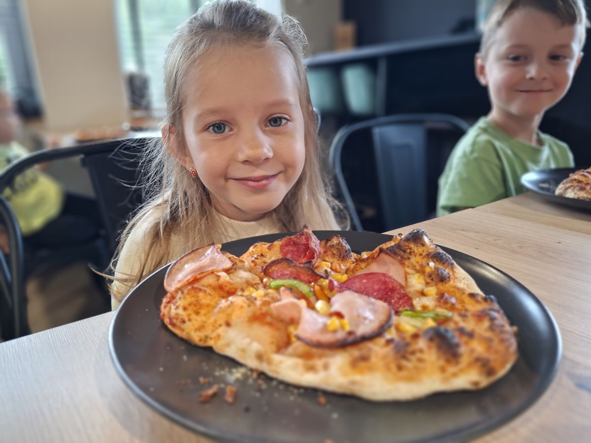 Dziś grupa Jeżyki wzięła udział w wyjątkowych warsztatach kulinarnych, podczas których dzieci samodzielnie przygotowywały pizzę. Na początku zajęć uczestnicy poznali składniki potrzebne do przygotowania ciasta – mąkę, drożdże, wodę, oliwę oraz sól. Następnie, zgodnie z instrukcją prowadzącego, wyrabiały własne ciasto, ucząc się przy tym cierpliwości i dokładności. Kiedy ciasto było gotowe, dzieci mogły wybrać swoje ulubione dodatki – sos pomidorowy, ser, szynkę, kukurydzę, pomidory, oliwki czy pieczarki. Każdy mały kucharz stworzył swoją unikalną pizzę według własnego pomysłu. Z ogromnym zainteresowaniem obserwowaliśmy proces wypieku w piecu, a zapach świeżej pizzy wypełnił całą salę. Po chwili nadszedł najbardziej wyczekiwany moment – degustacja! Wszystkie pizze smakowały wyśmienicie, a dzieci z dumą częstowały się swoimi wypiekami. Na zakończenie każdy uczestnik otrzymał dyplom „Małego Kucharza”, potwierdzający zdobyte umiejętności i zaangażowanie w warsztaty. To był dzień pełen radości, wspólnej zabawy i kulinarnych przygód!