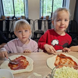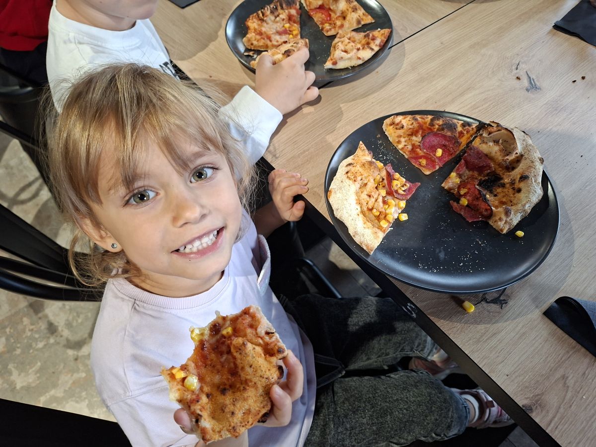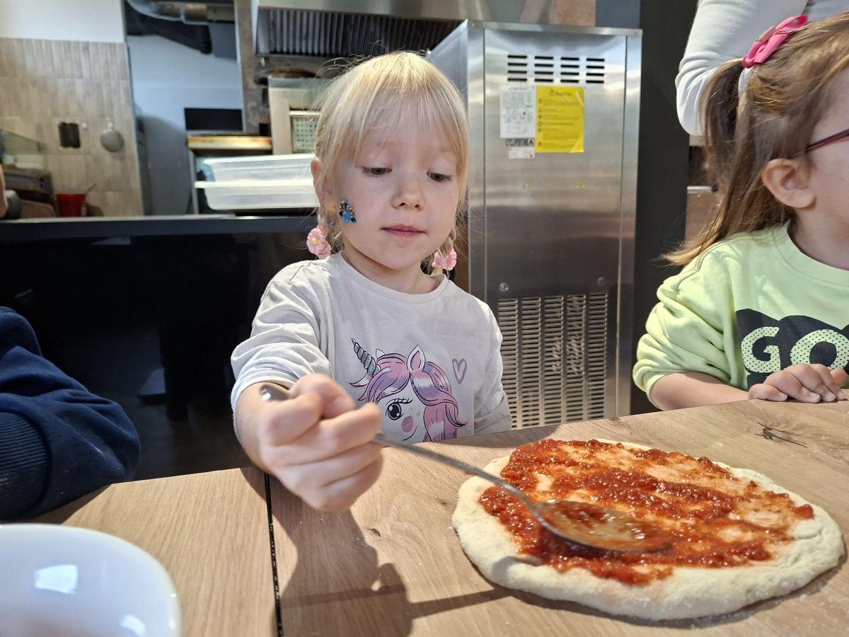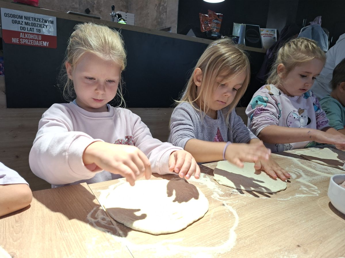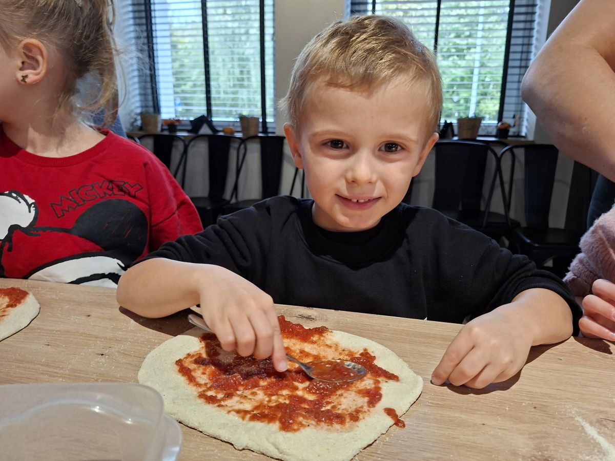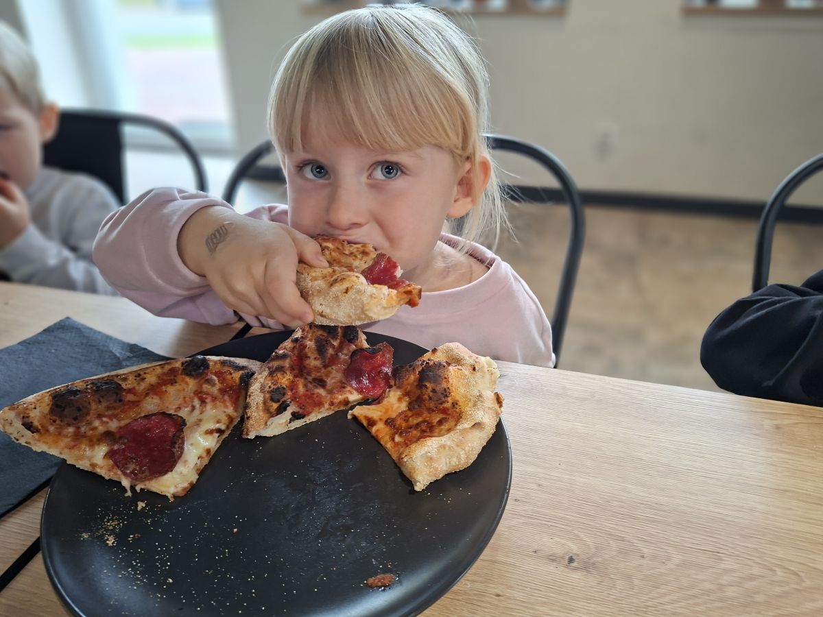 Dziś grupa Jeżyki wzięła udział w wyjątkowych warsztatach kulinarnych, podczas których dzieci samodzielnie przygotowywały pizzę. Na początku zajęć uczestnicy poznali składniki potrzebne do przygotowania ciasta – mąkę, drożdże, wodę, oliwę oraz sól. Następnie, zgodnie z instrukcją prowadzącego, wyrabiały własne ciasto, ucząc się przy tym cierpliwości i dokładności. Kiedy ciasto było gotowe, dzieci mogły wybrać swoje ulubione dodatki – sos pomidorowy, ser, szynkę, kukurydzę, pomidory, oliwki czy pieczarki. Każdy mały kucharz stworzył swoją unikalną pizzę według własnego pomysłu. Z ogromnym zainteresowaniem obserwowaliśmy proces wypieku w piecu, a zapach świeżej pizzy wypełnił całą salę. Po chwili nadszedł najbardziej wyczekiwany moment – degustacja! Wszystkie pizze smakowały wyśmienicie, a dzieci z dumą częstowały się swoimi wypiekami. Na zakończenie każdy uczestnik otrzymał dyplom „Małego Kucharza”, potwierdzający zdobyte umiejętności i zaangażowanie w warsztaty. To był dzień pełen radości, wspólnej zabawy i kulinarnych przygód!