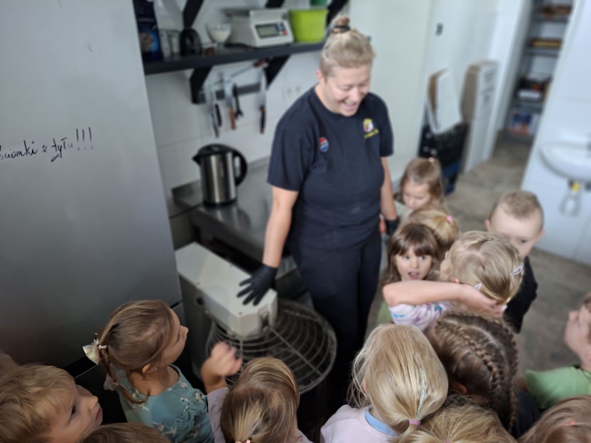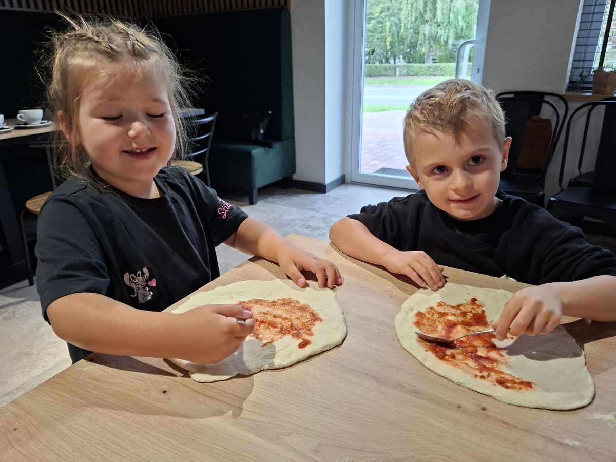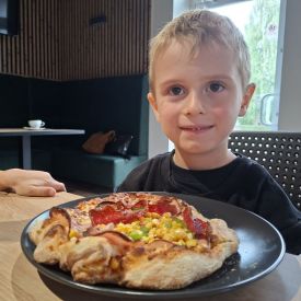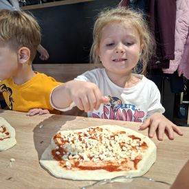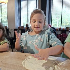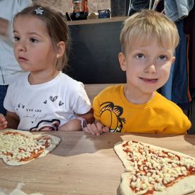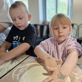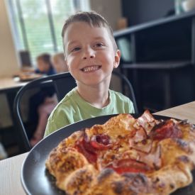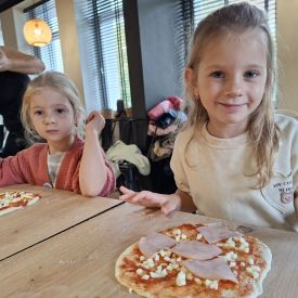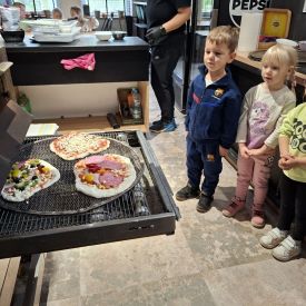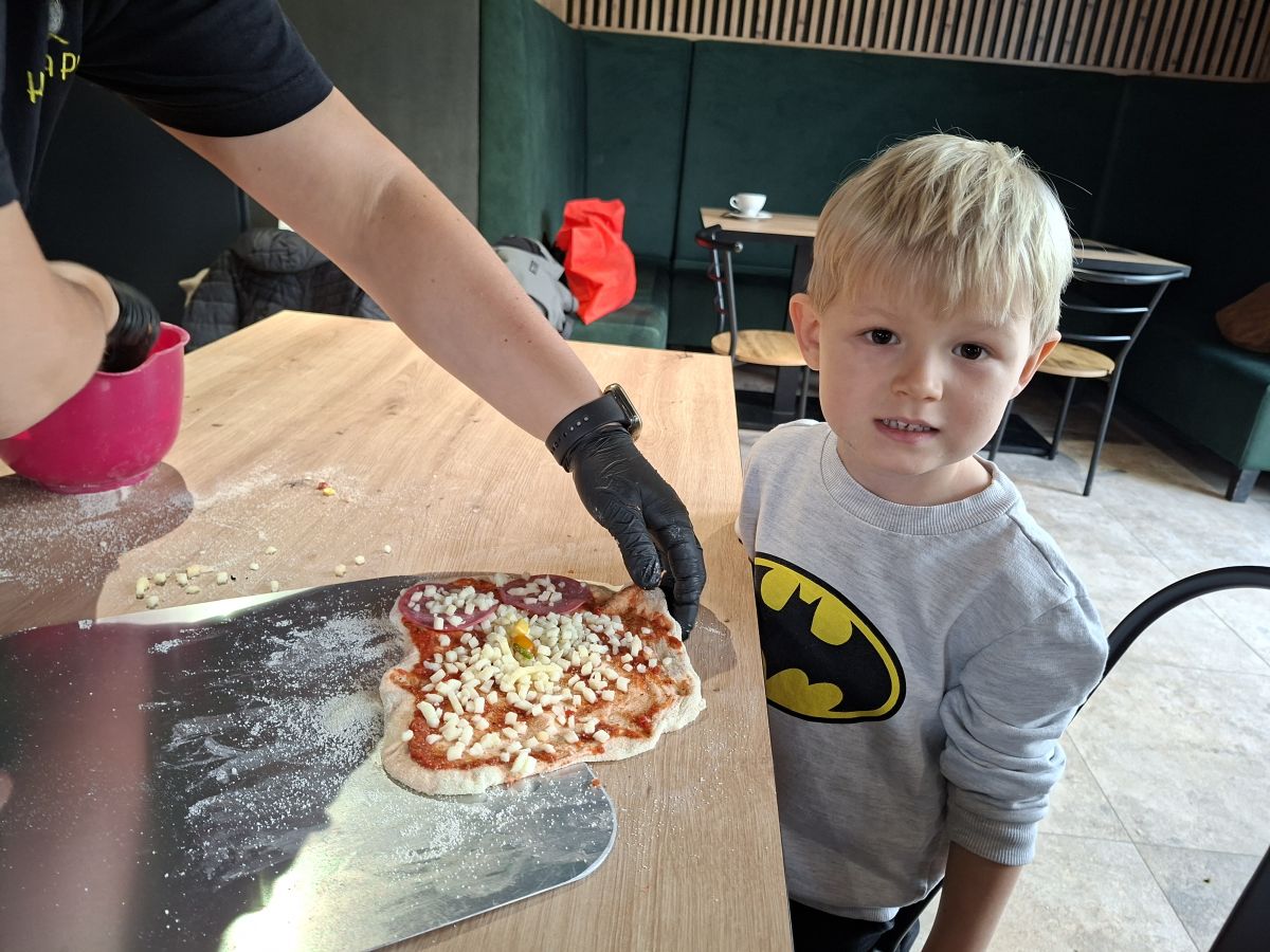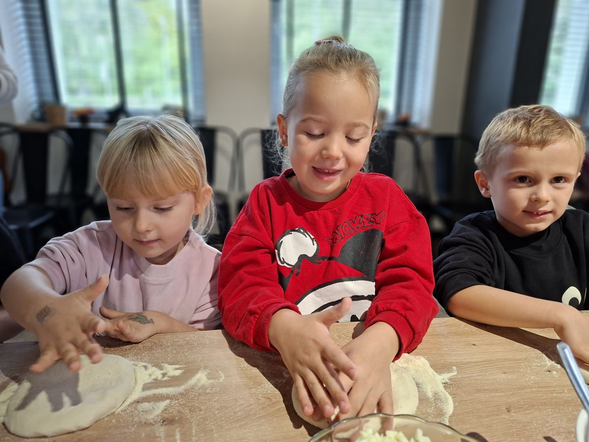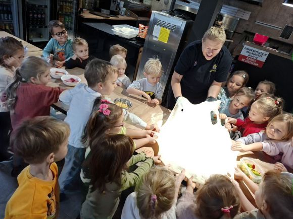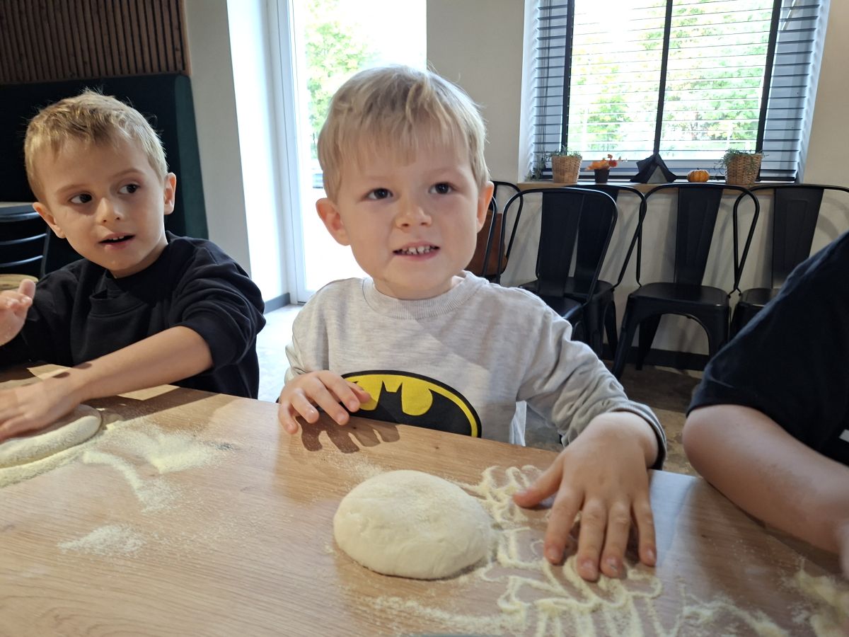 Dziś grupa Jeżyki wzięła udział w wyjątkowych warsztatach kulinarnych, podczas których dzieci samodzielnie przygotowywały pizzę. Na początku zajęć uczestnicy poznali składniki potrzebne do przygotowania ciasta – mąkę, drożdże, wodę, oliwę oraz sól. Następnie, zgodnie z instrukcją prowadzącego, wyrabiały własne ciasto, ucząc się przy tym cierpliwości i dokładności. Kiedy ciasto było gotowe, dzieci mogły wybrać swoje ulubione dodatki – sos pomidorowy, ser, szynkę, kukurydzę, pomidory, oliwki czy pieczarki. Każdy mały kucharz stworzył swoją unikalną pizzę według własnego pomysłu. Z ogromnym zainteresowaniem obserwowaliśmy proces wypieku w piecu, a zapach świeżej pizzy wypełnił całą salę. Po chwili nadszedł najbardziej wyczekiwany moment – degustacja! Wszystkie pizze smakowały wyśmienicie, a dzieci z dumą częstowały się swoimi wypiekami. Na zakończenie każdy uczestnik otrzymał dyplom „Małego Kucharza”, potwierdzający zdobyte umiejętności i zaangażowanie w warsztaty. To był dzień pełen radości, wspólnej zabawy i kulinarnych przygód!