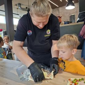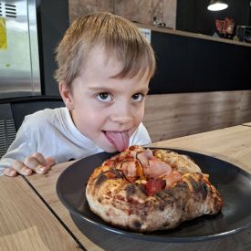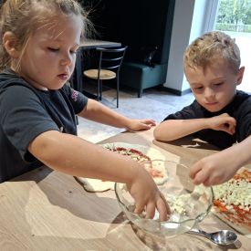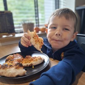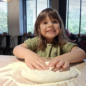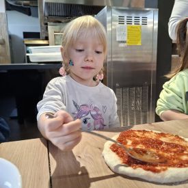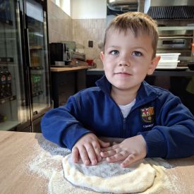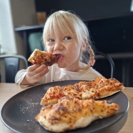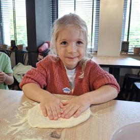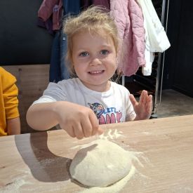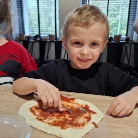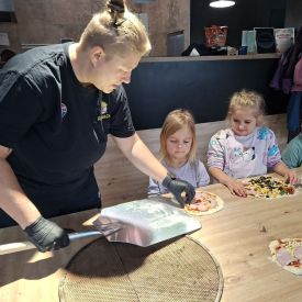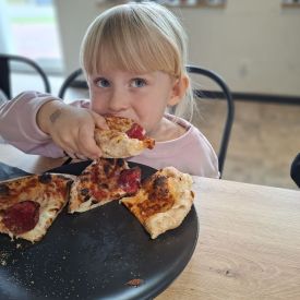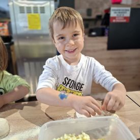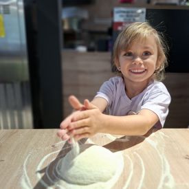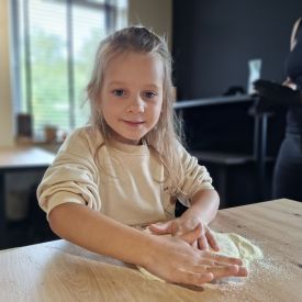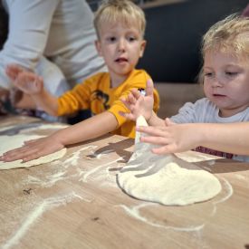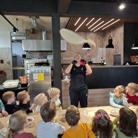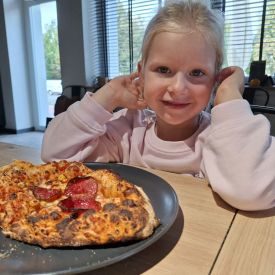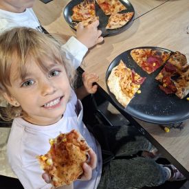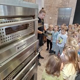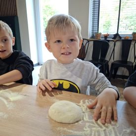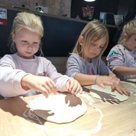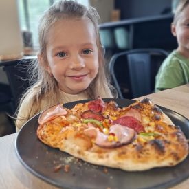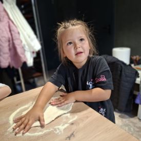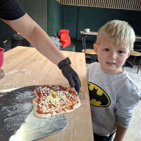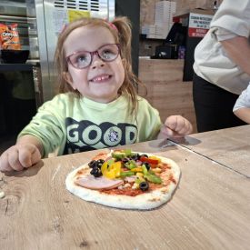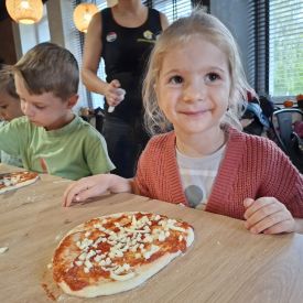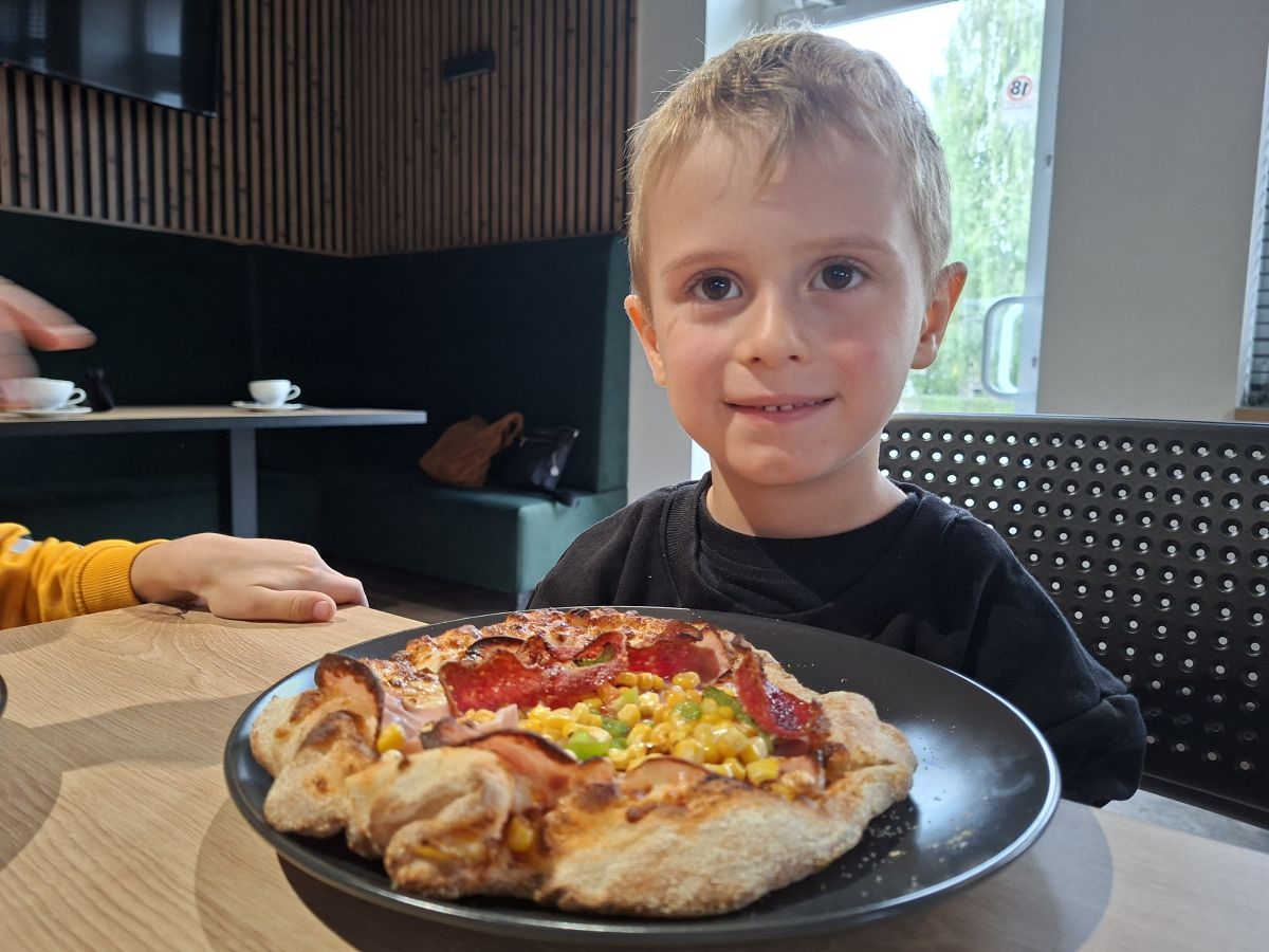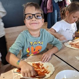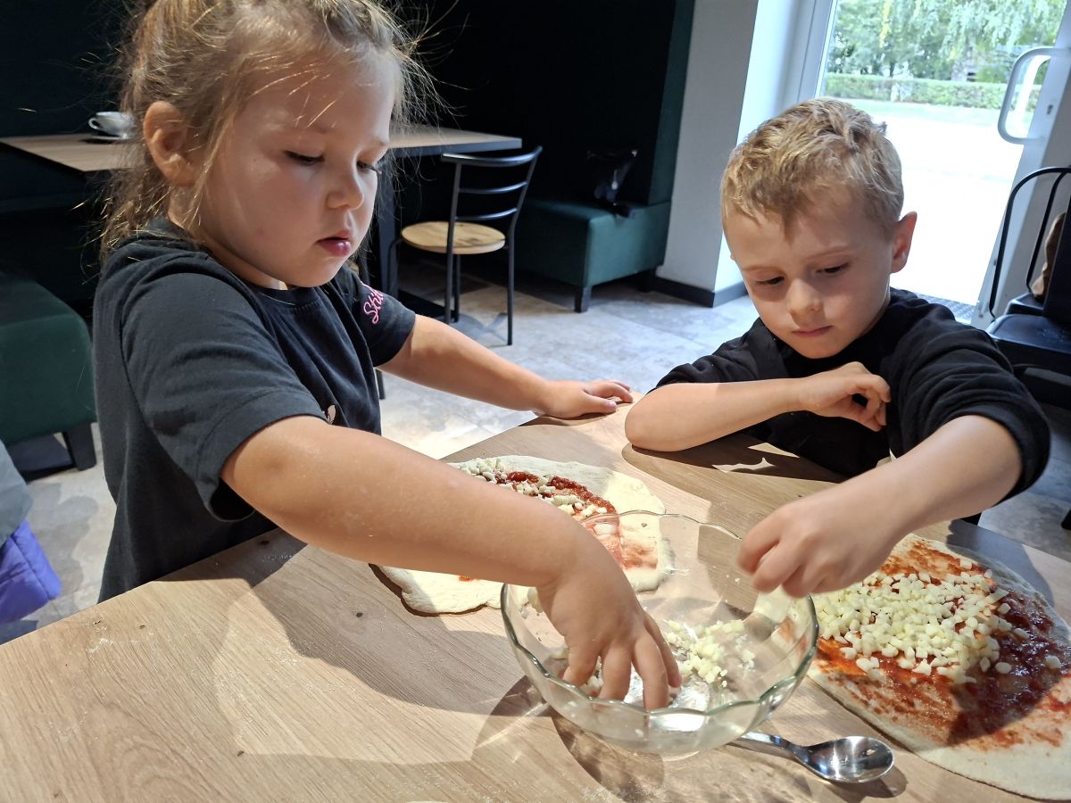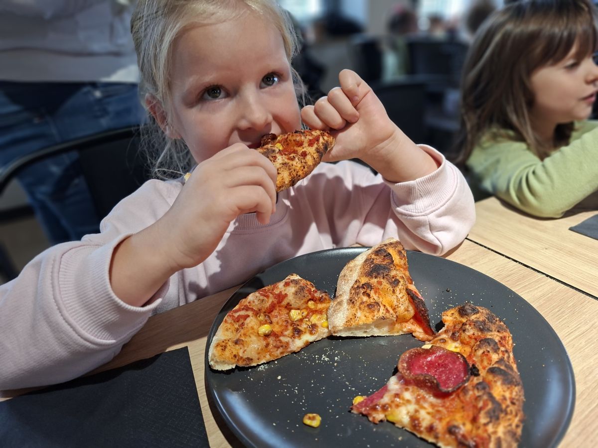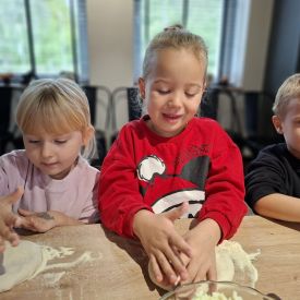 Dziś grupa Jeżyki wzięła udział w wyjątkowych warsztatach kulinarnych, podczas których dzieci samodzielnie przygotowywały pizzę. Na początku zajęć uczestnicy poznali składniki potrzebne do przygotowania ciasta – mąkę, drożdże, wodę, oliwę oraz sól. Następnie, zgodnie z instrukcją prowadzącego, wyrabiały własne ciasto, ucząc się przy tym cierpliwości i dokładności. Kiedy ciasto było gotowe, dzieci mogły wybrać swoje ulubione dodatki – sos pomidorowy, ser, szynkę, kukurydzę, pomidory, oliwki czy pieczarki. Każdy mały kucharz stworzył swoją unikalną pizzę według własnego pomysłu. Z ogromnym zainteresowaniem obserwowaliśmy proces wypieku w piecu, a zapach świeżej pizzy wypełnił całą salę. Po chwili nadszedł najbardziej wyczekiwany moment – degustacja! Wszystkie pizze smakowały wyśmienicie, a dzieci z dumą częstowały się swoimi wypiekami. Na zakończenie każdy uczestnik otrzymał dyplom „Małego Kucharza”, potwierdzający zdobyte umiejętności i zaangażowanie w warsztaty. To był dzień pełen radości, wspólnej zabawy i kulinarnych przygód!