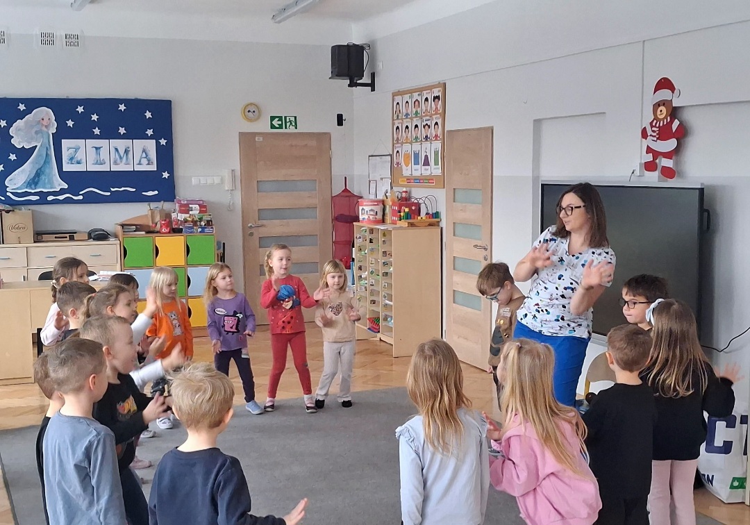 We wtorek grupę „Jeżyki” odwiedził wyjątkowy gość – mama Jasia i Kuby, która z zawodu jest lekarzem. Spotkanie odbyło się w ramach cyklu poznawania ciekawych zawodów oraz promowania zdrowego stylu życia.