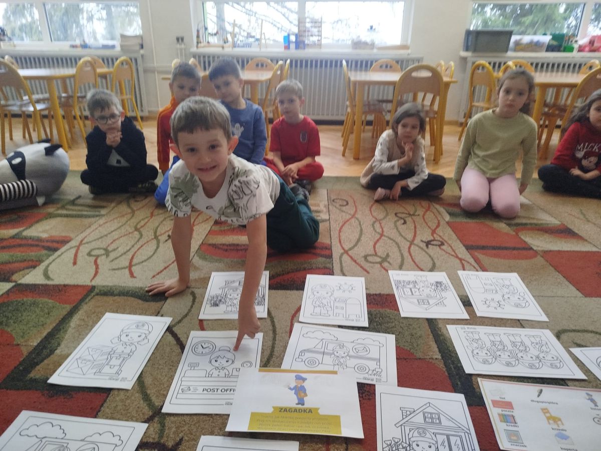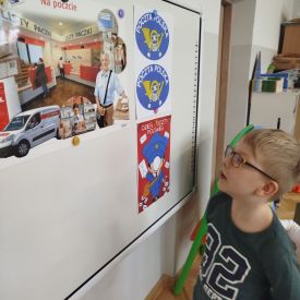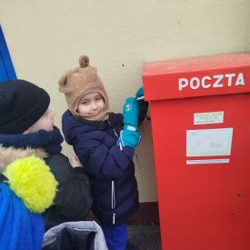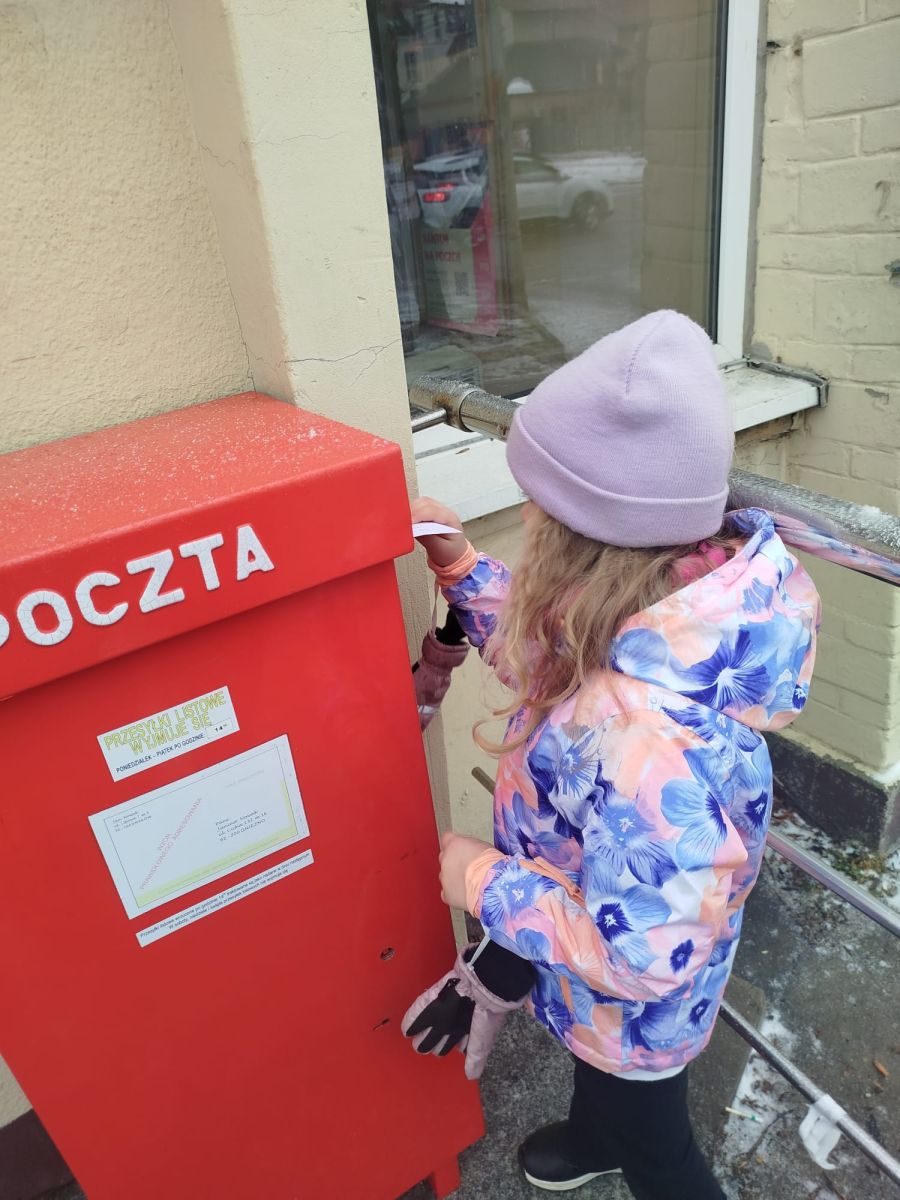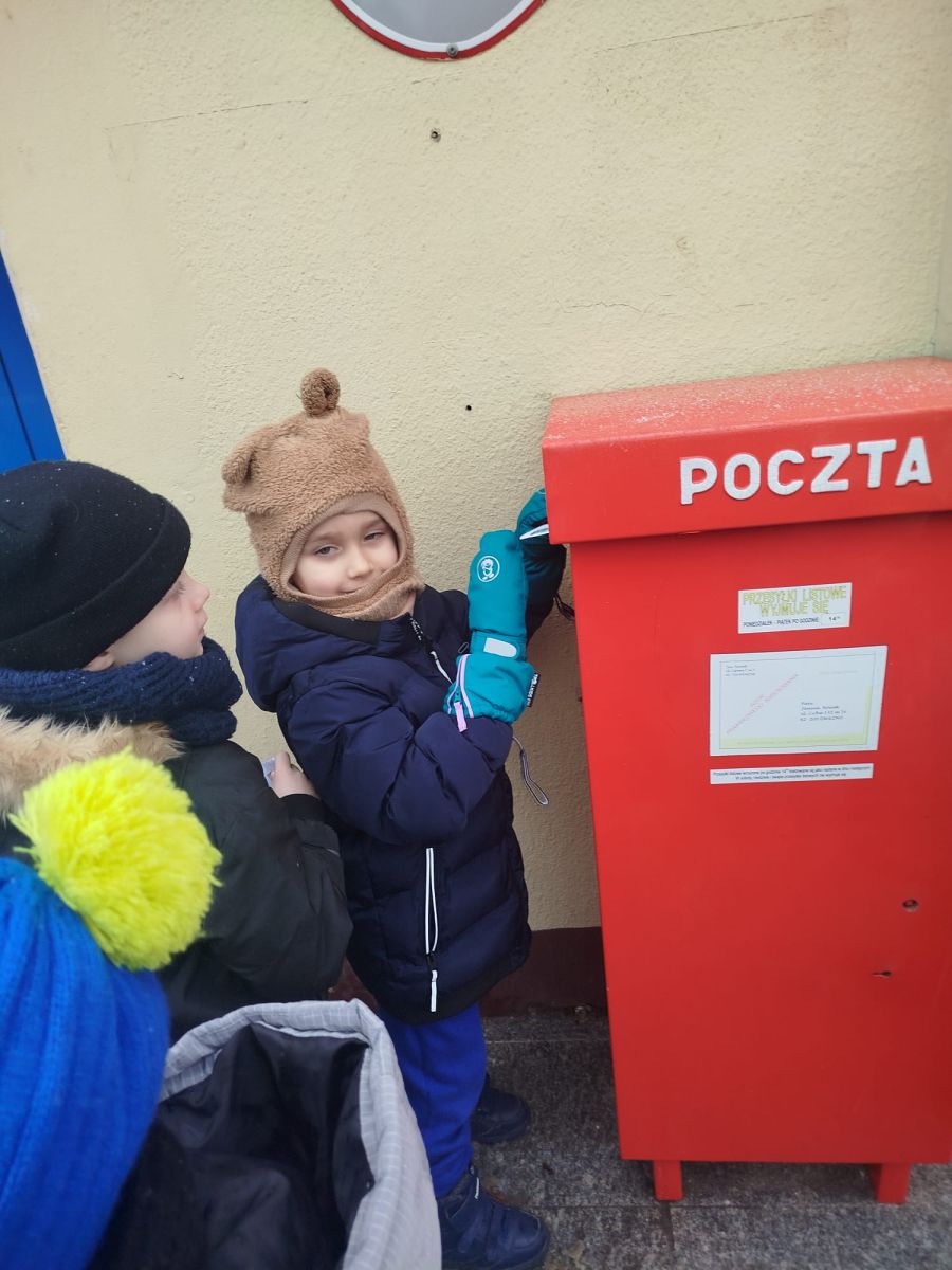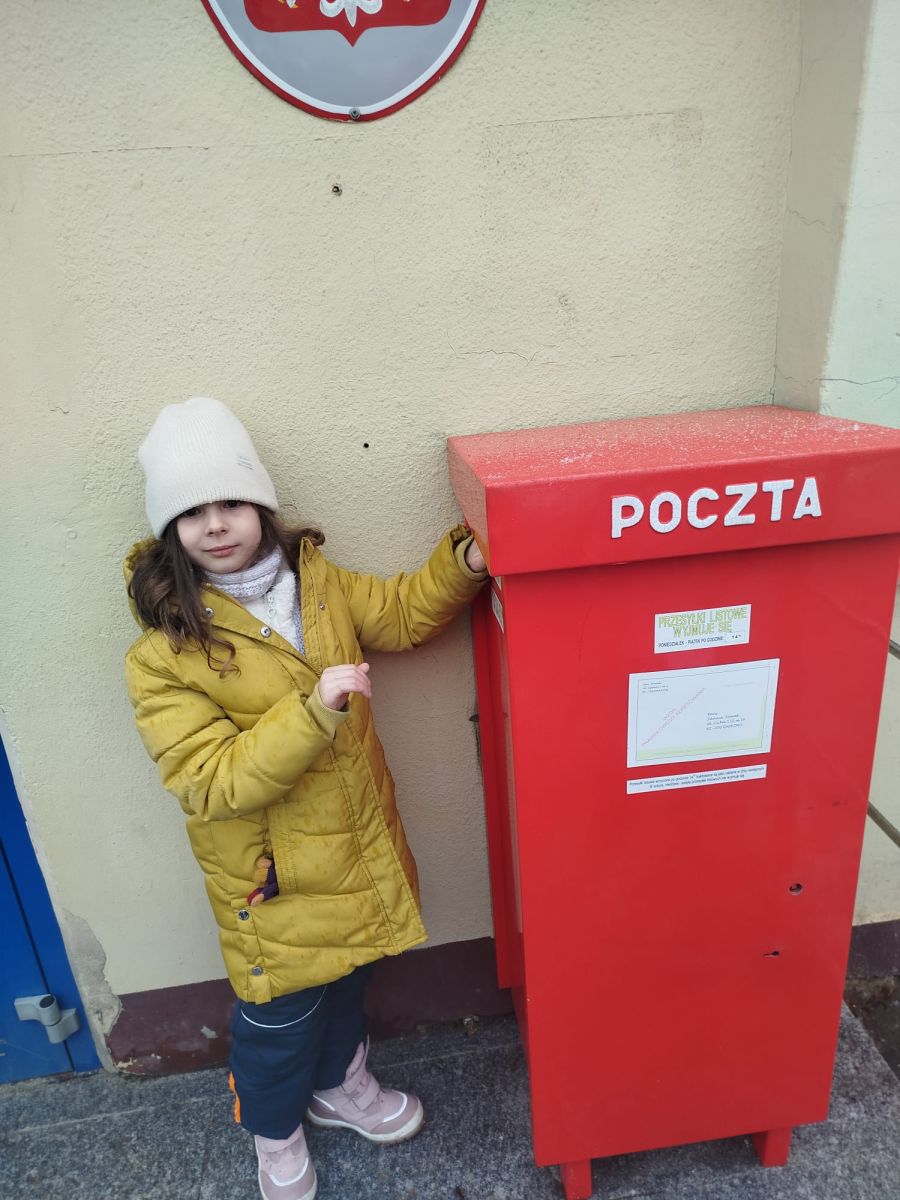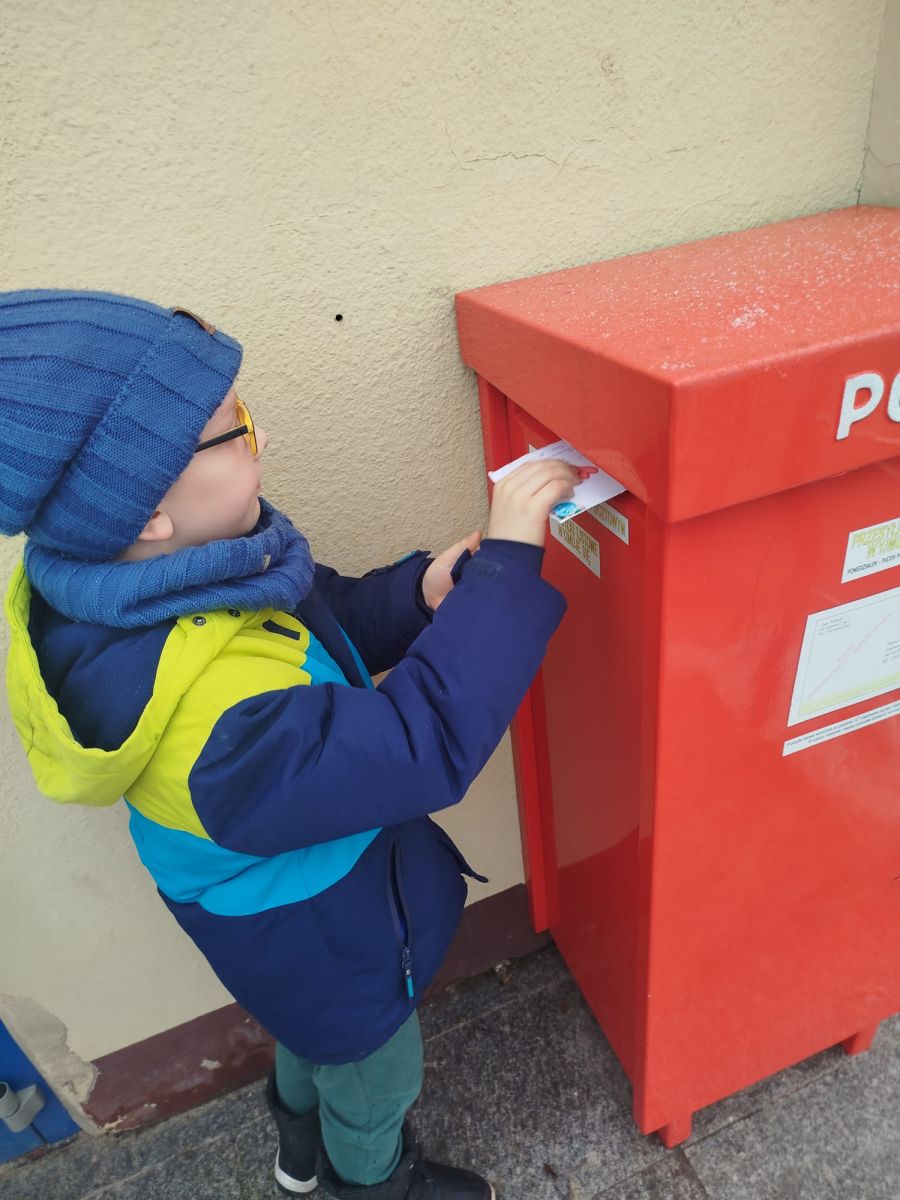 Podczas zajęć dzieci dowiedziały się, że listonosz dostarcza listy, kartki, paczki i różnego rodzaju przesyłki. Pracuje zarówno na poczcie, jak i w terenie – porusza się pieszo, rowerem lub samochodem i bardzo dobrze zna swoją okolicę. Poznaliśmy także narzędzia jego pracy, takie jak torba listonosza, listy i paczki, rower, samochód, czapka czy identyfikator. Krasnale z dużym zainteresowaniem śledziły drogę listu – od nadawcy do odbiorcy. Dowiedziały się, jak prawidłowo zaadresować kopertę i czym są znaczki pocztowe. Poznaliśmy również kilka ciekawostek. Dawniej listonosze poruszali się pieszo lub konno. Na świecie wysyła się miliardy listów i paczek rocznie, a listonosz często zna adresy lepiej niż nawigacja.Dzieci szybko zauważyły, że praca listonosza wcale nie jest łatwa. Wspólnie życzyliśmy wszystkim pracownikom poczty, a szczególnie listonoszom, dużo siły i wytrwałości w codziennych obowiązkach. Celem naszych działań było nie tylko zapoznanie dzieci z nowym zawodem, ale także kształtowanie szacunku do pracy innych ludzi, rozwijanie umiejętności społecznych i językowych oraz sprawności ruchowej poprzez zabawy tematyczne. Ważnym wydarzeniem była wycieczka na pocztę. Dzieci miały okazję zobaczyć budynek poczty od środka, poznać wyposażenie pomieszczeń oraz urządzenia takie jak waga, skrzynki pocztowe czy kabiny. W kolejnym dniu Krasnale kodowały na macie do kodowania. Ich zadaniem było zaplanowanie drogi listonosza w taki sposób, aby zebrał wszystkie kolorowe znaczki zgodnie z podanymi kodami – strzałkami i przyporządkowanymi im kolorami. Starszaki wykonały zadanie bezbłędnie, wykazując się logicznym myśleniem, koncentracją oraz wspaniałą współpracą w grupie.