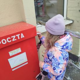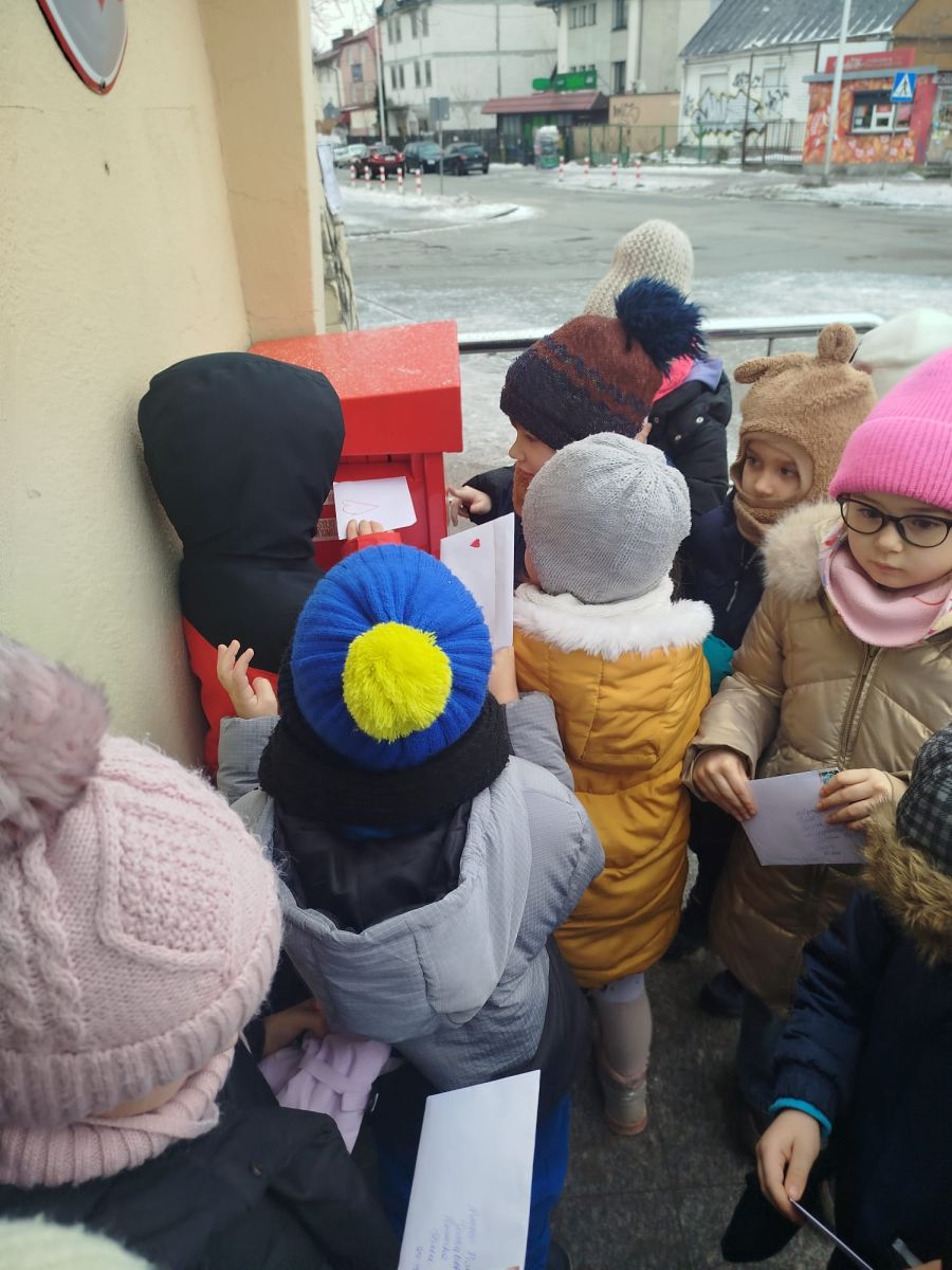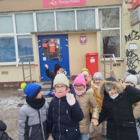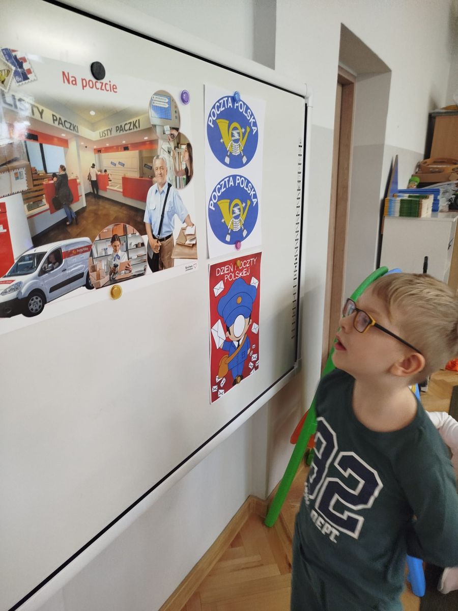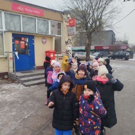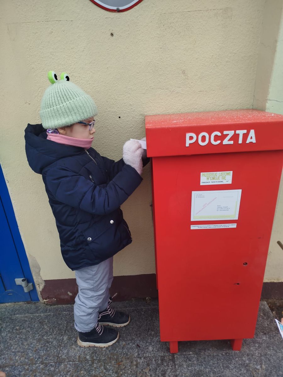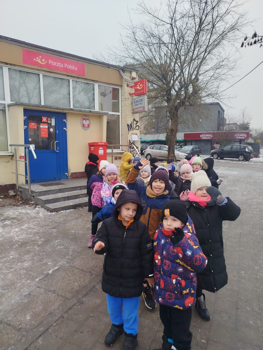 Podczas zajęć dzieci dowiedziały się, że listonosz dostarcza listy, kartki, paczki i różnego rodzaju przesyłki. Pracuje zarówno na poczcie, jak i w terenie – porusza się pieszo, rowerem lub samochodem i bardzo dobrze zna swoją okolicę. Poznaliśmy także narzędzia jego pracy, takie jak torba listonosza, listy i paczki, rower, samochód, czapka czy identyfikator. Krasnale z dużym zainteresowaniem śledziły drogę listu – od nadawcy do odbiorcy. Dowiedziały się, jak prawidłowo zaadresować kopertę i czym są znaczki pocztowe. Poznaliśmy również kilka ciekawostek. Dawniej listonosze poruszali się pieszo lub konno. Na świecie wysyła się miliardy listów i paczek rocznie, a listonosz często zna adresy lepiej niż nawigacja.Dzieci szybko zauważyły, że praca listonosza wcale nie jest łatwa. Wspólnie życzyliśmy wszystkim pracownikom poczty, a szczególnie listonoszom, dużo siły i wytrwałości w codziennych obowiązkach. Celem naszych działań było nie tylko zapoznanie dzieci z nowym zawodem, ale także kształtowanie szacunku do pracy innych ludzi, rozwijanie umiejętności społecznych i językowych oraz sprawności ruchowej poprzez zabawy tematyczne. Ważnym wydarzeniem była wycieczka na pocztę. Dzieci miały okazję zobaczyć budynek poczty od środka, poznać wyposażenie pomieszczeń oraz urządzenia takie jak waga, skrzynki pocztowe czy kabiny. W kolejnym dniu Krasnale kodowały na macie do kodowania. Ich zadaniem było zaplanowanie drogi listonosza w taki sposób, aby zebrał wszystkie kolorowe znaczki zgodnie z podanymi kodami – strzałkami i przyporządkowanymi im kolorami. Starszaki wykonały zadanie bezbłędnie, wykazując się logicznym myśleniem, koncentracją oraz wspaniałą współpracą w grupie.