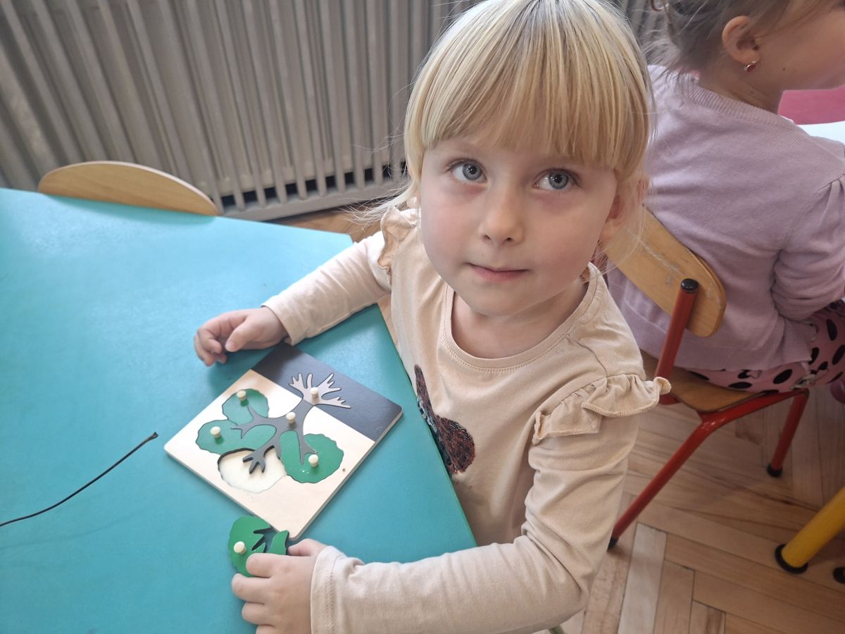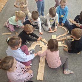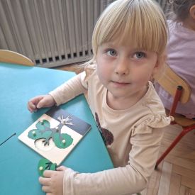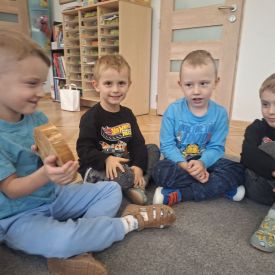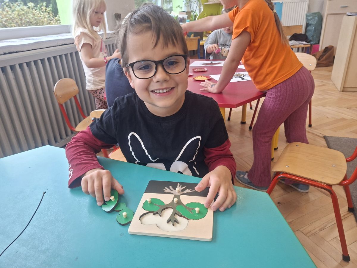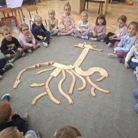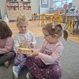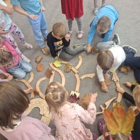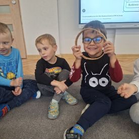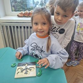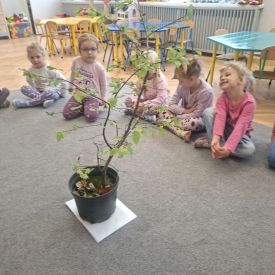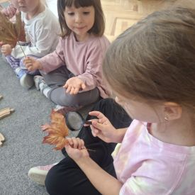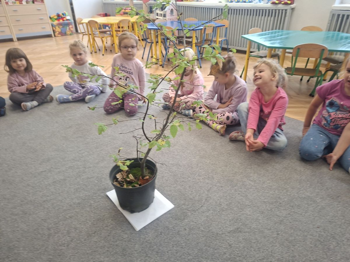 Z okazji Dnia Drzewa dzieci z grupy Jeżyki wzięły udział w wyjątkowych zajęciach poświęconych budowie i znaczeniu drzew. Dzieci dowiedziały się, z czego składa się drzewo, a także rozmawiały o tym, dlaczego drzewa są tak ważne dla ludzi i zwierząt. Później nadszedł czas na zajęcia plastyczne – dzieci za pomocą farb i klocków stemplowały kolorowe liście, tworząc barwne prace inspirowane jesienną przyrodą. Każde drzewko było inne – tak jak różne są drzewa w naturze! Najważniejszym momentem dnia było jednak zasadzenie drzewka leszczyny w naszym przedszkolnym ogrodzie. Z pomocą pana Sławka wykopaliśmy dołek, wsadziliśmy młodą roślinkę i podlaliśmy ją z nadzieją, że wyrośnie silna i zdrowa. Dzieci wiedzą, że w przyszłości, gdy leszczyna podrośnie, jej orzeszki będą pyszną przekąską dla wiewiórek odwiedzających nasz przedszkolny ogród.