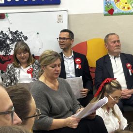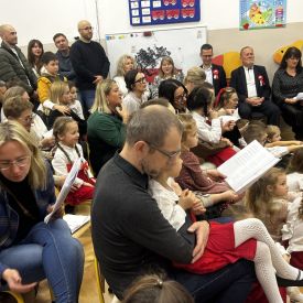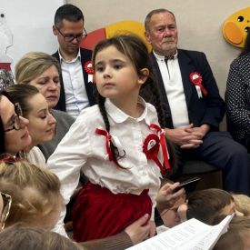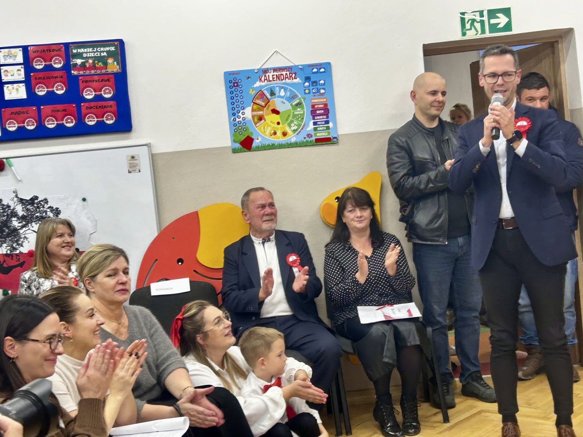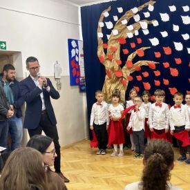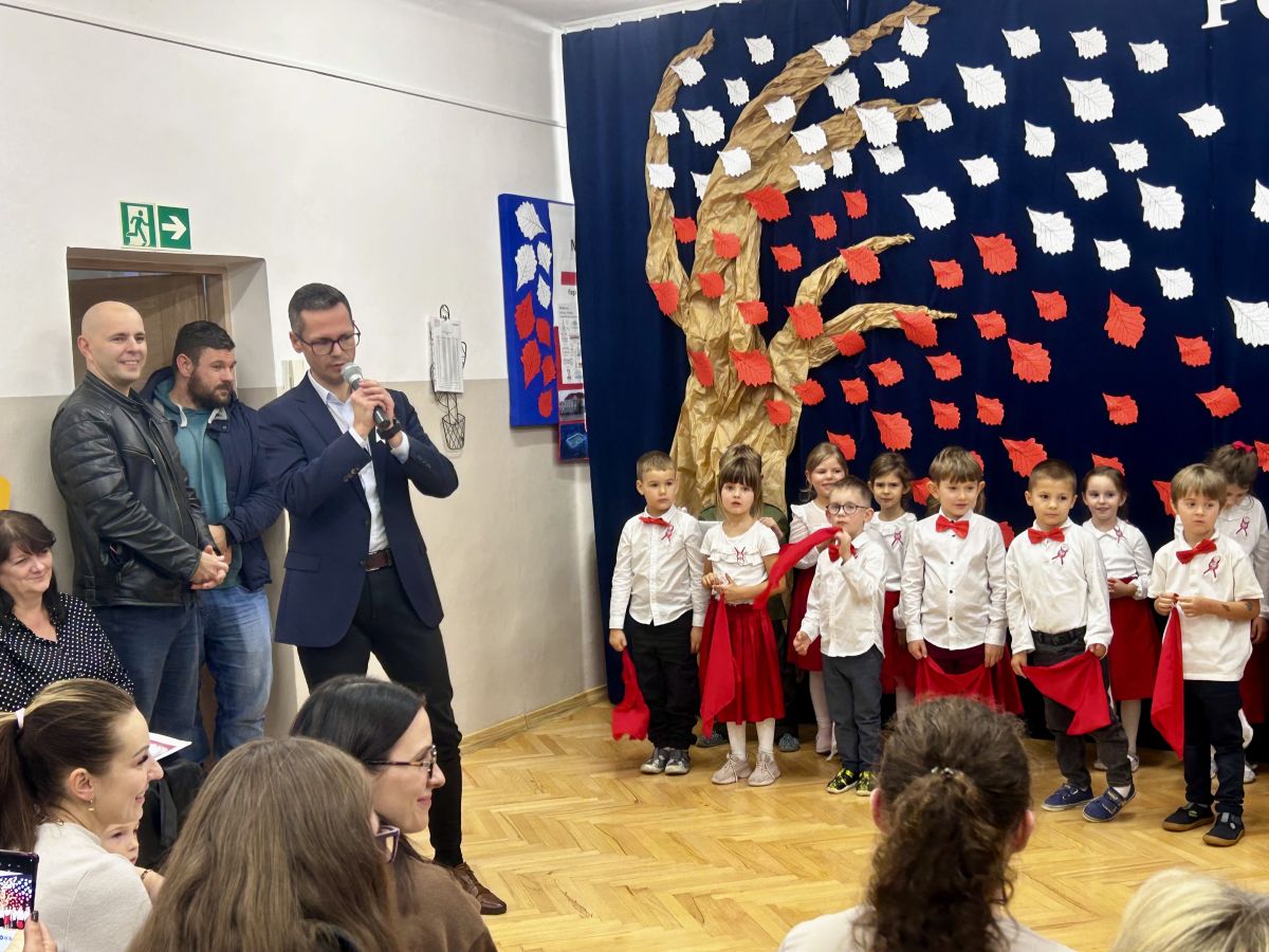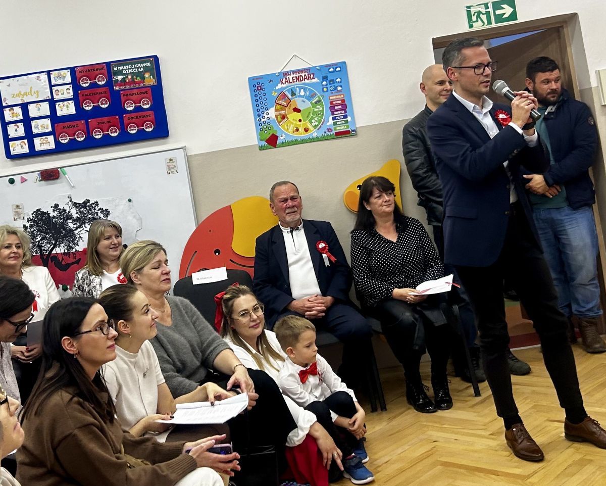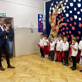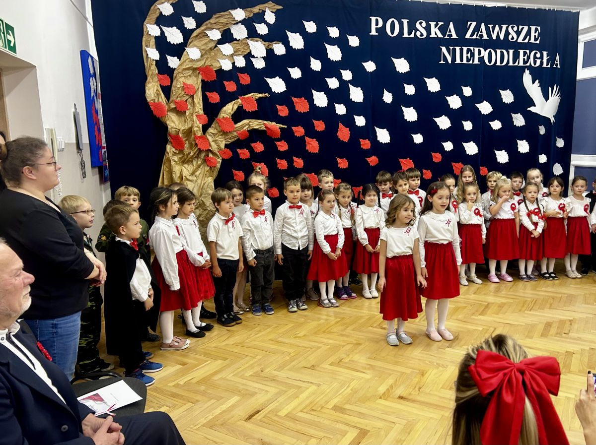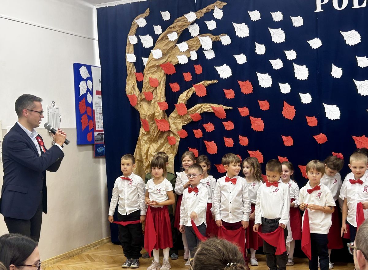 W wydarzeniu uczestniczył Zastępca Prezydenta Miasta Kielce, pan Tomasz Porębski, który z uznaniem podziękował dzieciom i nauczycielom za przygotowanie uroczystości oraz podkreślił, jak ważne jest pielęgnowanie pamięci i tożsamości narodowej już od najmłodszych lat. 🇵🇱