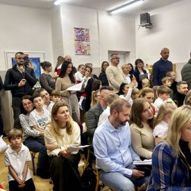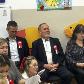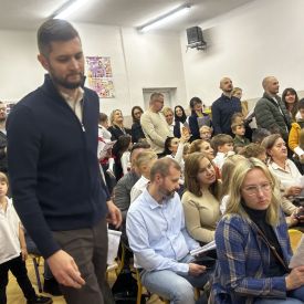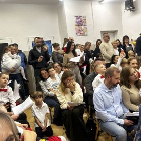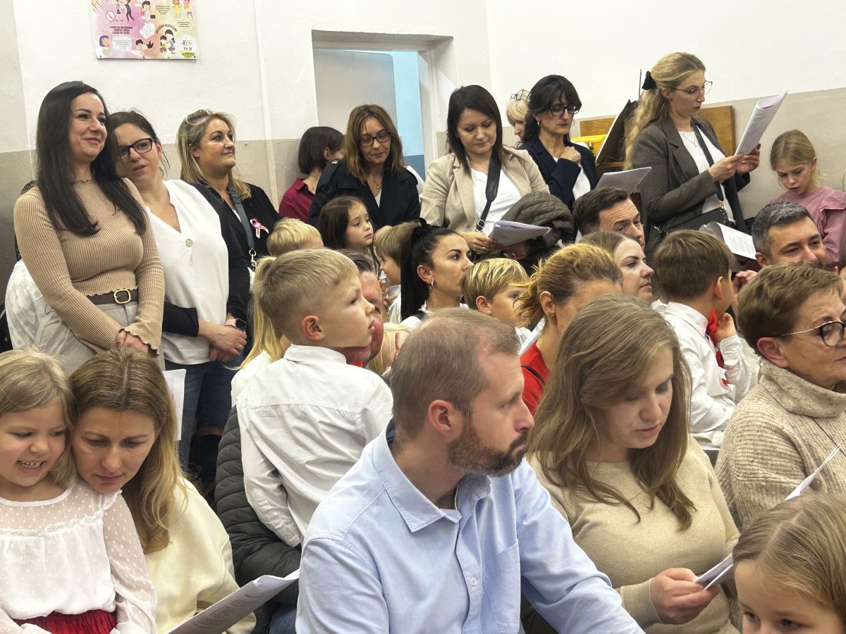 Nie zabrakło również wspólnego śpiewania z rodzicami i zaproszonymi gośćmi przy akompaniamencie Kabaretu Jeszcze Nie Starszych Panów, który wprowadził wszystkich w wyjątkowy, radosny nastrój.