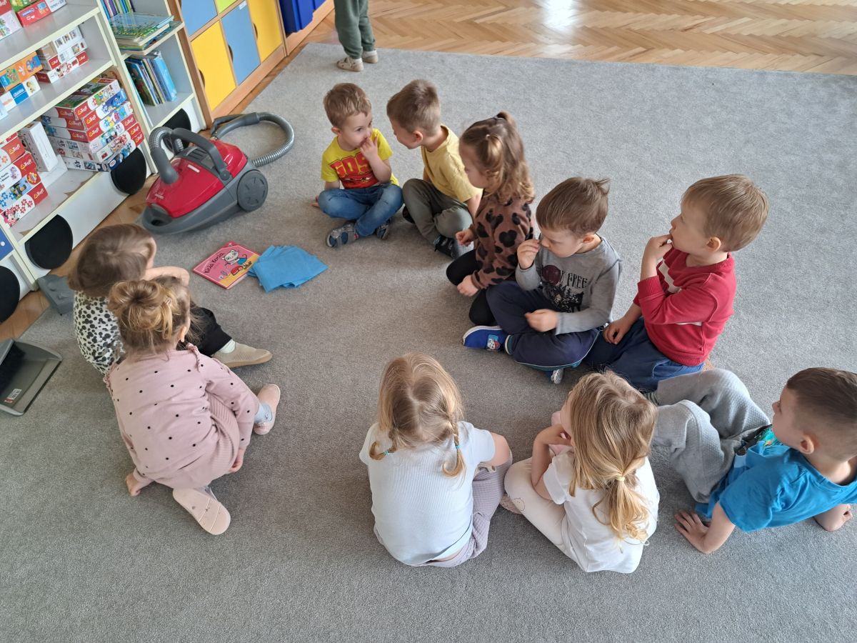 Dzieci z grupy „Kotków” z radością zaangażowały się w wiosenne porządki w swojej sali. Inspiracją do działania była wspólnie wysłuchana książka pt. "Kicia Kocia sprząta" , która w ciekawy i przystępny sposób pokazała, jak ważne jest dbanie o porządek w najbliższym otoczeniu.