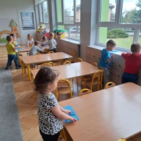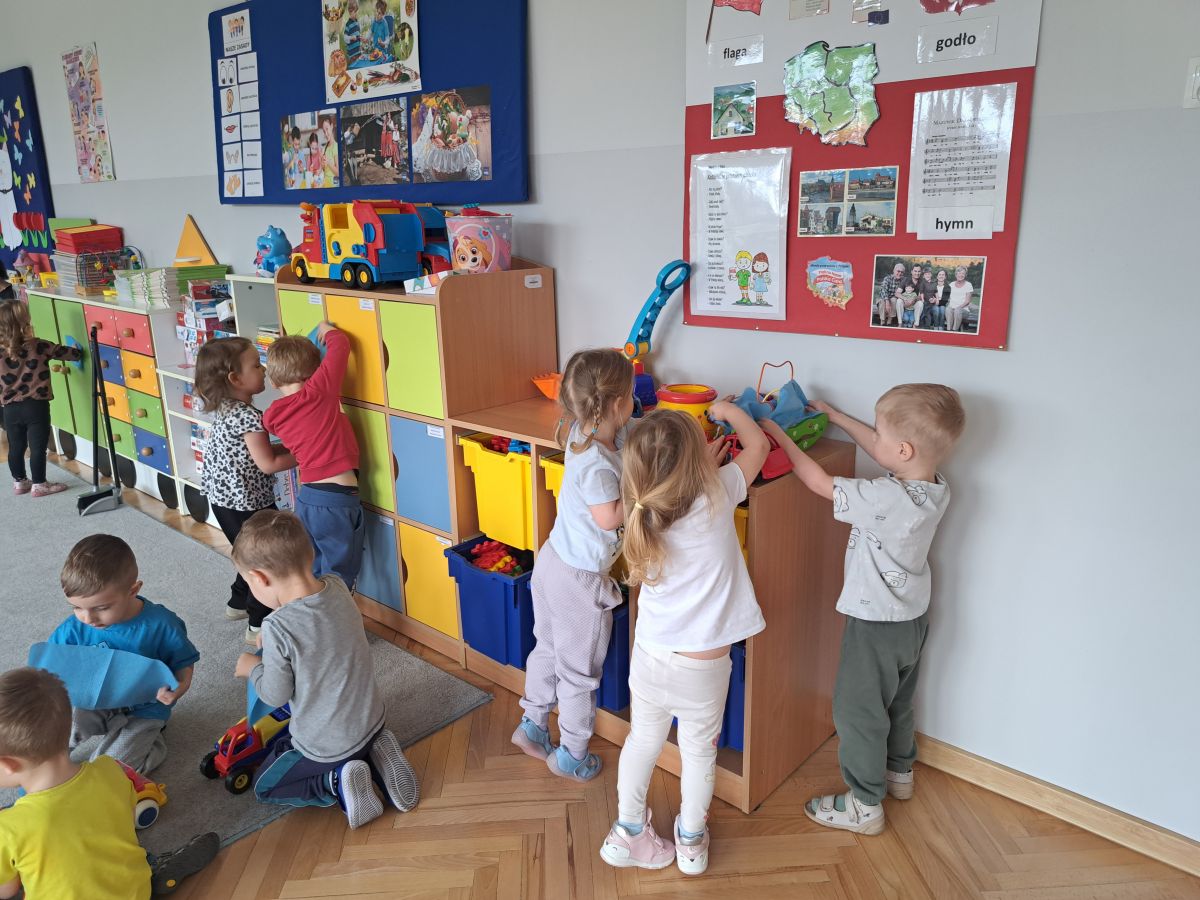 Dzięki wspólnej pracy dzieci nie tylko uporządkowały swoją salę, ale także nauczyły się odpowiedzialności, współpracy oraz troski o wspólną przestrzeń.