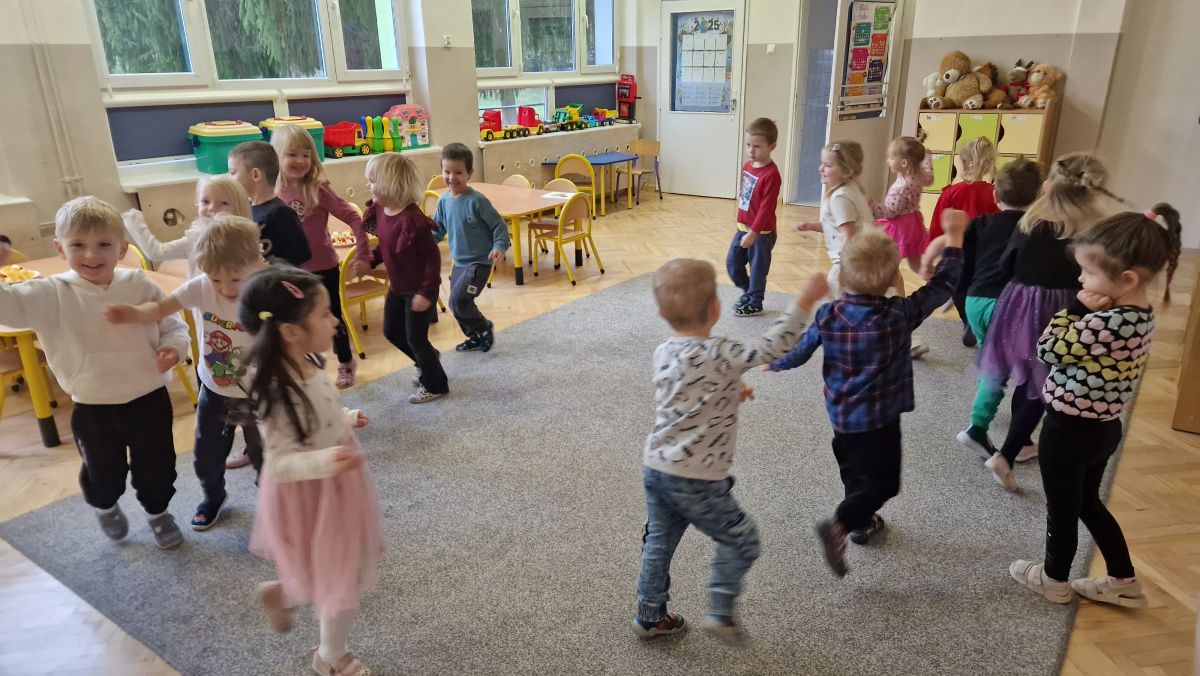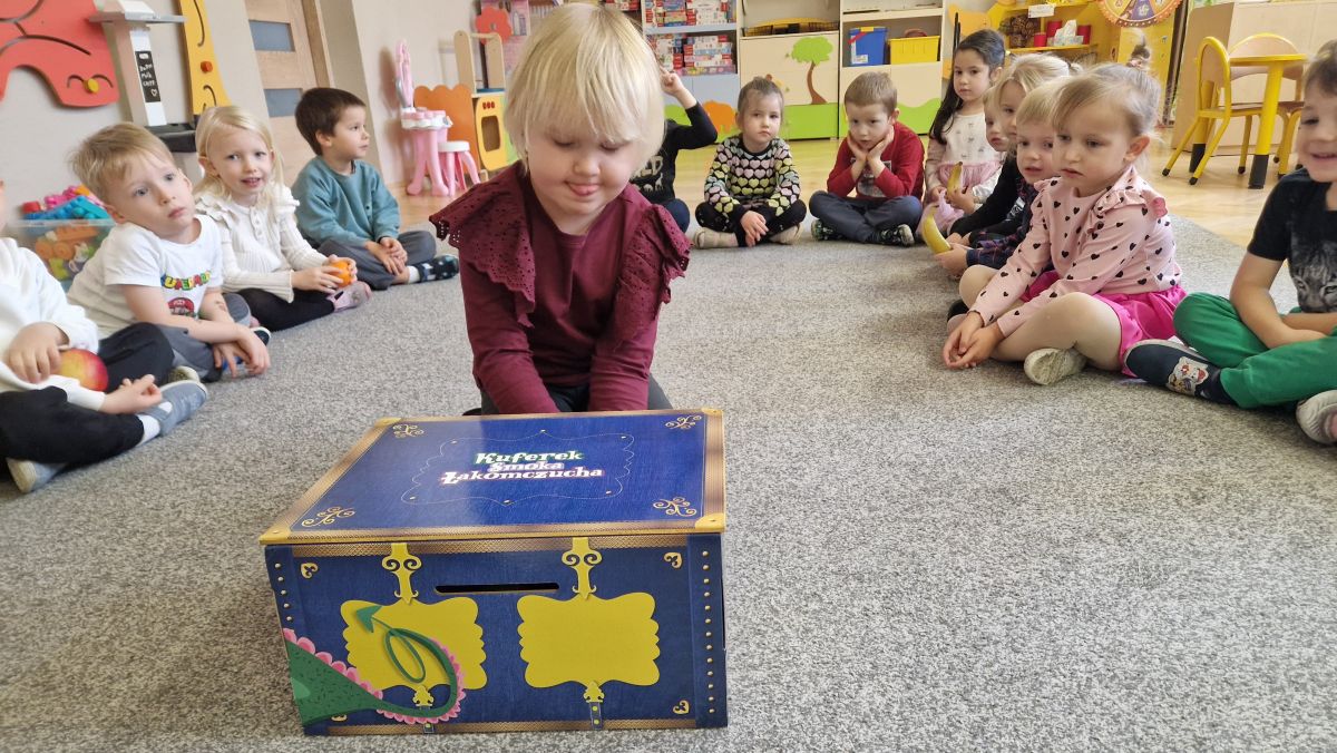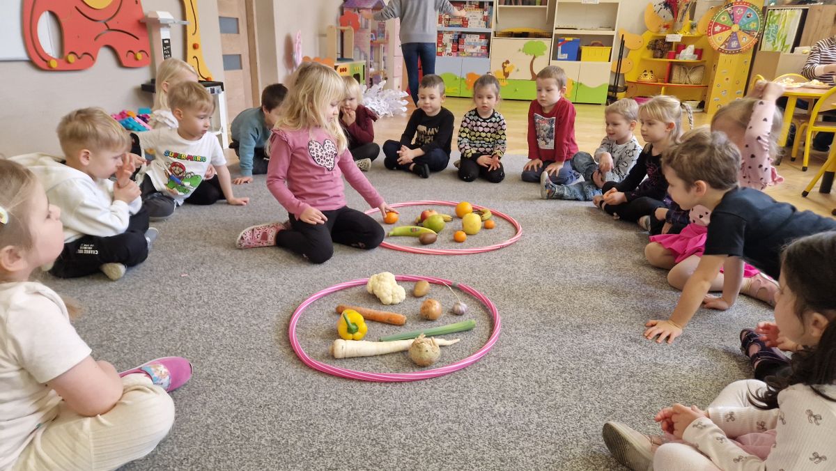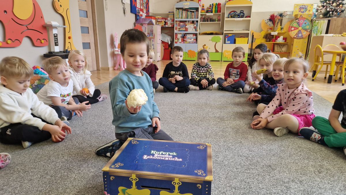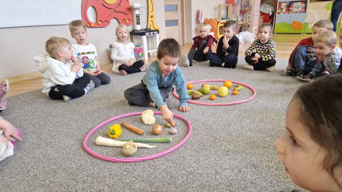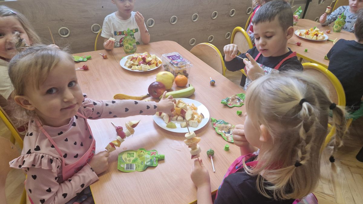 Dziś w grupie Misie odbyły się zajęcia poświęcone zasadom zdrowego odżywiania oraz znaczeniu higieny osobistej i czystości otoczenia dla zachowania dobrego zdrowia. Aby podkreślić wagę poruszanych treści, gościliśmy Panią Dyrektor oraz Panią Wicedyrektor, których obecność była dla dzieci dużym wyróżnieniem. Zajęcia rozpoczęły się od codziennych ćwiczeń automasażu relaksacyjnego przy muzyce klasycznej, które pomagają wyciszyć układ nerwowy oraz wspierają prawidłowe krążenie. Następnie dzieci zapoznały się z piramidą żywienia, a także losowały z zaczarowanego kuferka owoce i warzywa, które później wspólnie segregowały. Przedszkolaki wykazały się dużą wiedzą – doskonale wiedzą, które produkty są zdrowe, a których należy unikać. Na zakończenie zajęć wszystkie dzieci zamieniły się w małych kucharzy i z wielkim zaangażowaniem przygotowały kolorowe owocowe szaszłyki, które były pysznym i zdrowym zwieńczeniem spotkania. 🍎🍌🥝