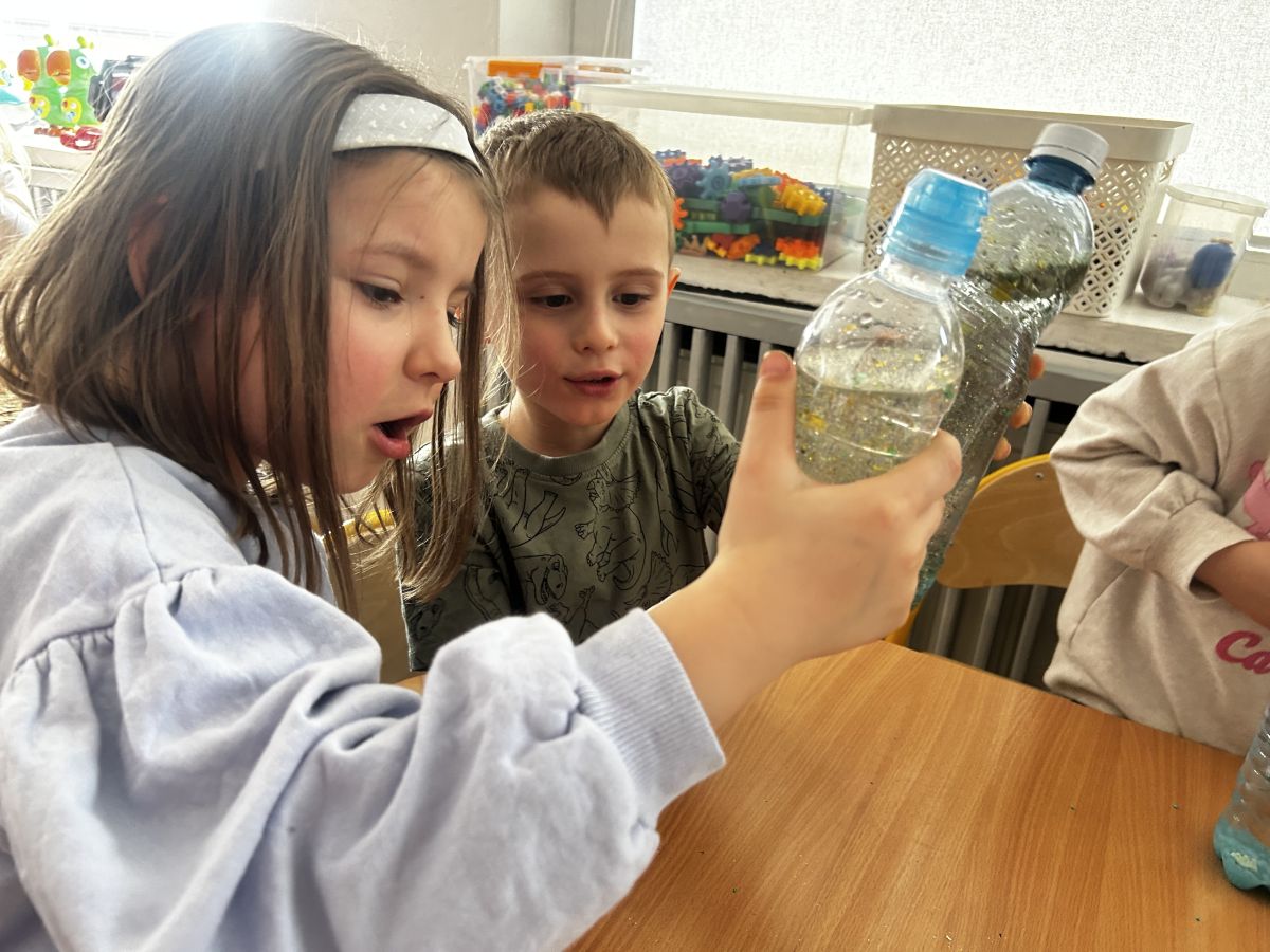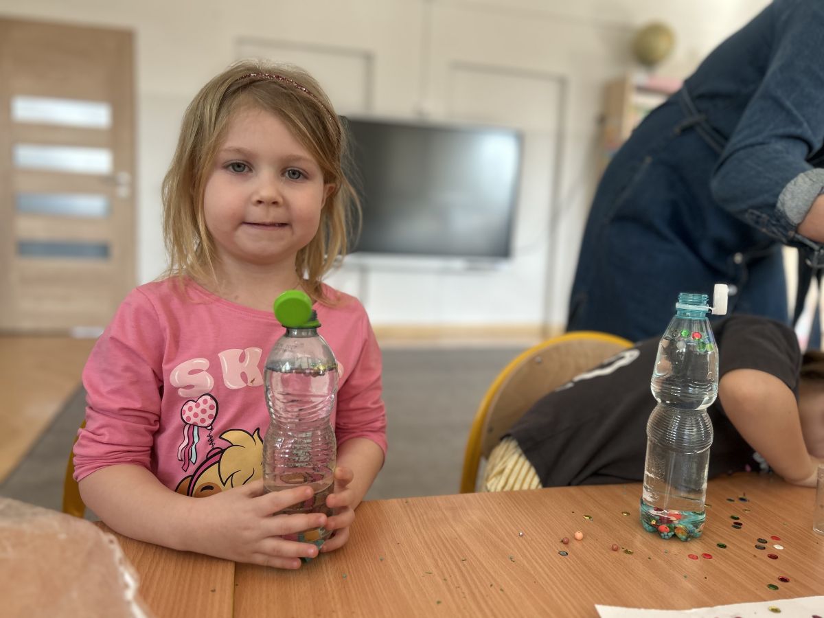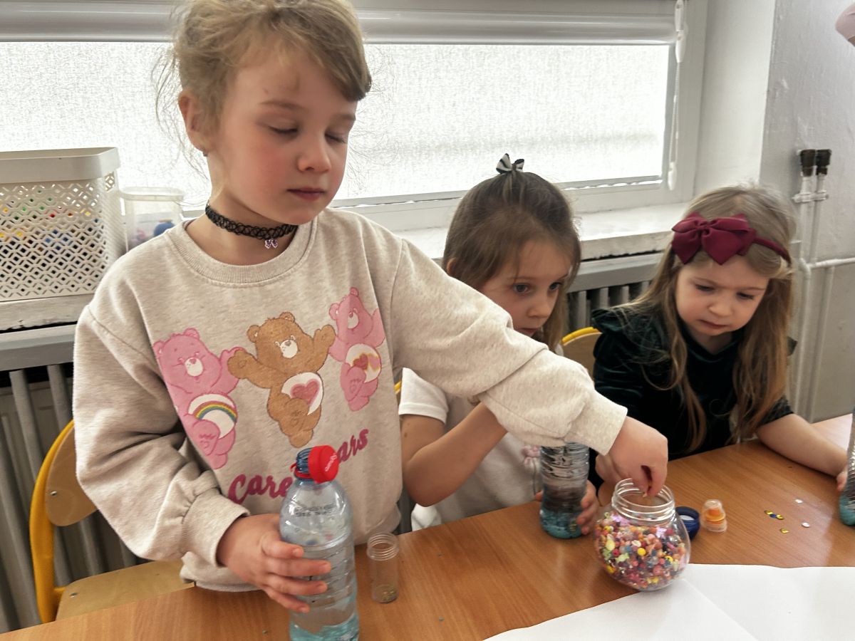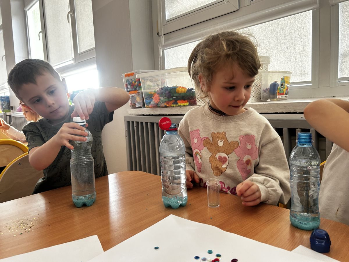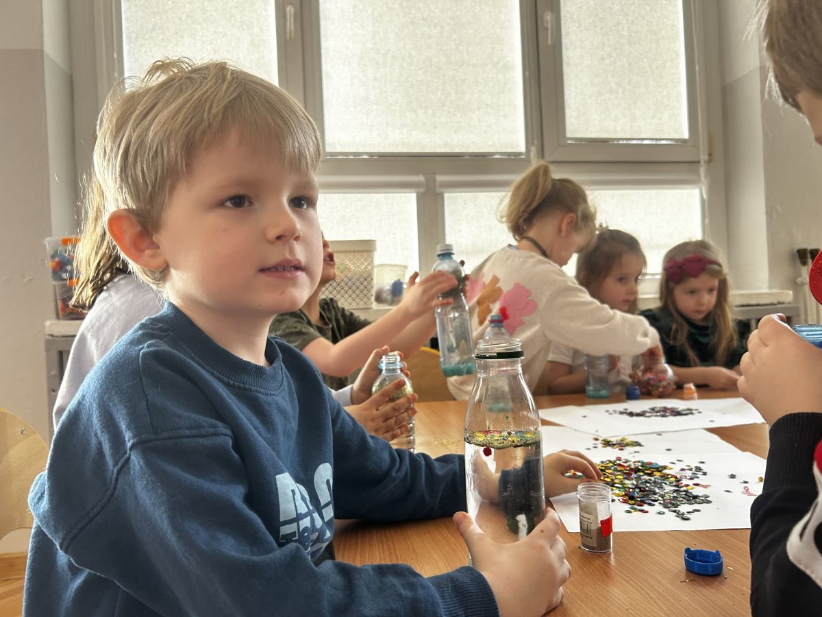 Podczas tworzenia dzieci rozwijały swoją kreatywność, wyobraźnię oraz sprawność manualną. Zabawa z butelkami sensorycznymi to doskonały sposób na wyciszenie i relaks. Kolorowe, połyskujące drobinki pomagają skupić uwagę i działają kojąco na zmysły.