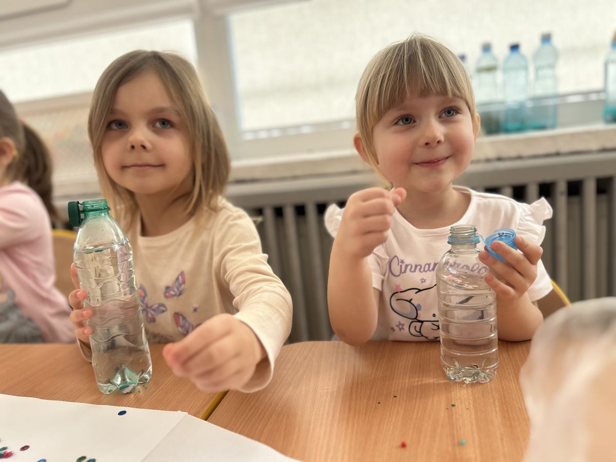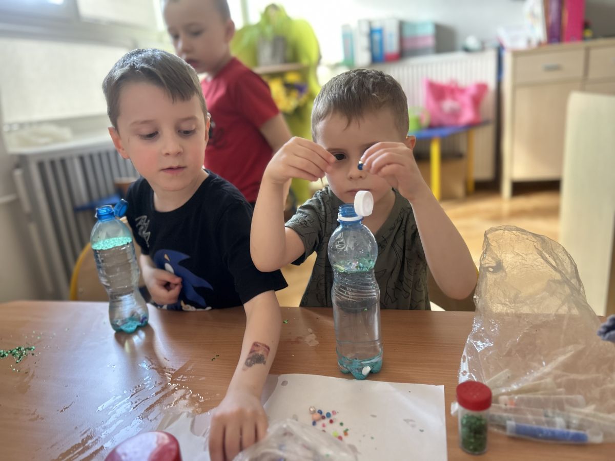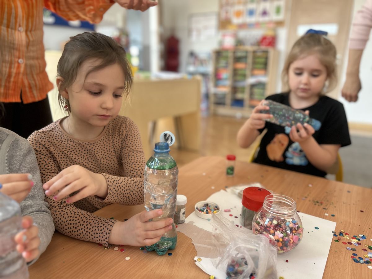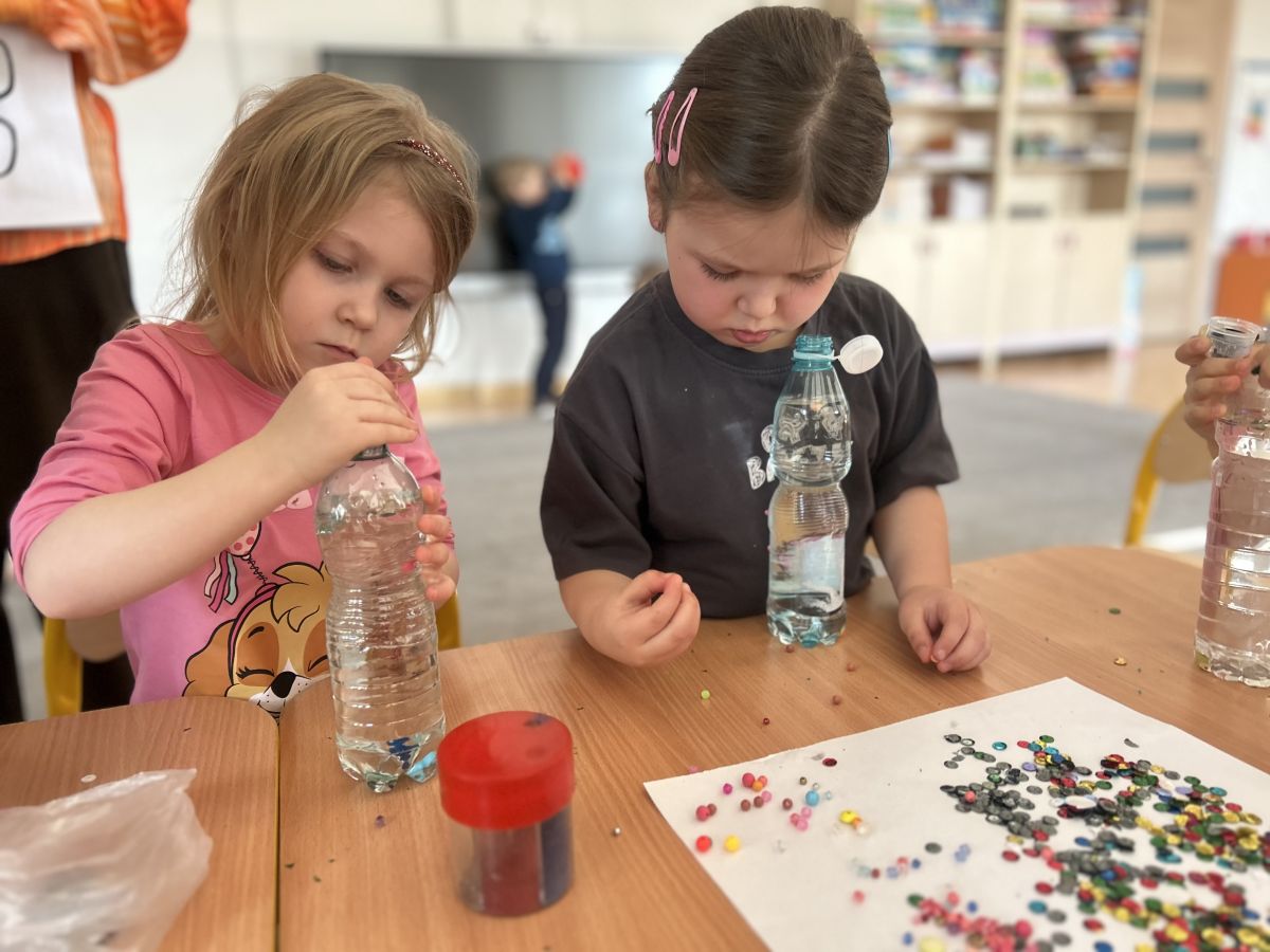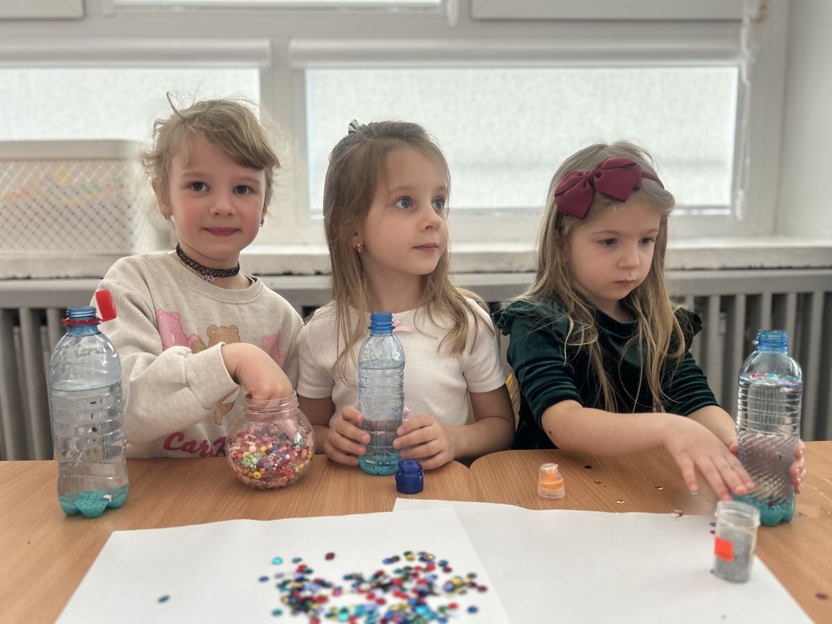 Podczas tworzenia dzieci rozwijały swoją kreatywność, wyobraźnię oraz sprawność manualną. Zabawa z butelkami sensorycznymi to doskonały sposób na wyciszenie i relaks. Kolorowe, połyskujące drobinki pomagają skupić uwagę i działają kojąco na zmysły.