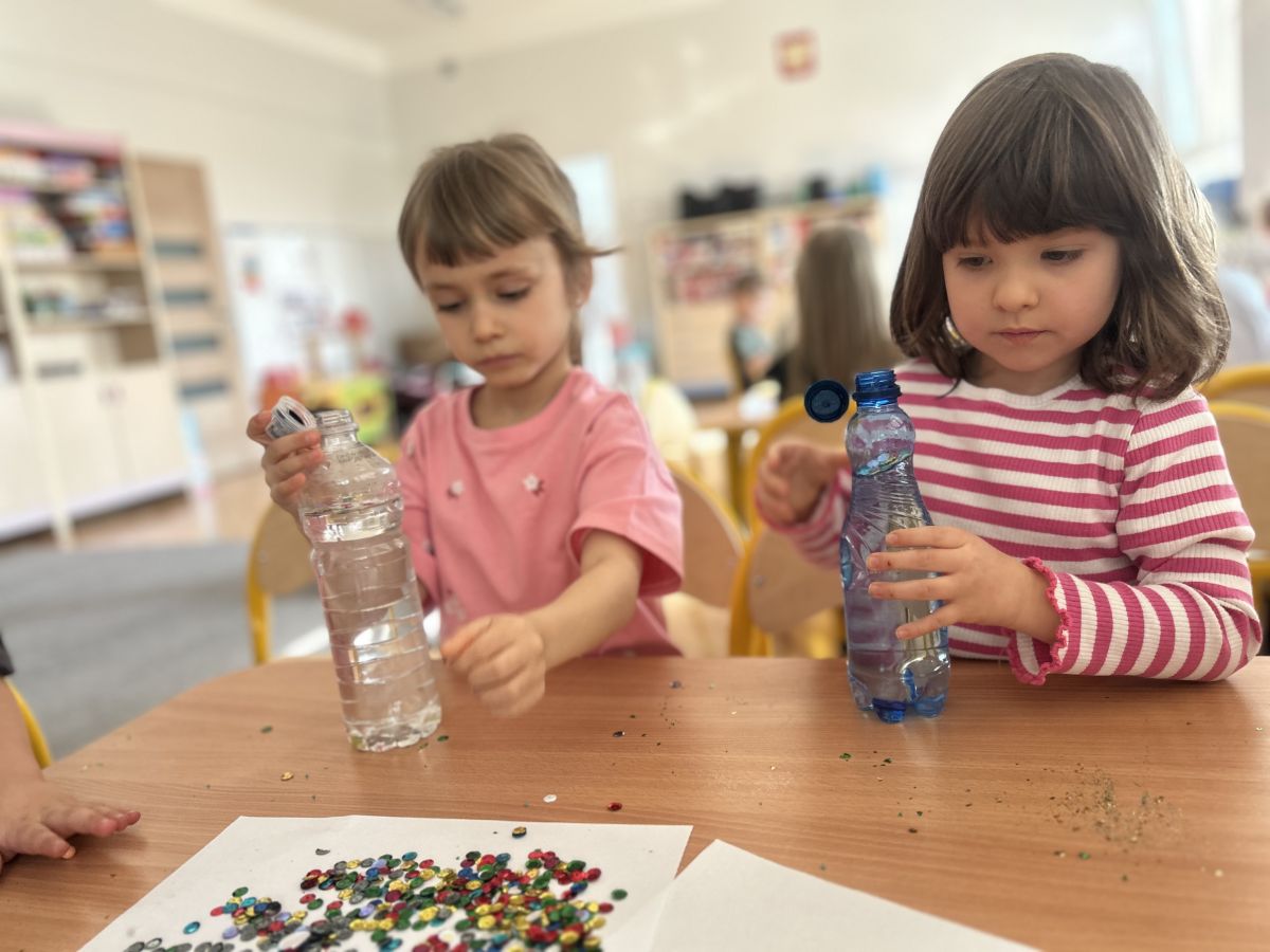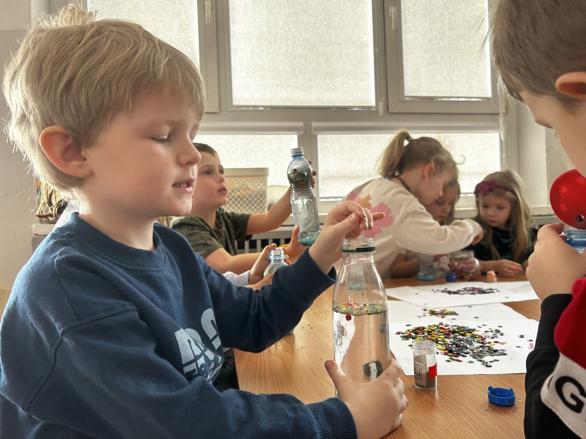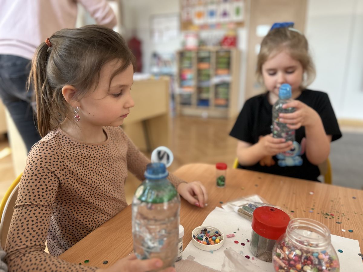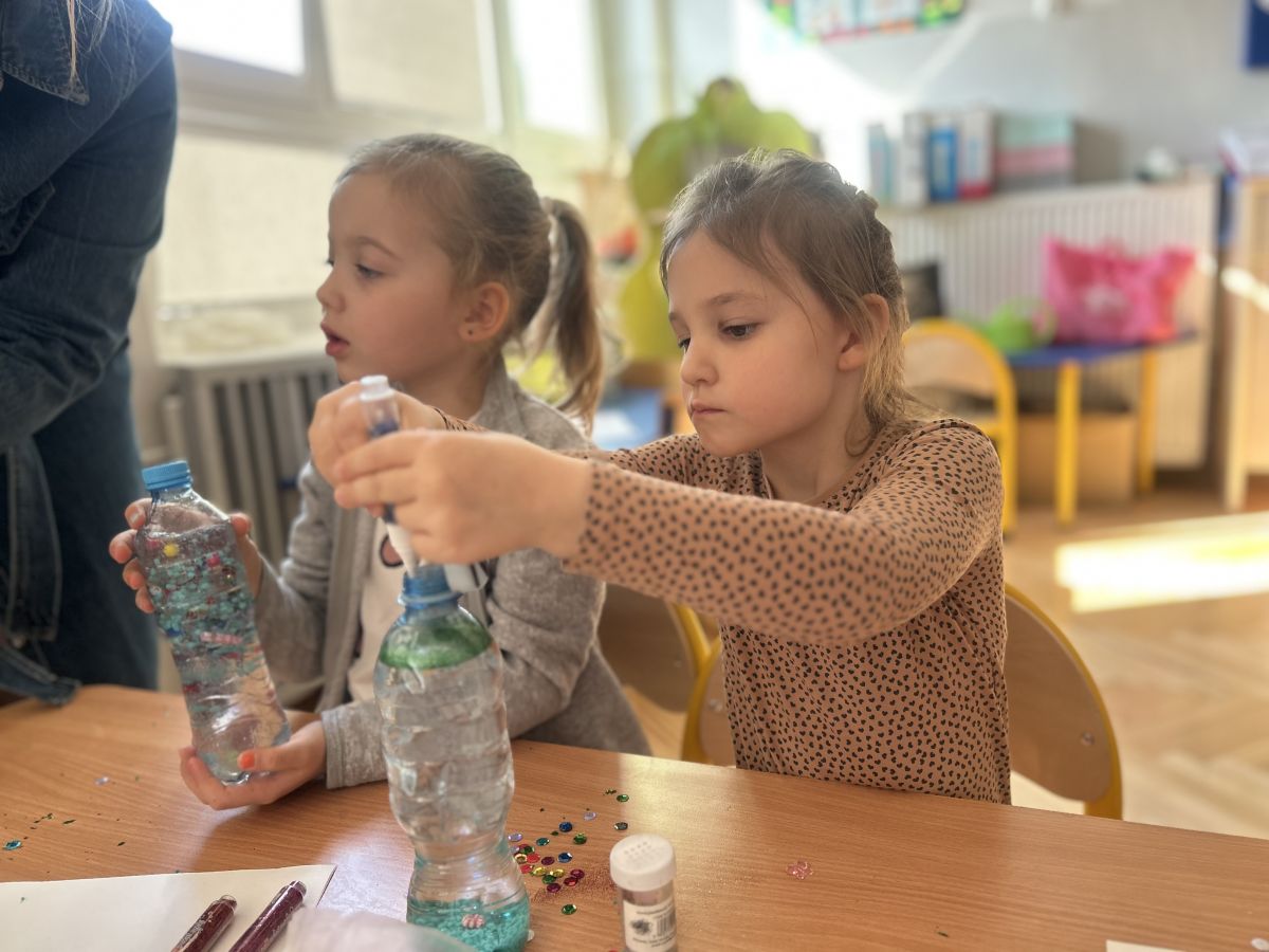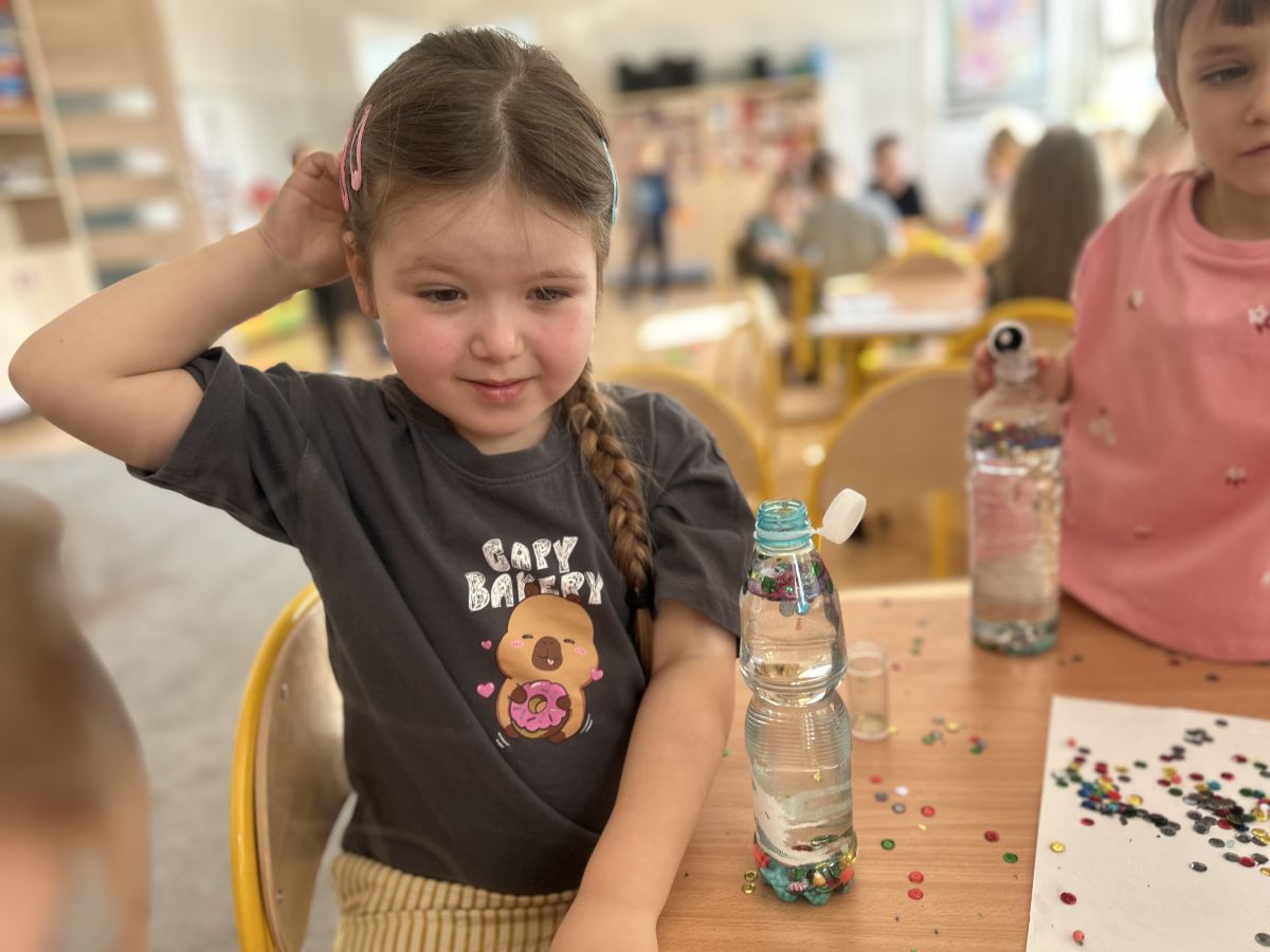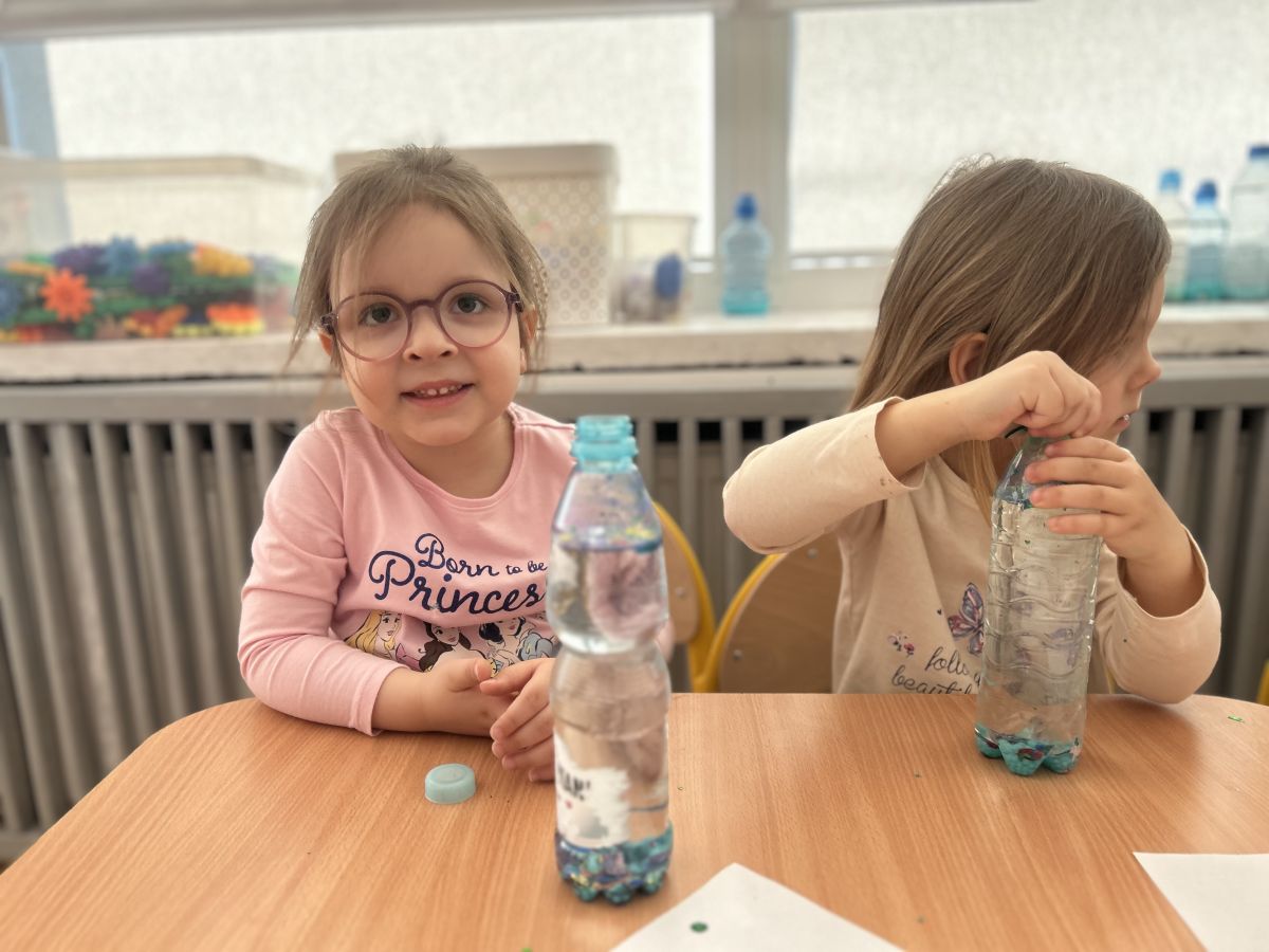 Podczas tworzenia dzieci rozwijały swoją kreatywność, wyobraźnię oraz sprawność manualną. Zabawa z butelkami sensorycznymi to doskonały sposób na wyciszenie i relaks. Kolorowe, połyskujące drobinki pomagają skupić uwagę i działają kojąco na zmysły.