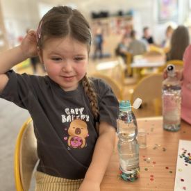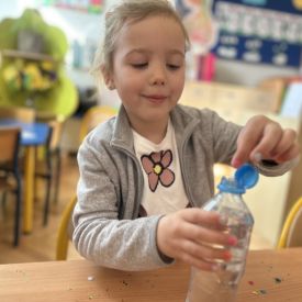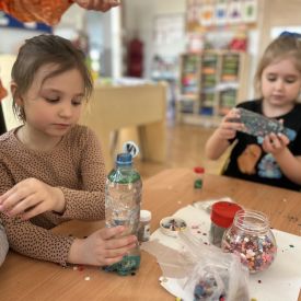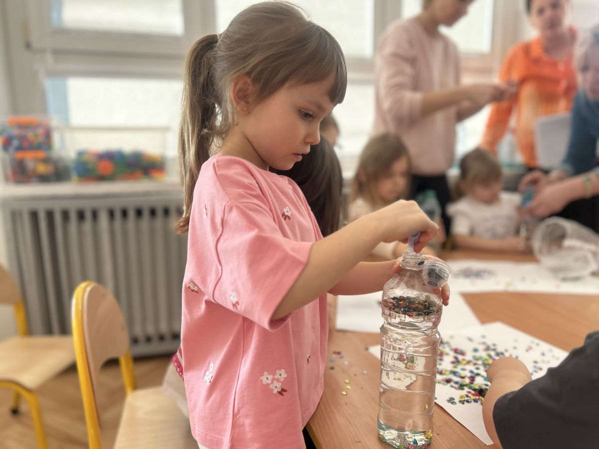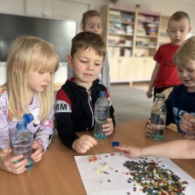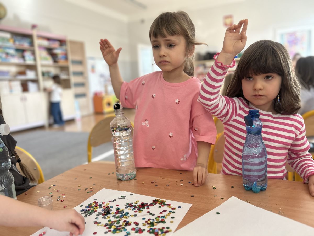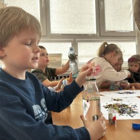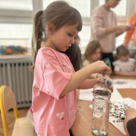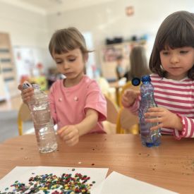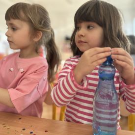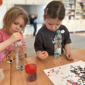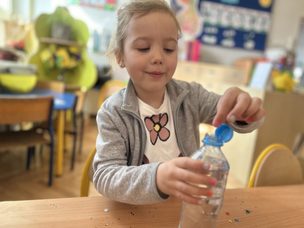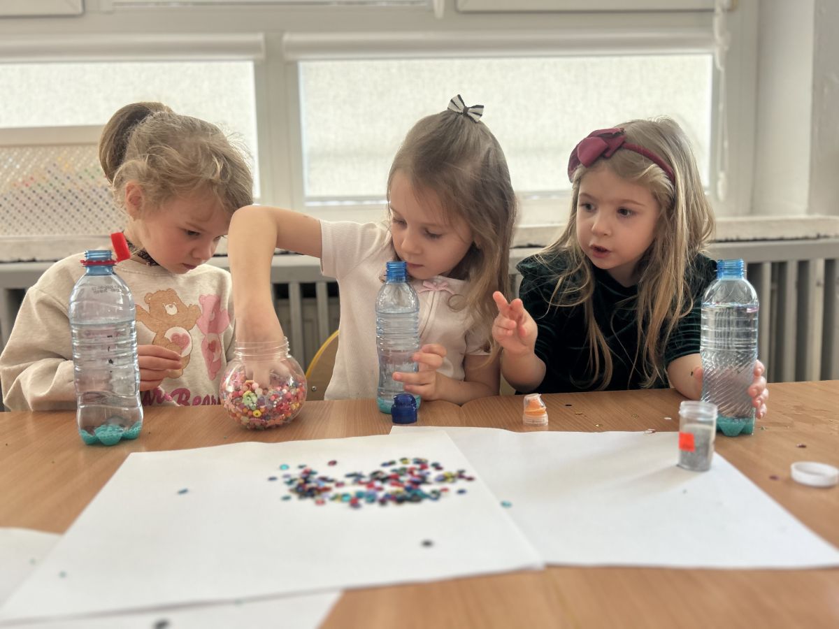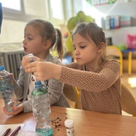 Podczas tworzenia dzieci rozwijały swoją kreatywność, wyobraźnię oraz sprawność manualną. Zabawa z butelkami sensorycznymi to doskonały sposób na wyciszenie i relaks. Kolorowe, połyskujące drobinki pomagają skupić uwagę i działają kojąco na zmysły.