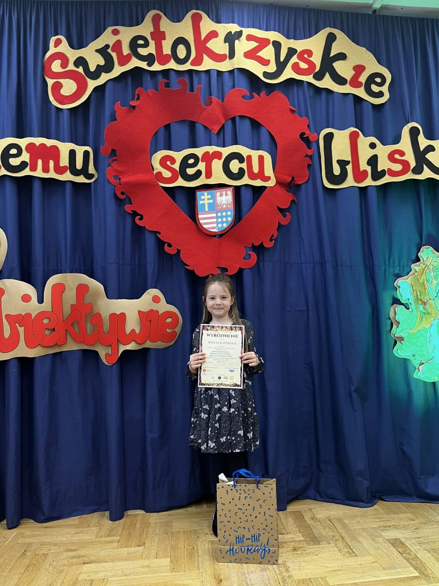 Natalka z grupy Biedronki wzięła udział w międzyprzedszkolnym konkursie „Świętokrzyskie memu sercu bliskie”, który odbył się w Przedszkolu Samorządowym nr 18 w Kielcach.