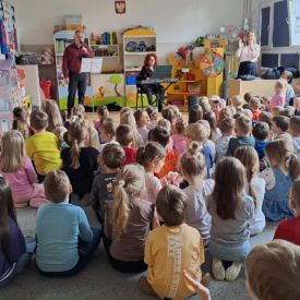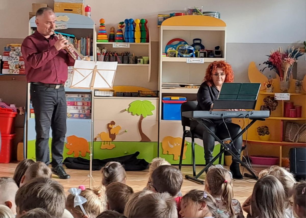 W dniu 14 listopada nasze przedszkole odwiedzili muzycy z Filharmonia Świętokrzyskiej, prezentując dzieciom wyjątkowy koncert patriotyczny. Było to spotkanie pełne muzyki, historii oraz ciekawostek o polskiej kulturze i tradycjach. Podczas koncertu dzieci miały okazję usłyszeć znane i ważne dla naszej historii utwory, takie jak: „Szara piechota”, „Przybyli ułani pod okienko”, „Pierwsza Brygada”. Przedszkolaki poznały również krótką historię rozbioru Polski.