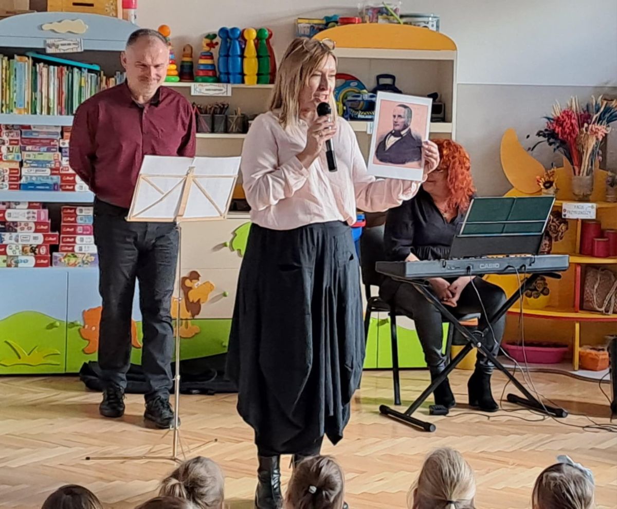 W czasie koncertu przybliżona została również postać Stanisława Moniuszki – wybitnego polskiego kompozytora, zwanego „ojcem opery narodowej”. Przedszkolaki poznały jego najsłynniejsze dzieło, operę „Halka”, oraz dowiedziały się, dlaczego jest ona tak ważna w polskiej kulturze.