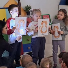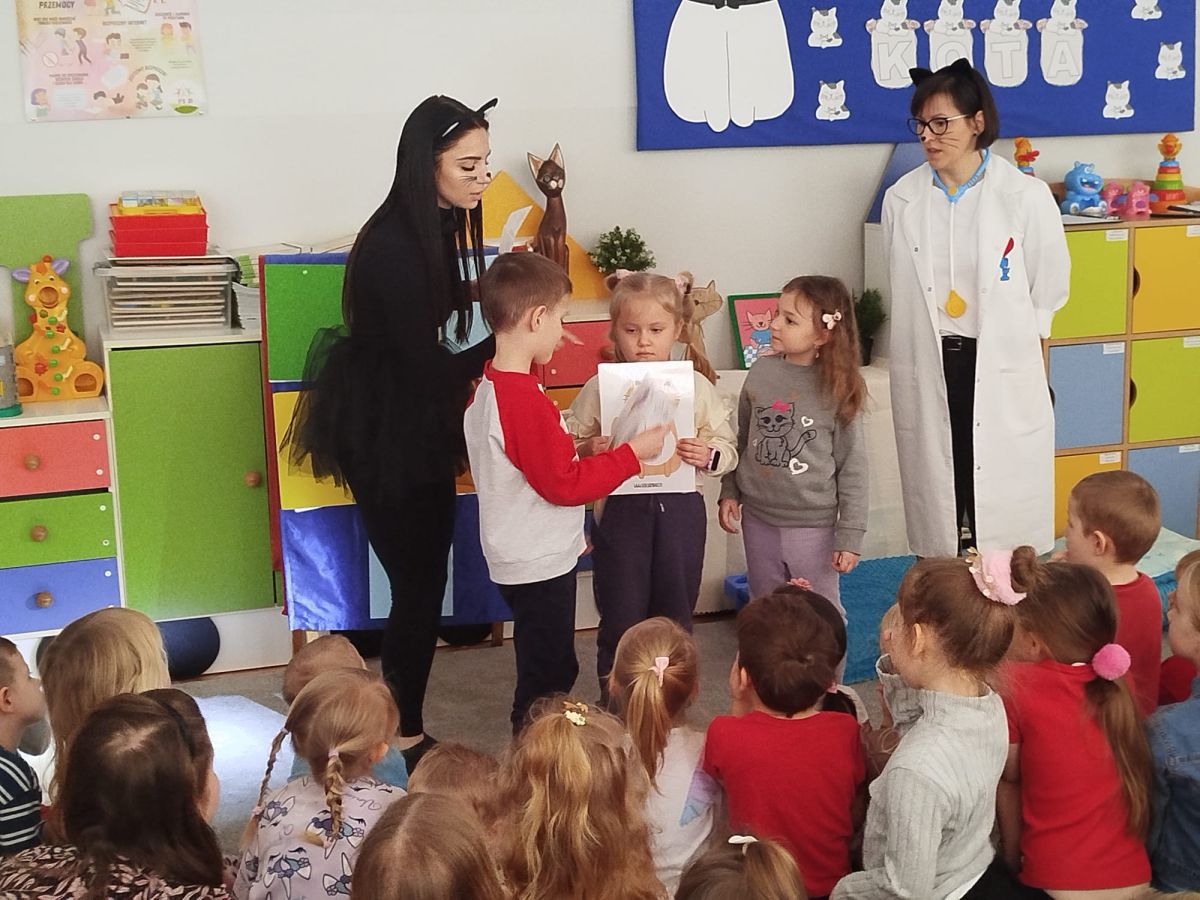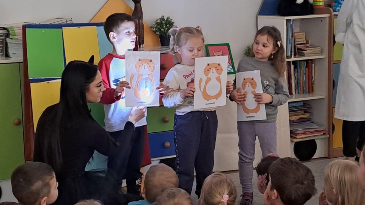 Na zakończenie odbył się quiz wiedzy o kotach. Przedszkolaki określały, czy podane stwierdzenia są prawdziwe, czy fałszywe. Choć nie było to łatwe, wszystkie dzieci spisały się celująco i zdobyły zaszczytny tytuł Kociego Przyjaciela.