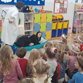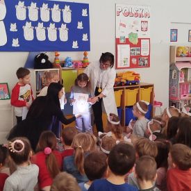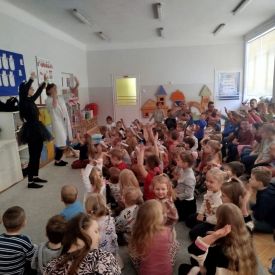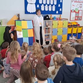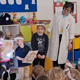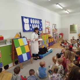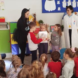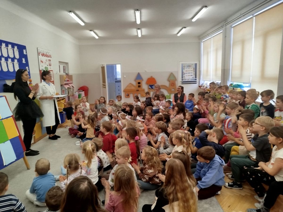 Uroczystość rozpoczęła się od inscenizacji wiersza „Chory kotek” autorstwa Stanisława Jachowicza w wykonaniu nauczycielek. Przedstawienie stało się doskonałym wstępem do rozmowy o przyczynach choroby głównego bohatera oraz o znaczeniu zdrowego odżywiania.
