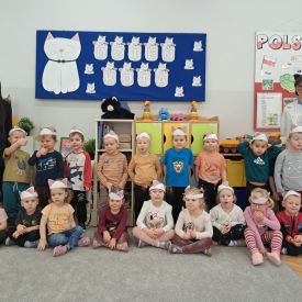 Dziś w naszym przedszkolu obchodziliśmy Światowy Dzień Kota. Z tej okazji maluchy z grupy „Kotki” zaprosiły wszystkie przedszkolaki do wspólnej, radosnej zabawy.