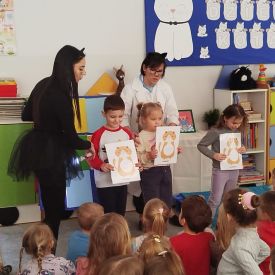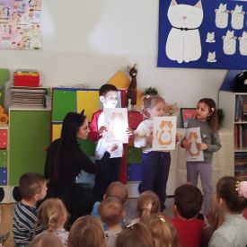 Kolejnym punktem programu było wspólne zaśpiewanie piosenki „Na wyspach Bergamutach” oraz rozpoznawanie kotów ze znanych bajek. Dzieci poradziły sobie z tym zadaniem znakomicie.