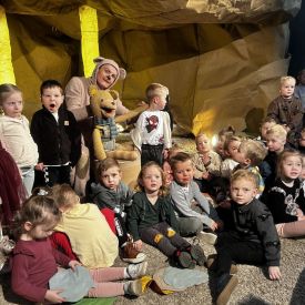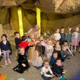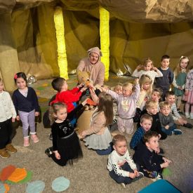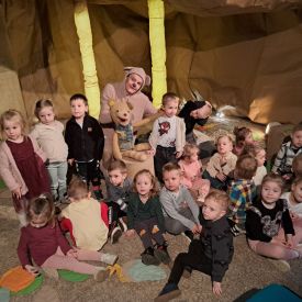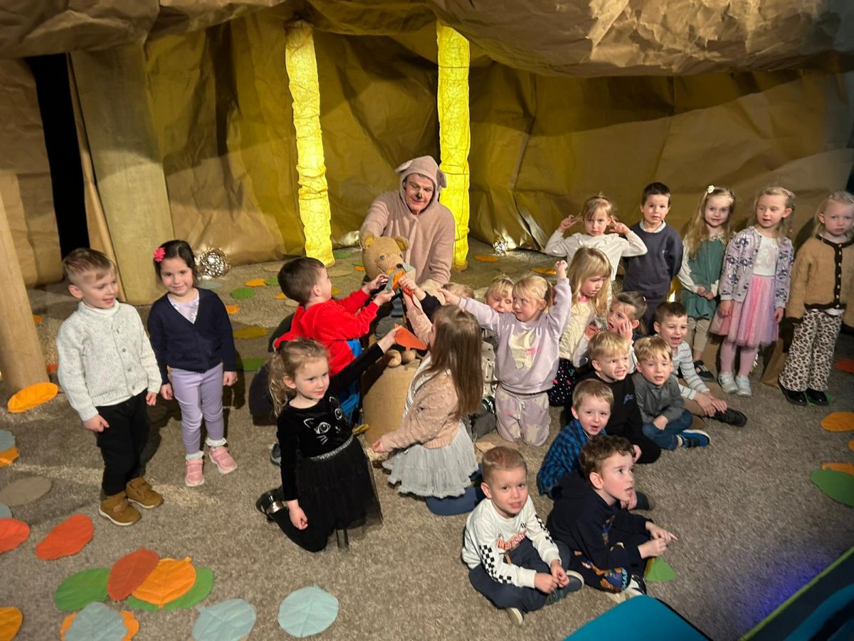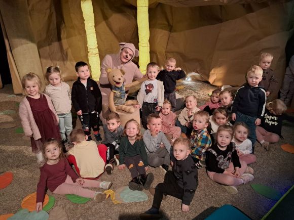 „Kotki” i „Misie” wybrały się na wyjątkową wycieczkę do Teatru Lalki i Aktora "Kubuś", gdzie obejrzały przedstawienie pt. „Misiaczek”.