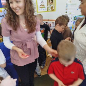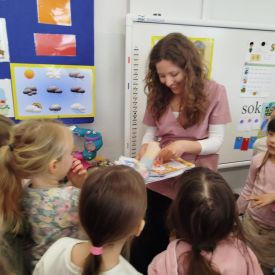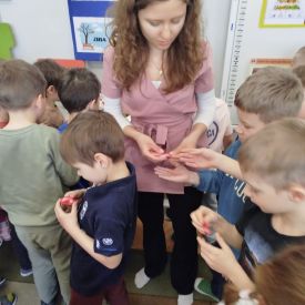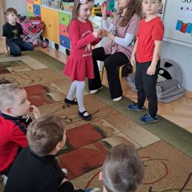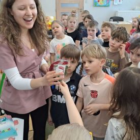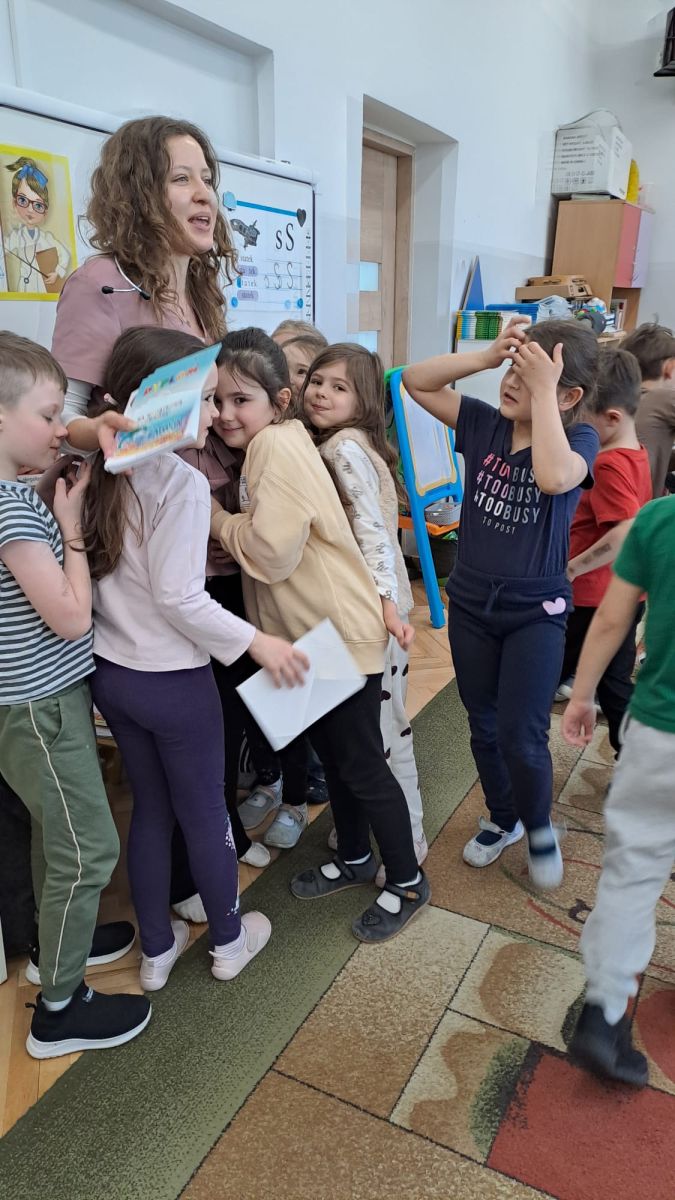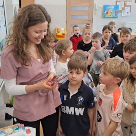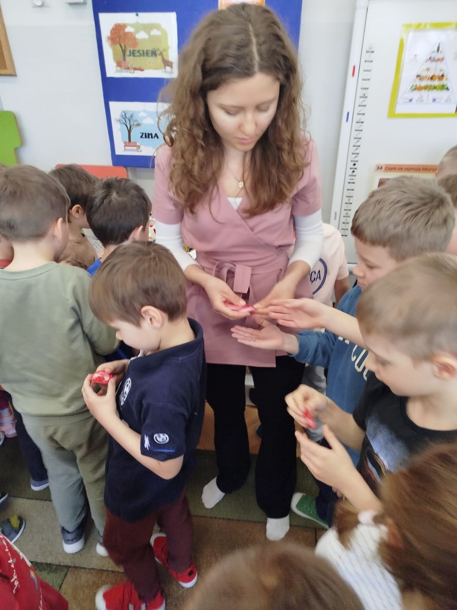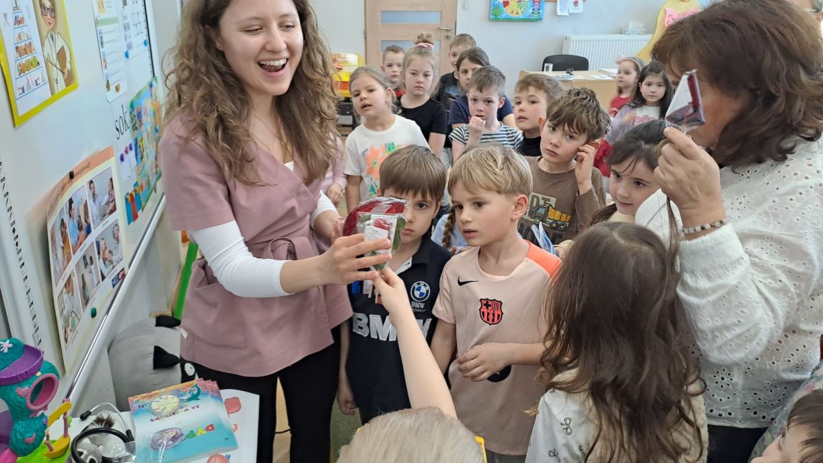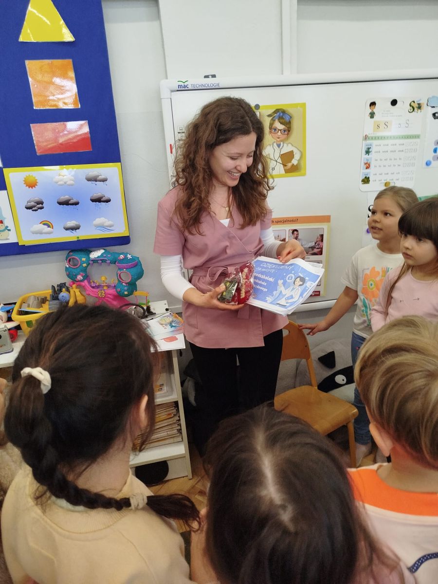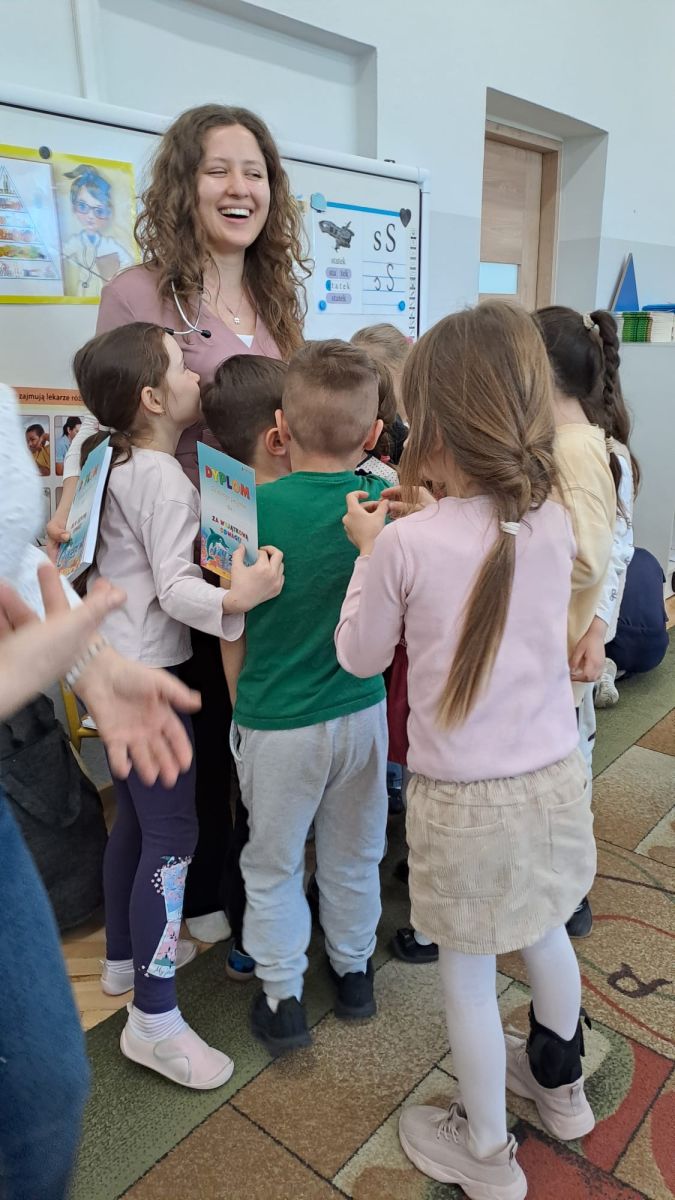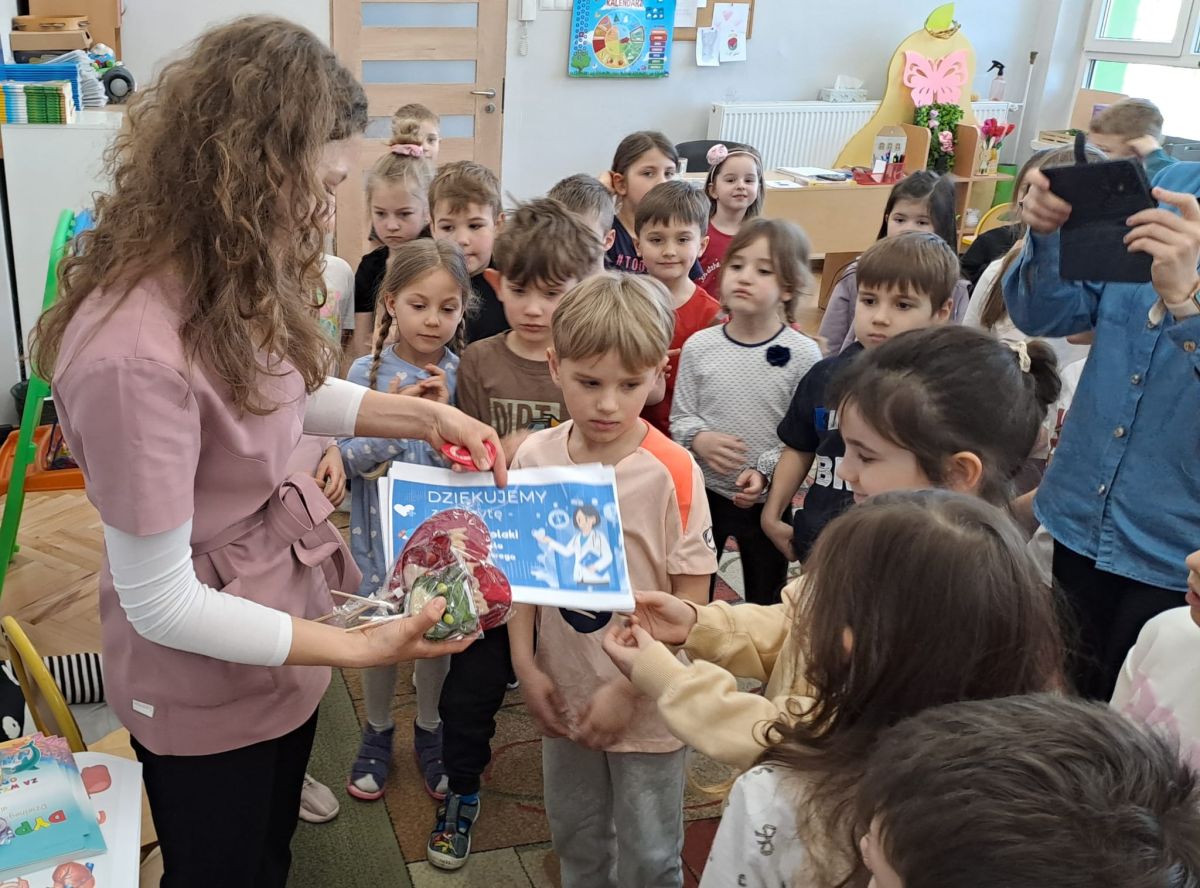 W ramach podziękowania przedszkolaki przygotowały dla naszego gościa wyjątkowy prezent – własnoręcznie wykonaną książeczkę pełną laurek, serduszek oraz rysunków przedstawiających ich wyobrażenia o pracy lekarza oraz własnoręcznie wykonane bransoletki. Po tym spotkaniu część dzieci z dumą zadeklarowała, że w przyszłości chciałaby pomagać innym i zostać lekarzem – tak jak pani Maria.