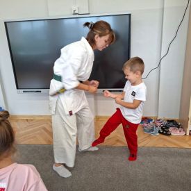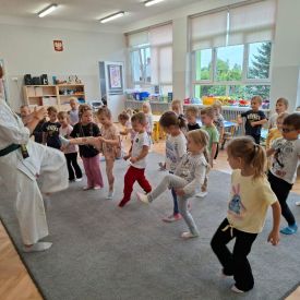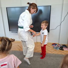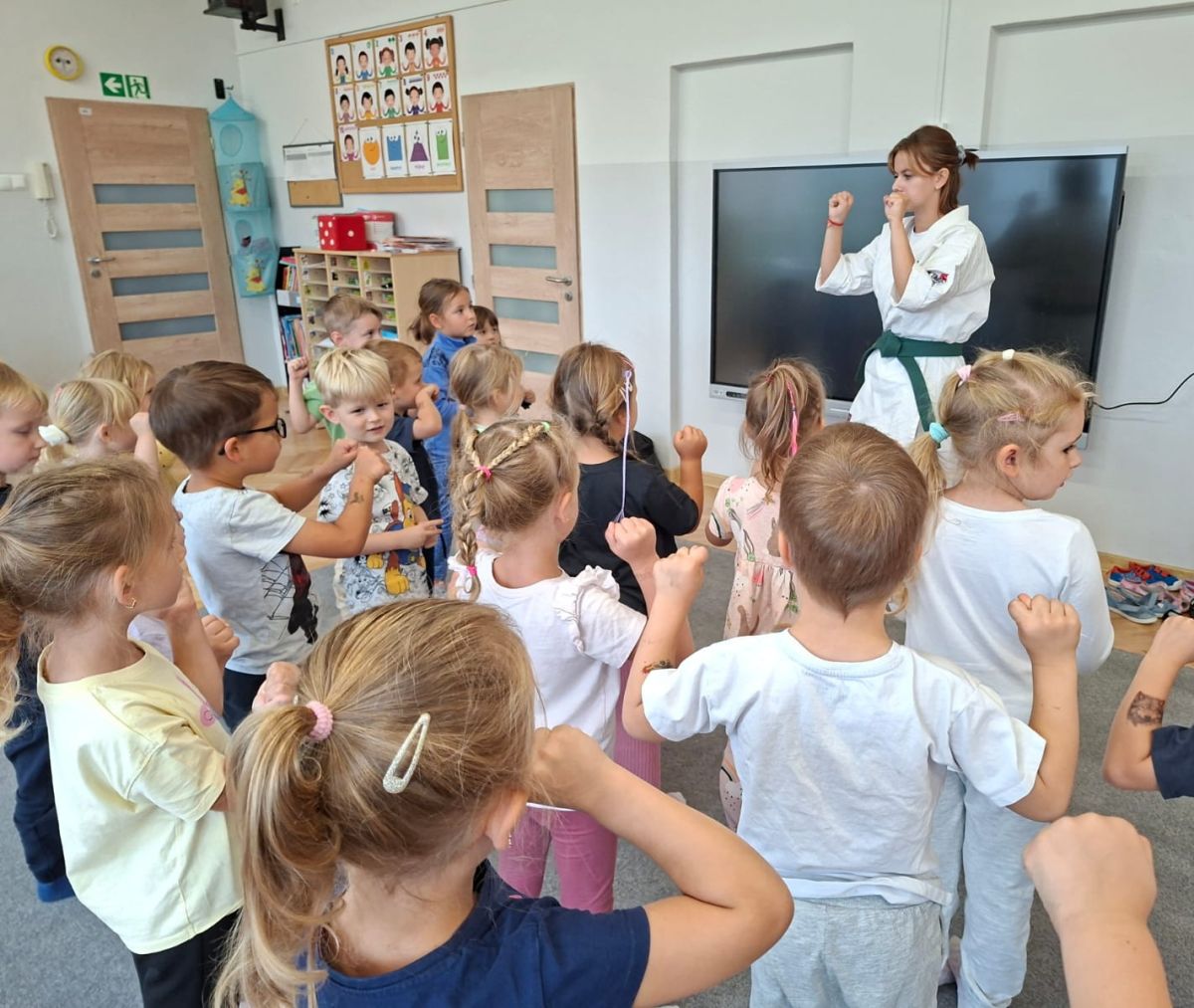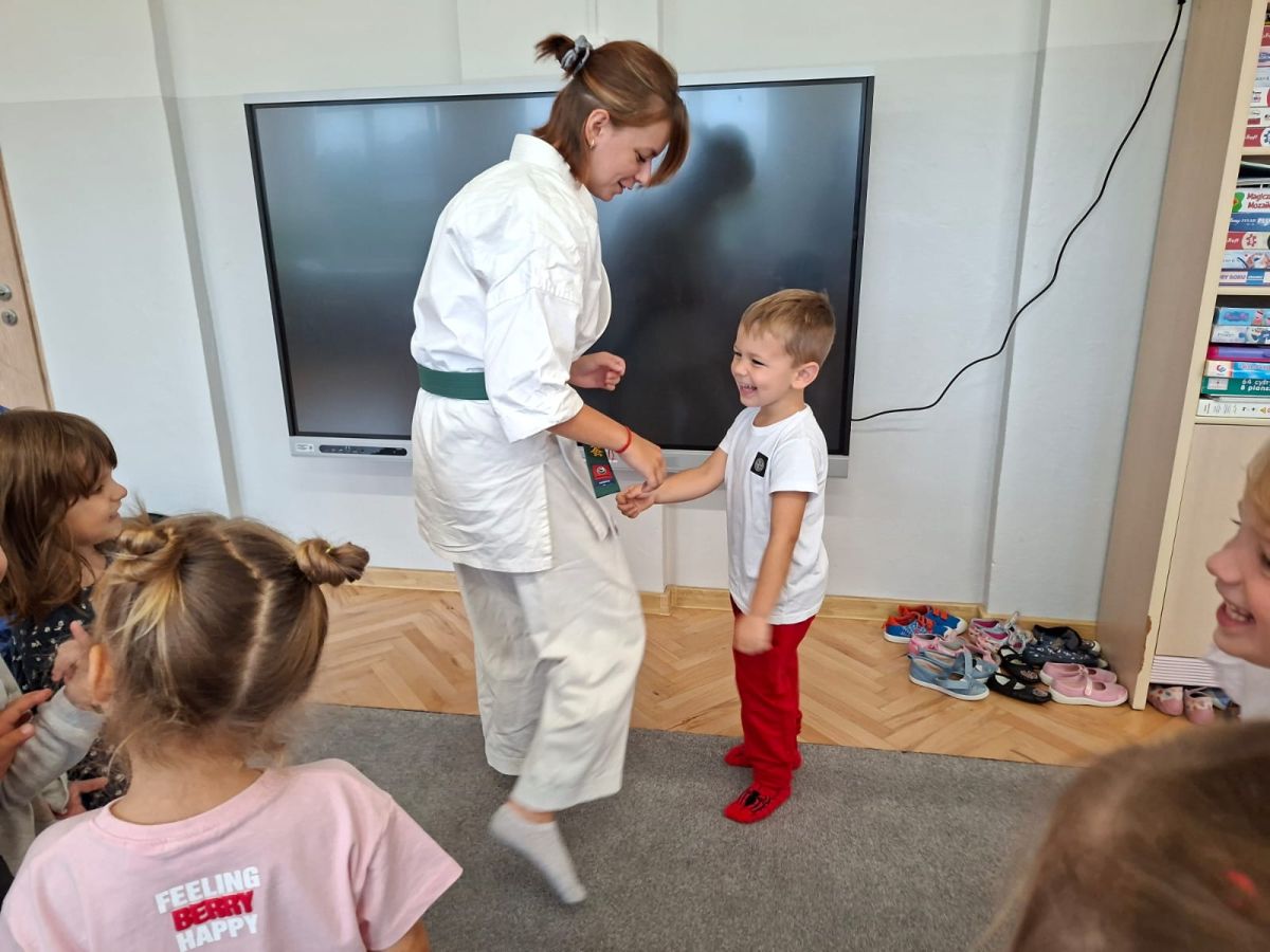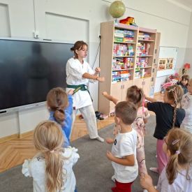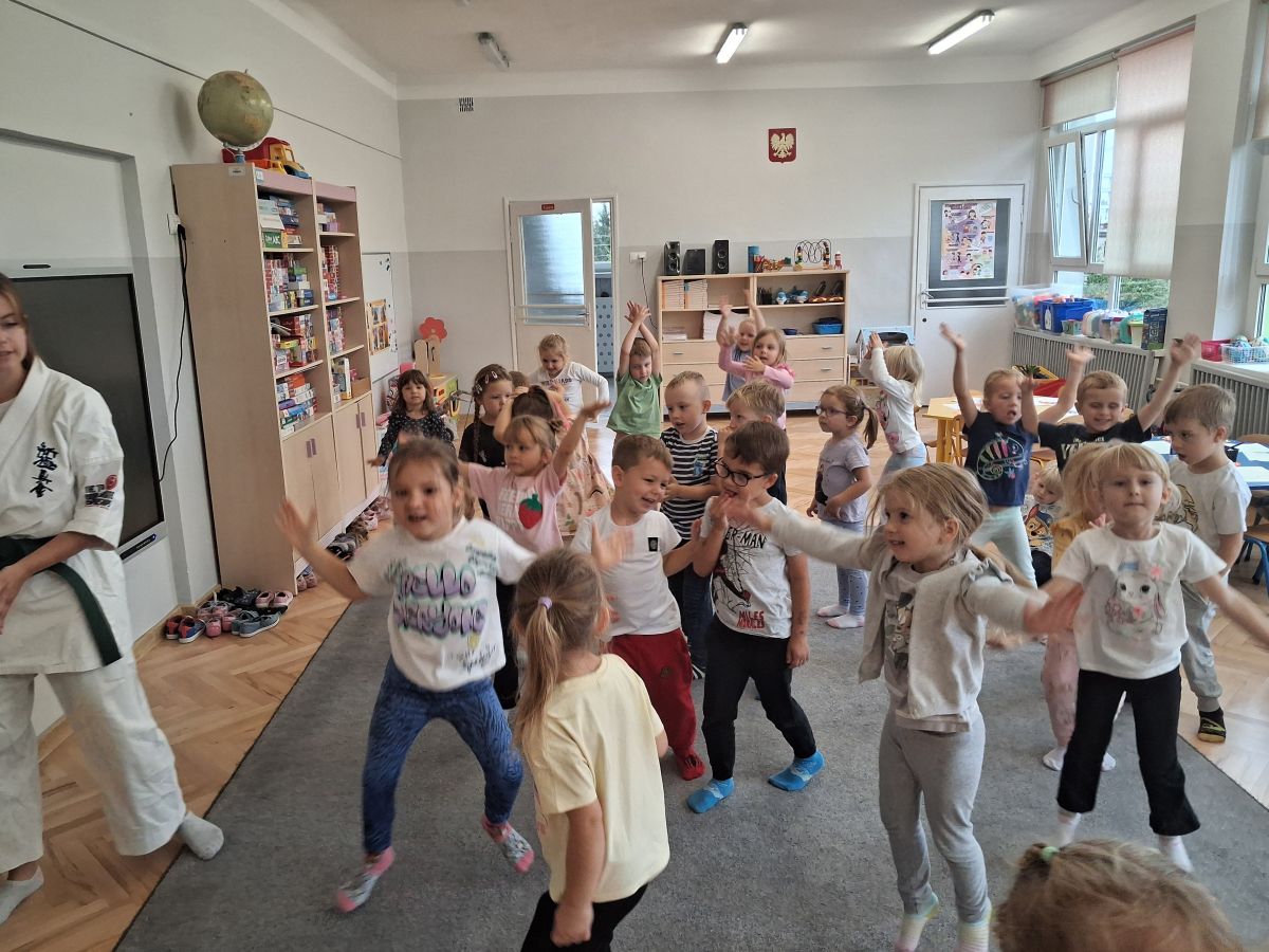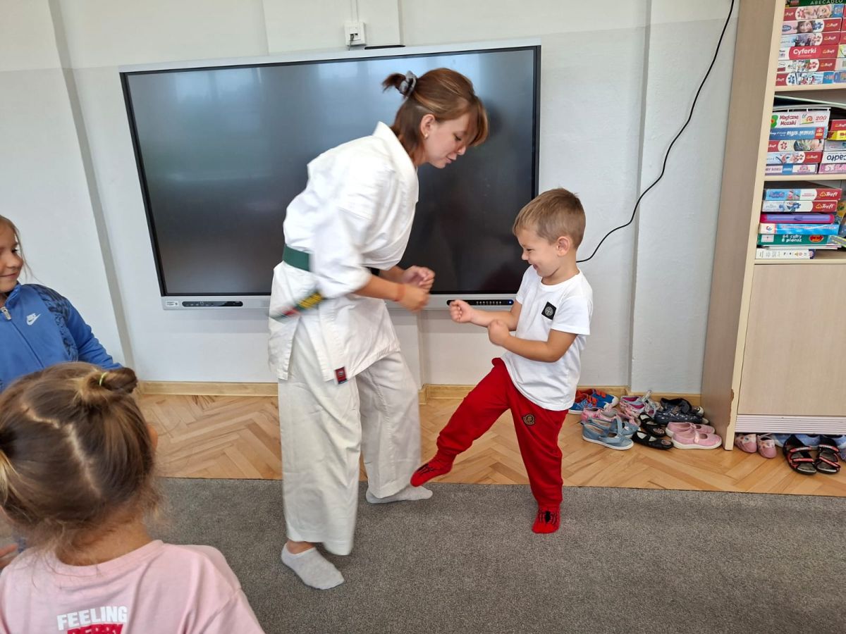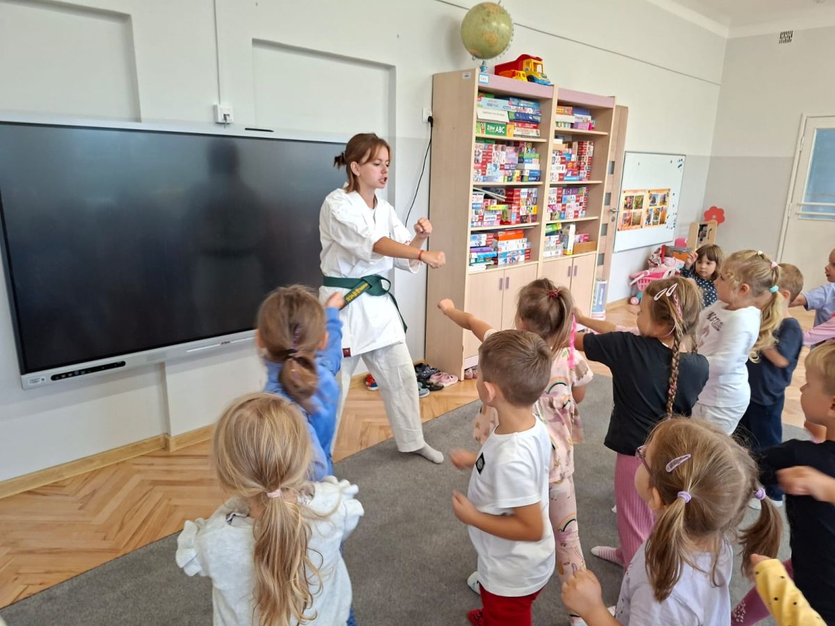 Dzieci uczyły się prostych pozycji i ruchów karate, próbowały utrzymać równowagę jak „żuraw”, a także głośno liczyły po japońsku do dziesięciu. Ćwiczenia miały formę wesołej zabawy i sprawiły wszystkim wiele radości.