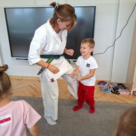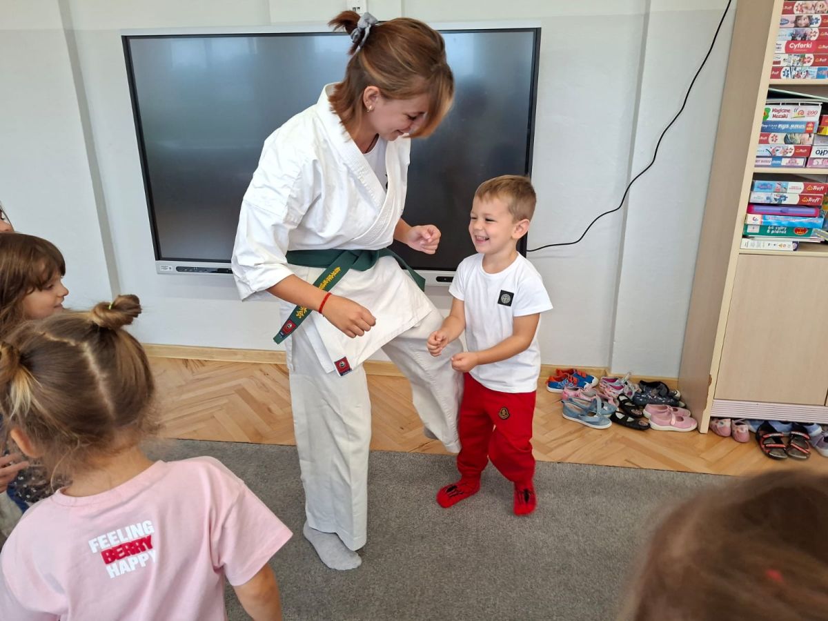 Cała grupa świetnie się bawiła, a zajęcia karate okazały się doskonałym sposobem na połączenie ruchu, zabawy i nauki.