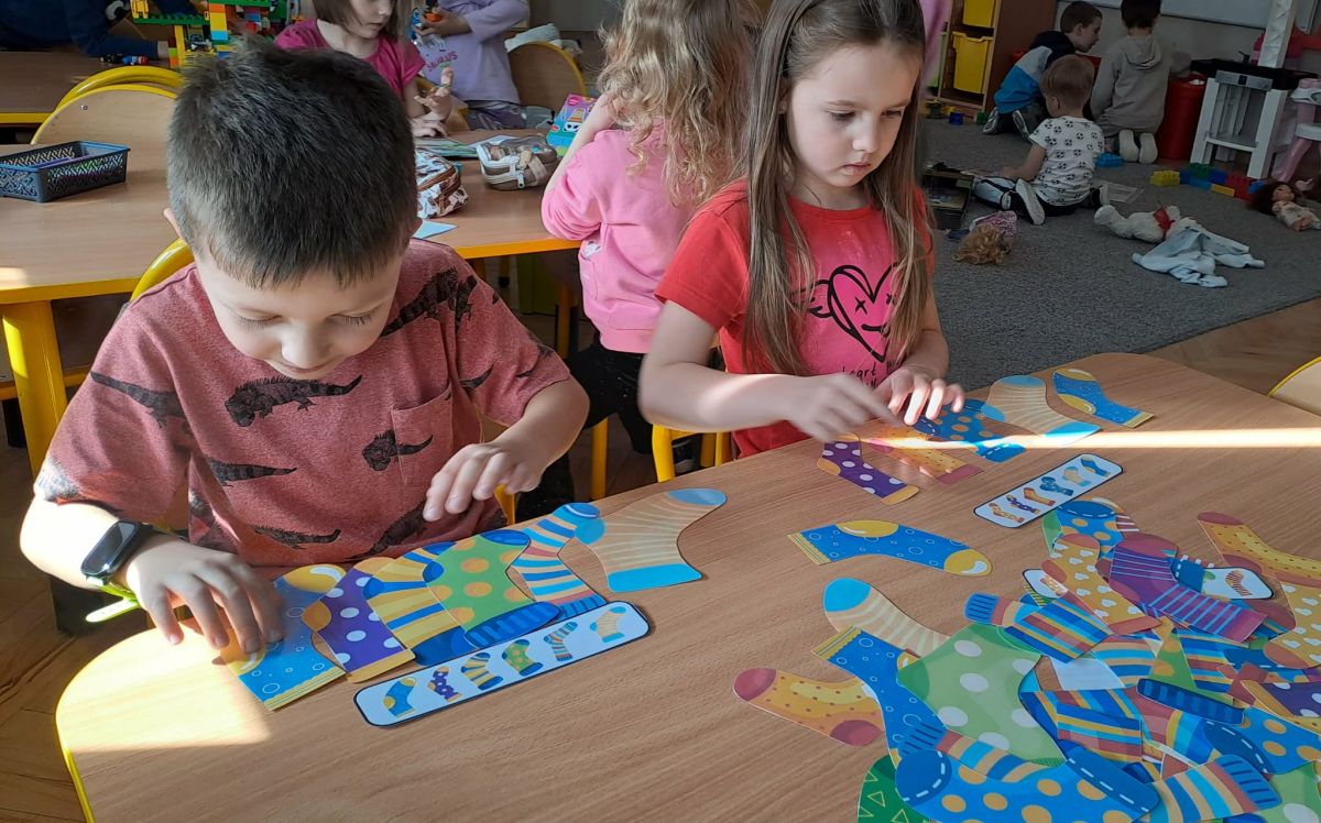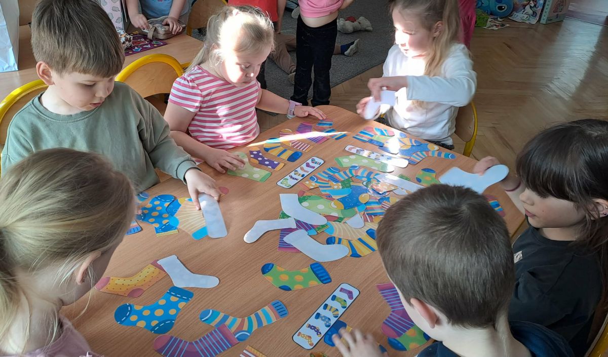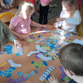Do obchodów włączyły się również dzieci z grup „Biedronki” i „Krasnale”, które z radością założyły skarpetki nie do pary. Tego dnia nie zabrakło ciekawych zabaw oraz prac plastycznych, w których skarpetki odgrywały główną rolę.