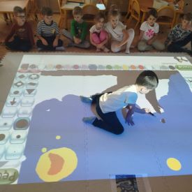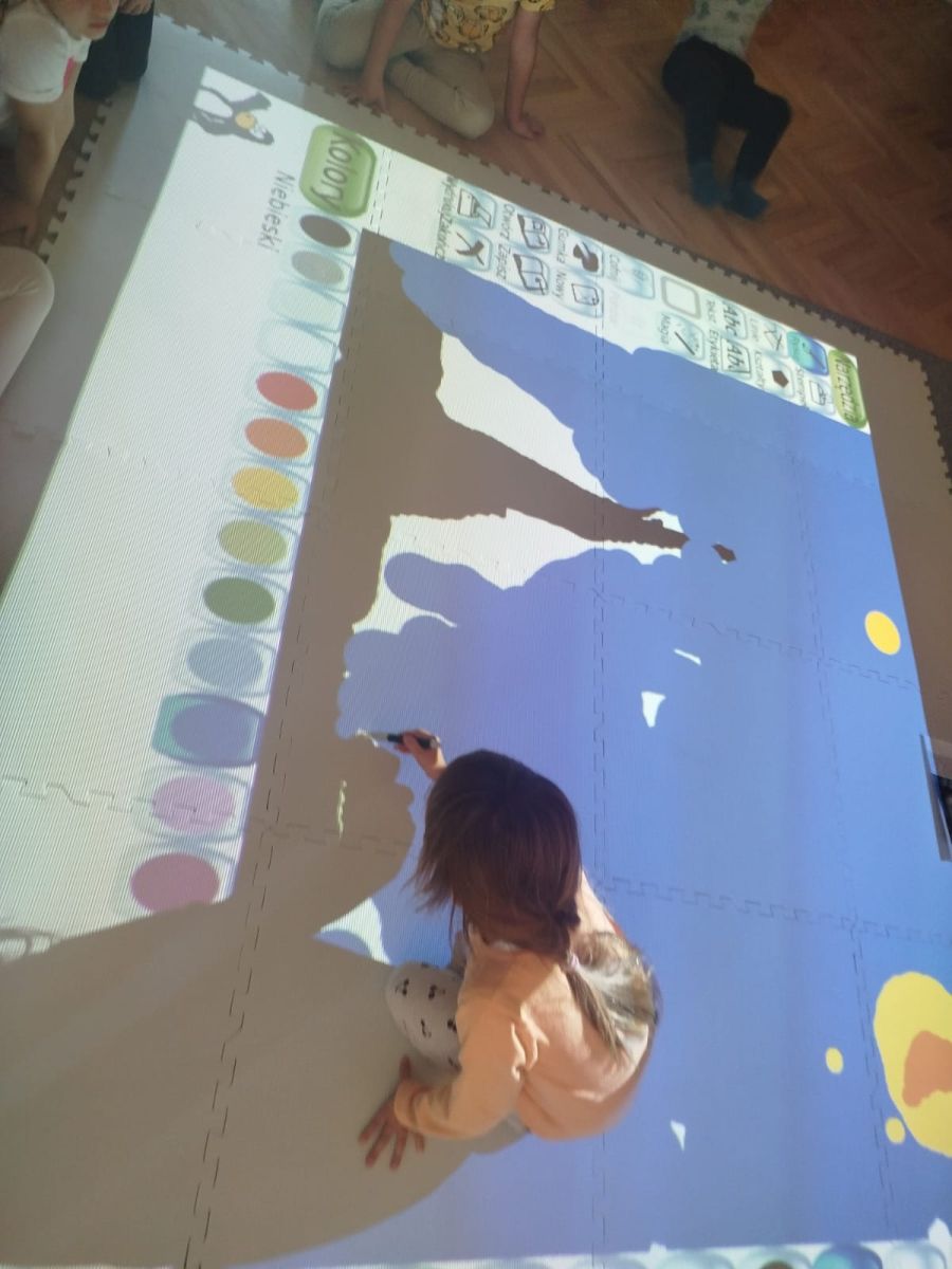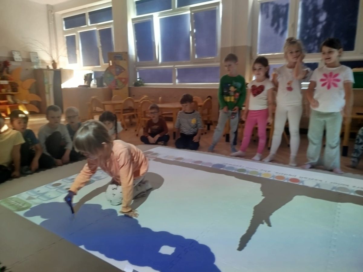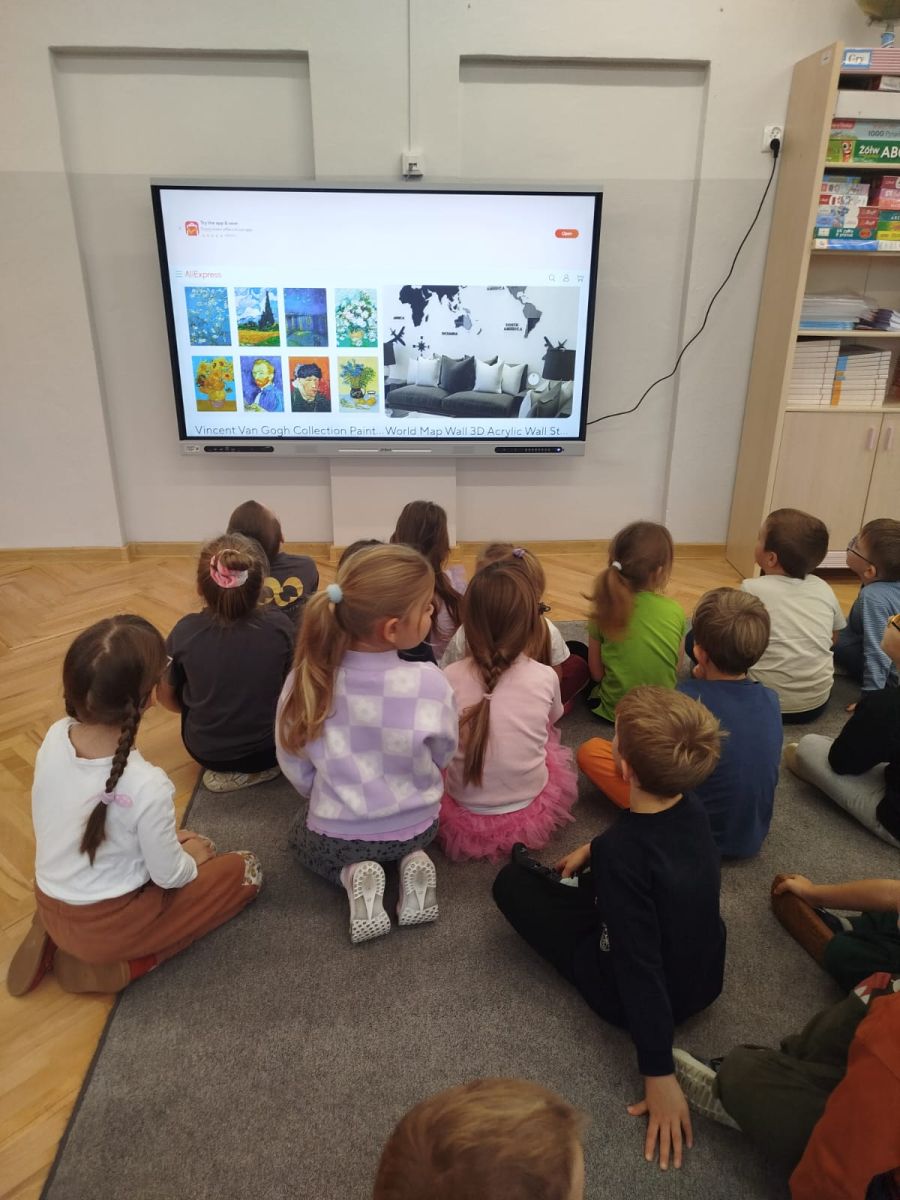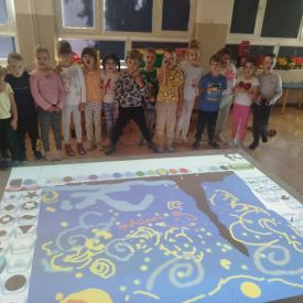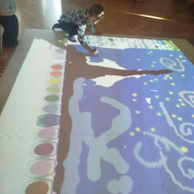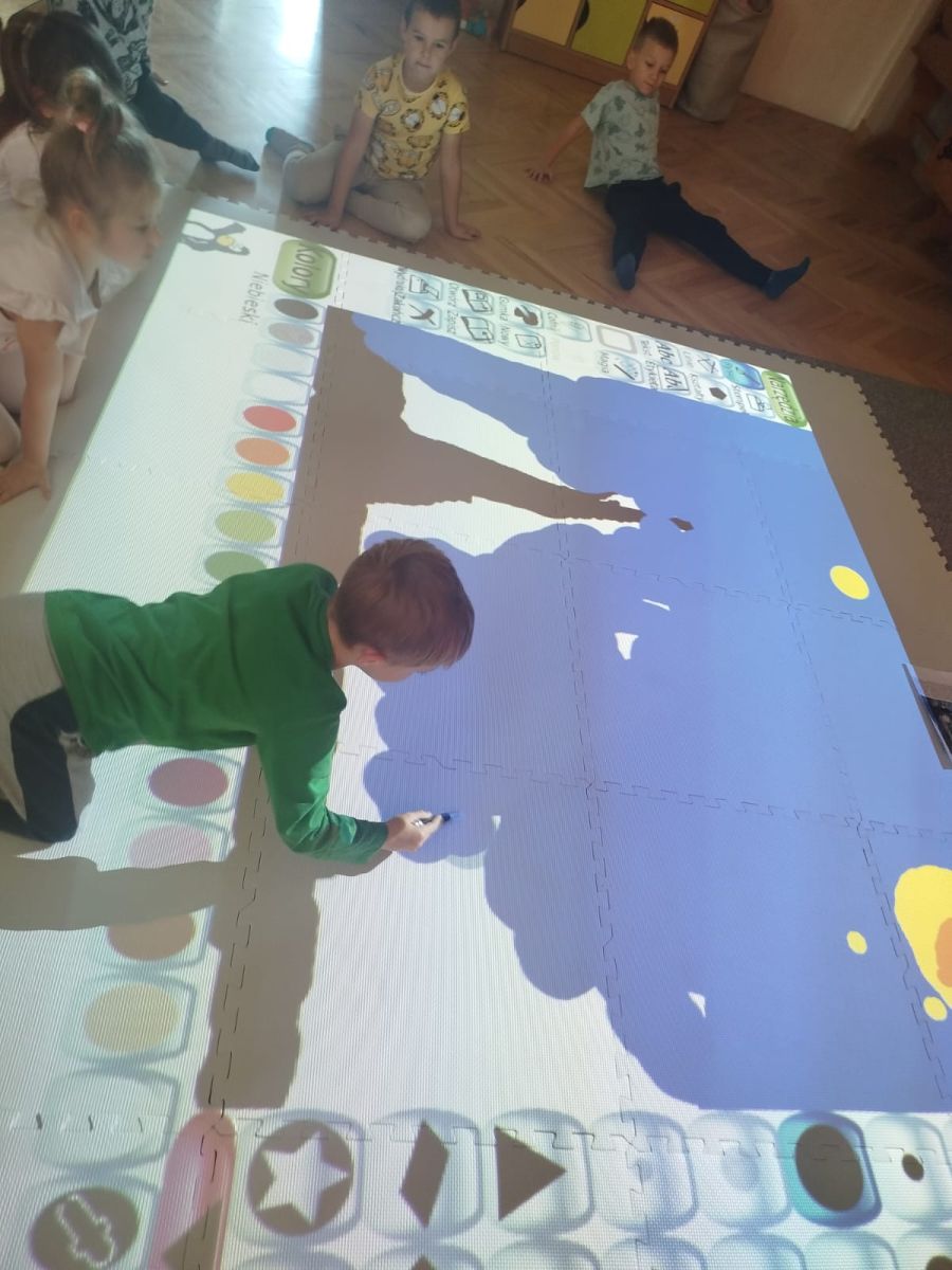 Zainspirowani twórczością Van Gogha, Krasnale przeniosły się na podłogę interaktywną, gdzie stworzyły własną wersję „Gwieździstej nocy”. Wspólna praca rozwijała współpracę rówieśniczą, logiczne i algorytmiczne myślenie, a także ekspresję twórczą.