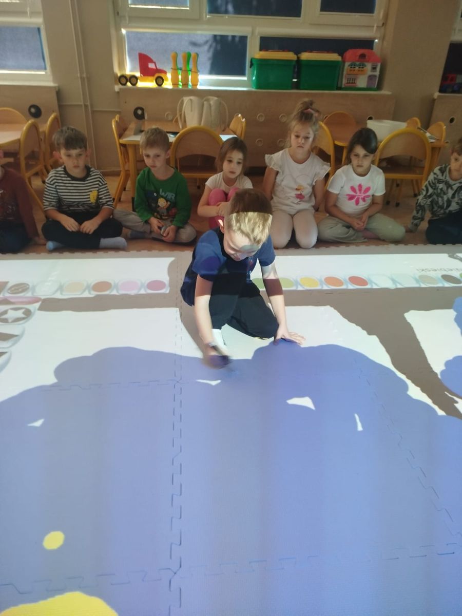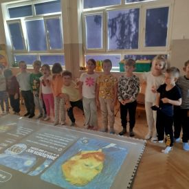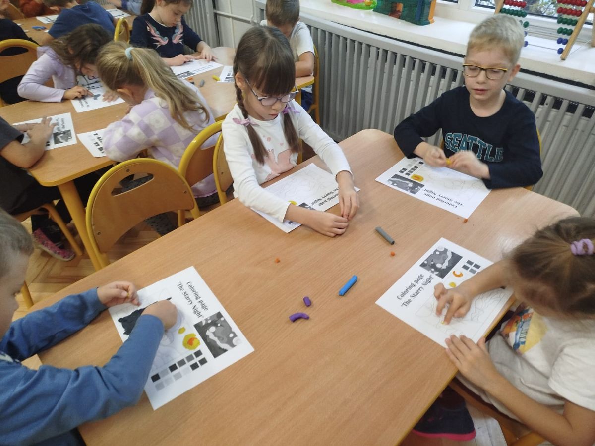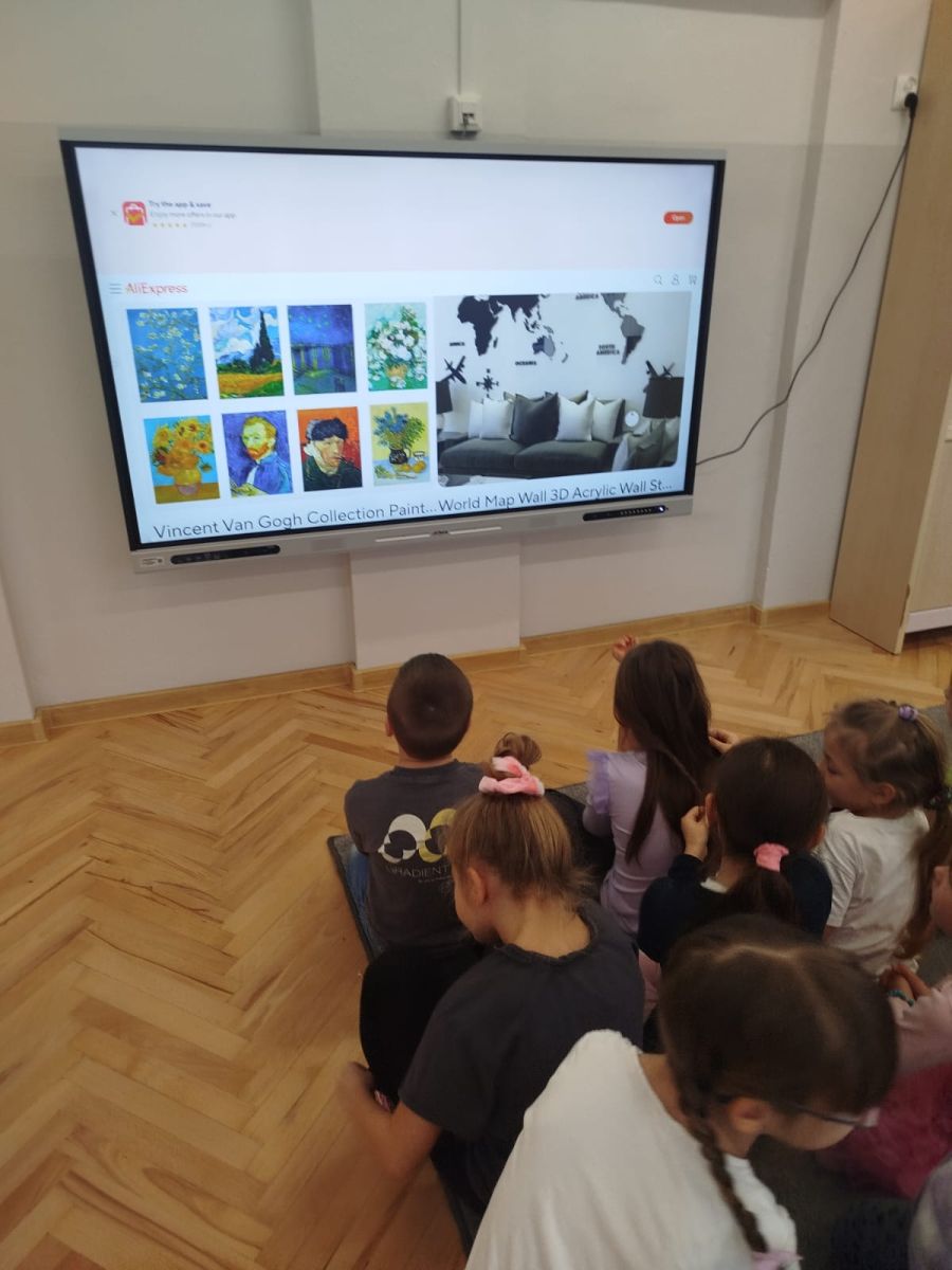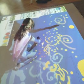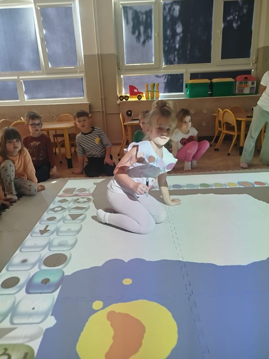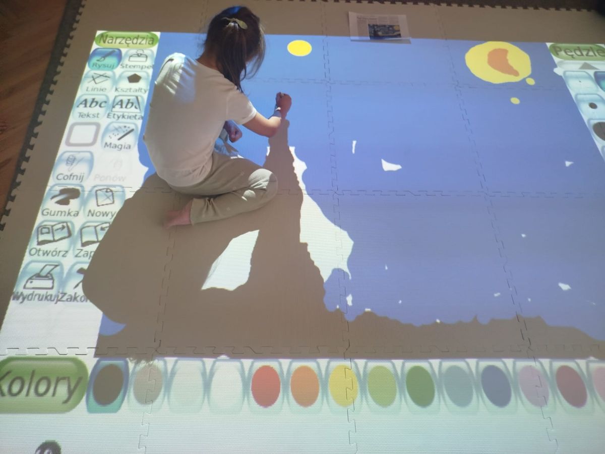 Zainspirowani twórczością Van Gogha, Krasnale przeniosły się na podłogę interaktywną, gdzie stworzyły własną wersję „Gwieździstej nocy”. Wspólna praca rozwijała współpracę rówieśniczą, logiczne i algorytmiczne myślenie, a także ekspresję twórczą.