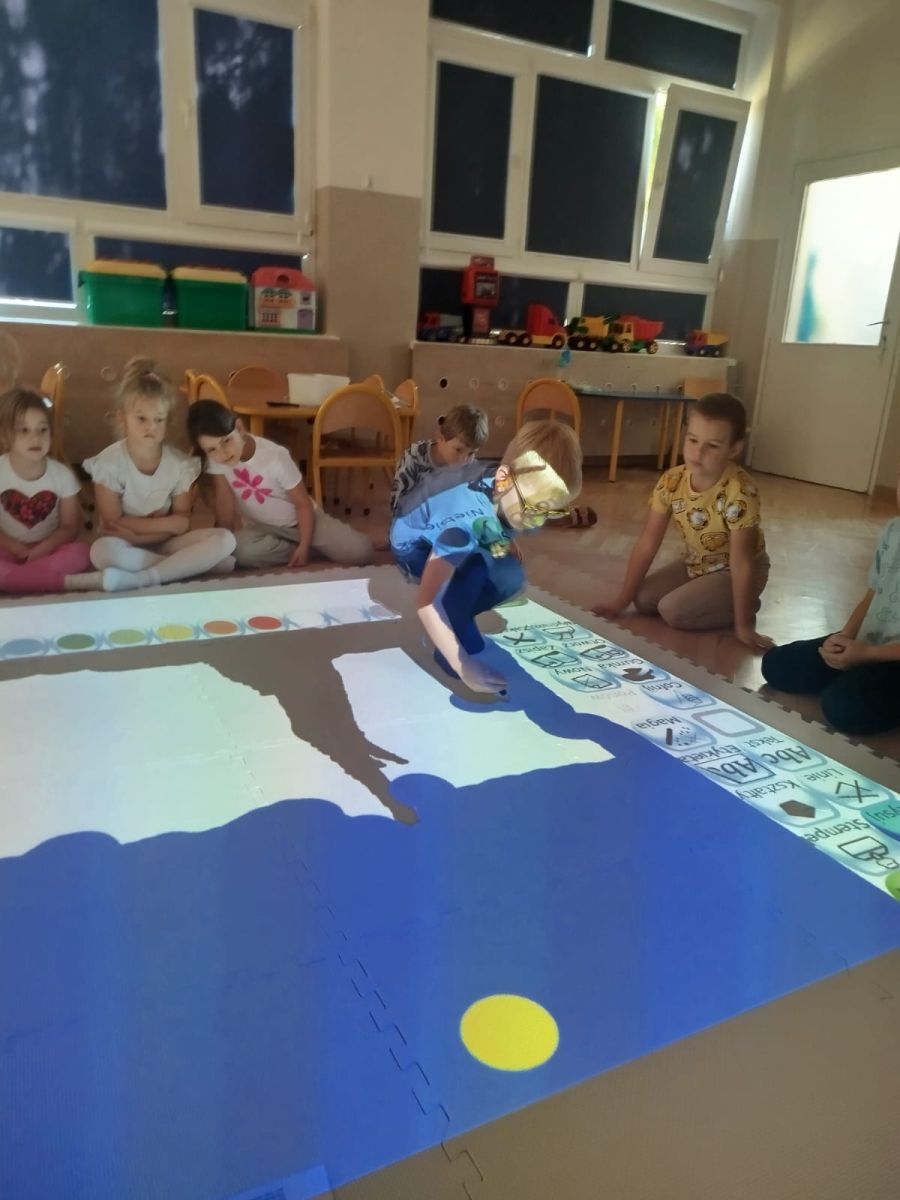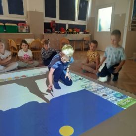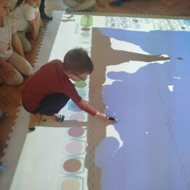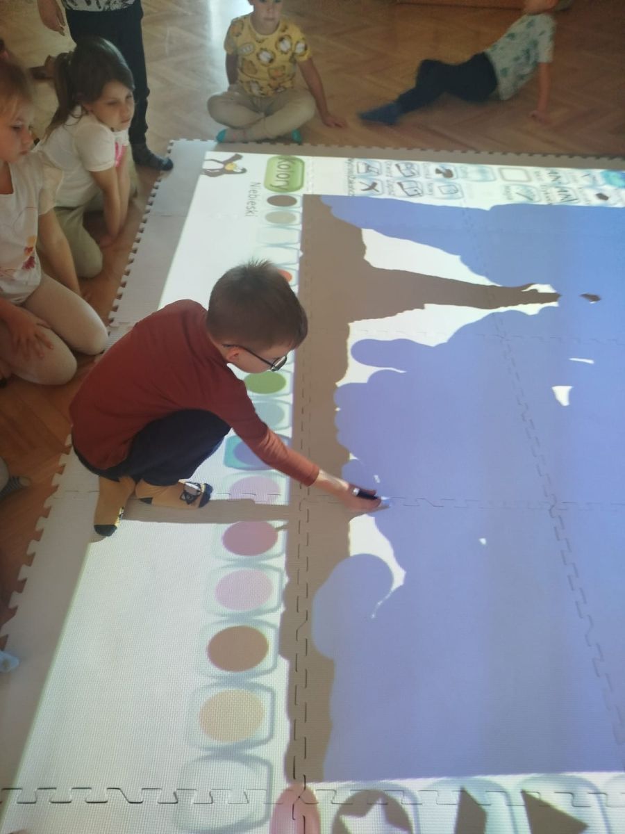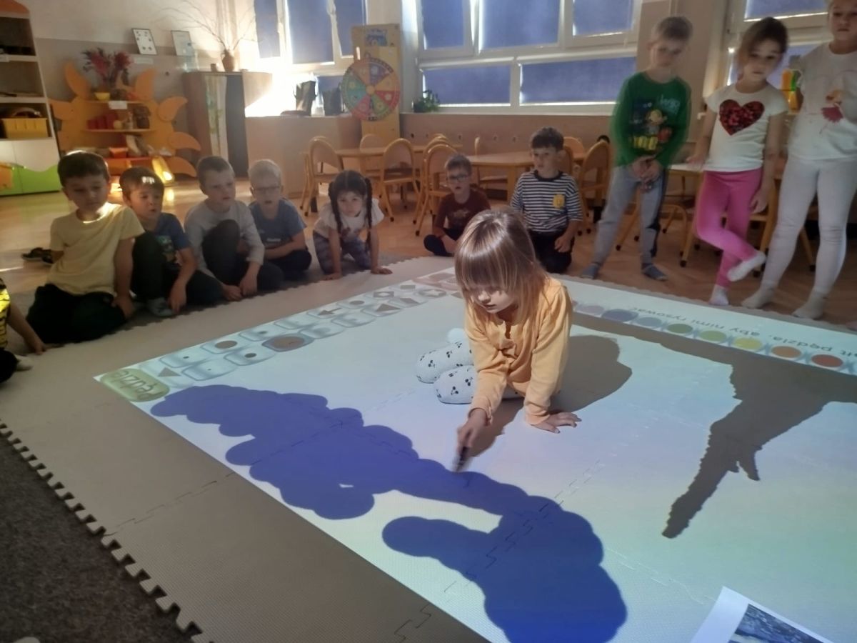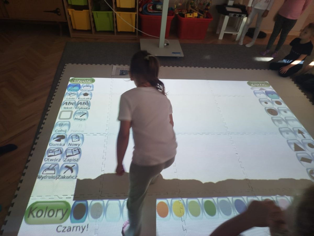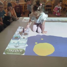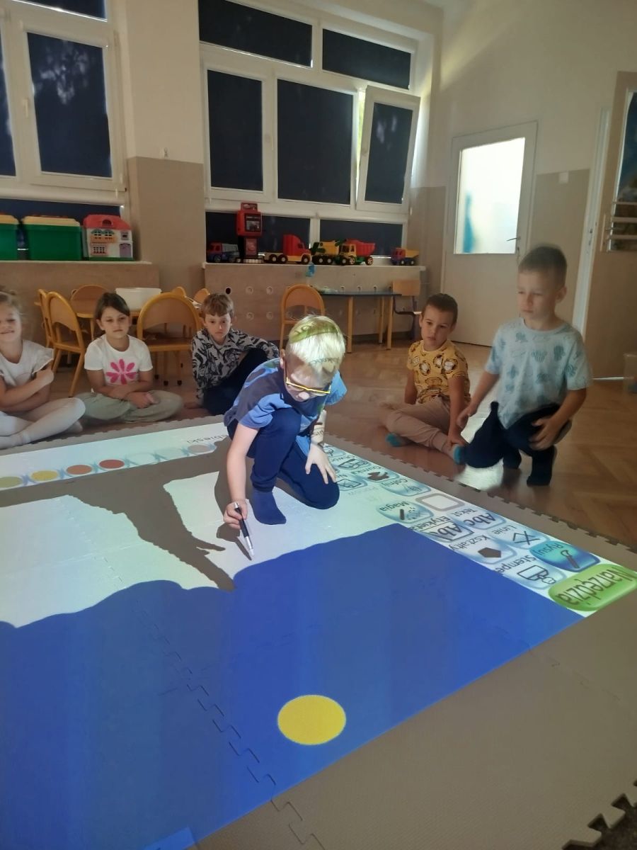 Zainspirowani twórczością Van Gogha, Krasnale przeniosły się na podłogę interaktywną, gdzie stworzyły własną wersję „Gwieździstej nocy”. Wspólna praca rozwijała współpracę rówieśniczą, logiczne i algorytmiczne myślenie, a także ekspresję twórczą.