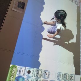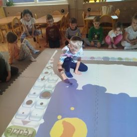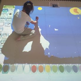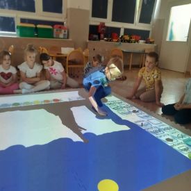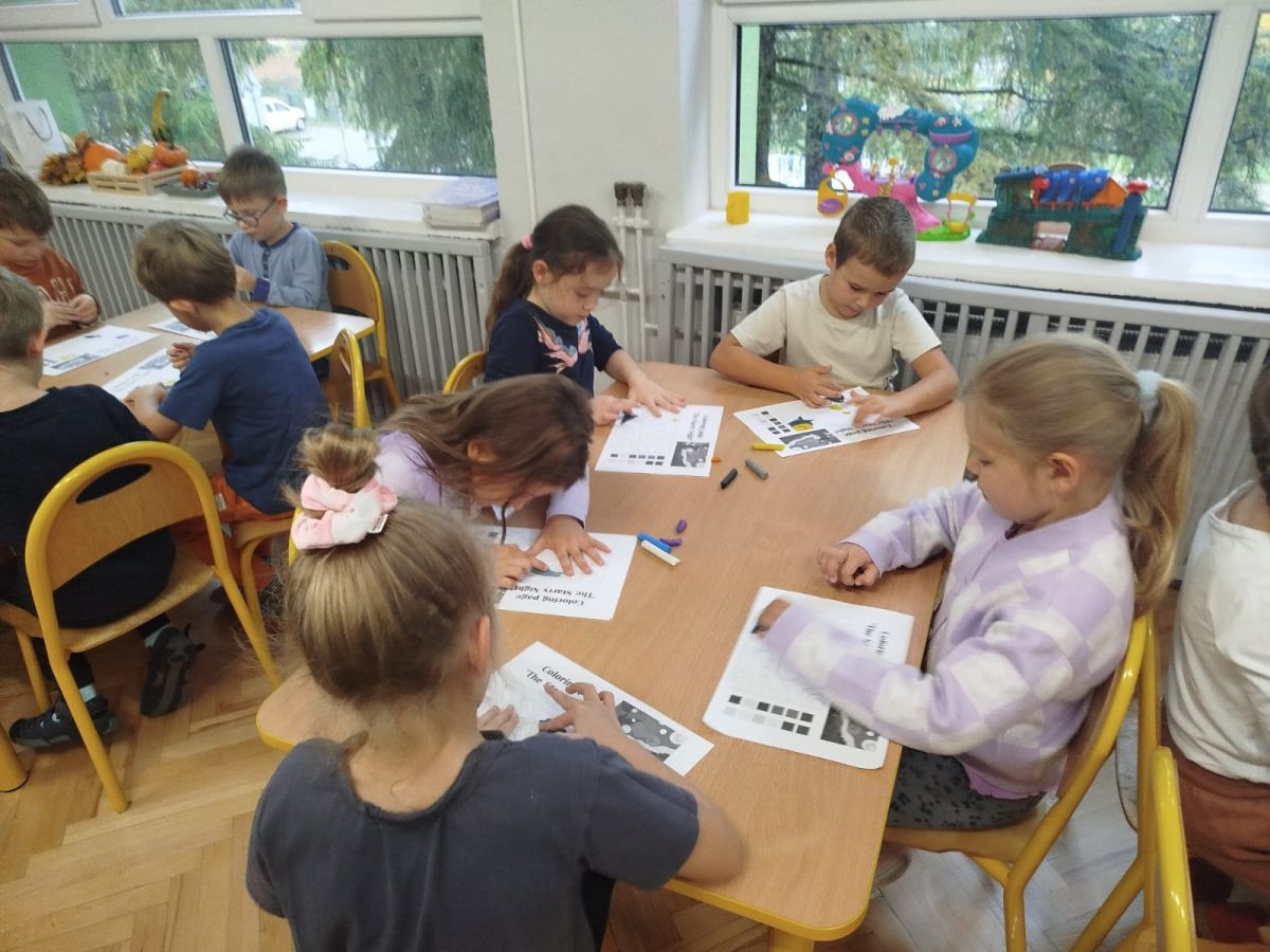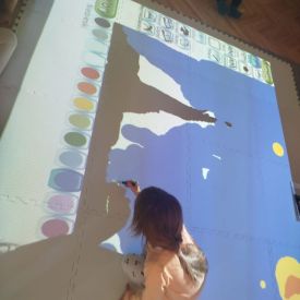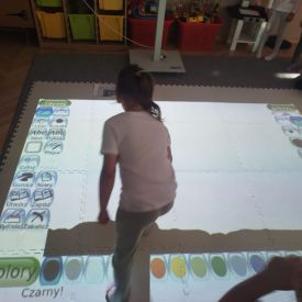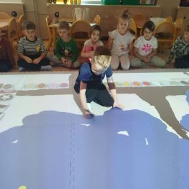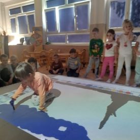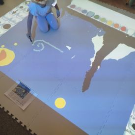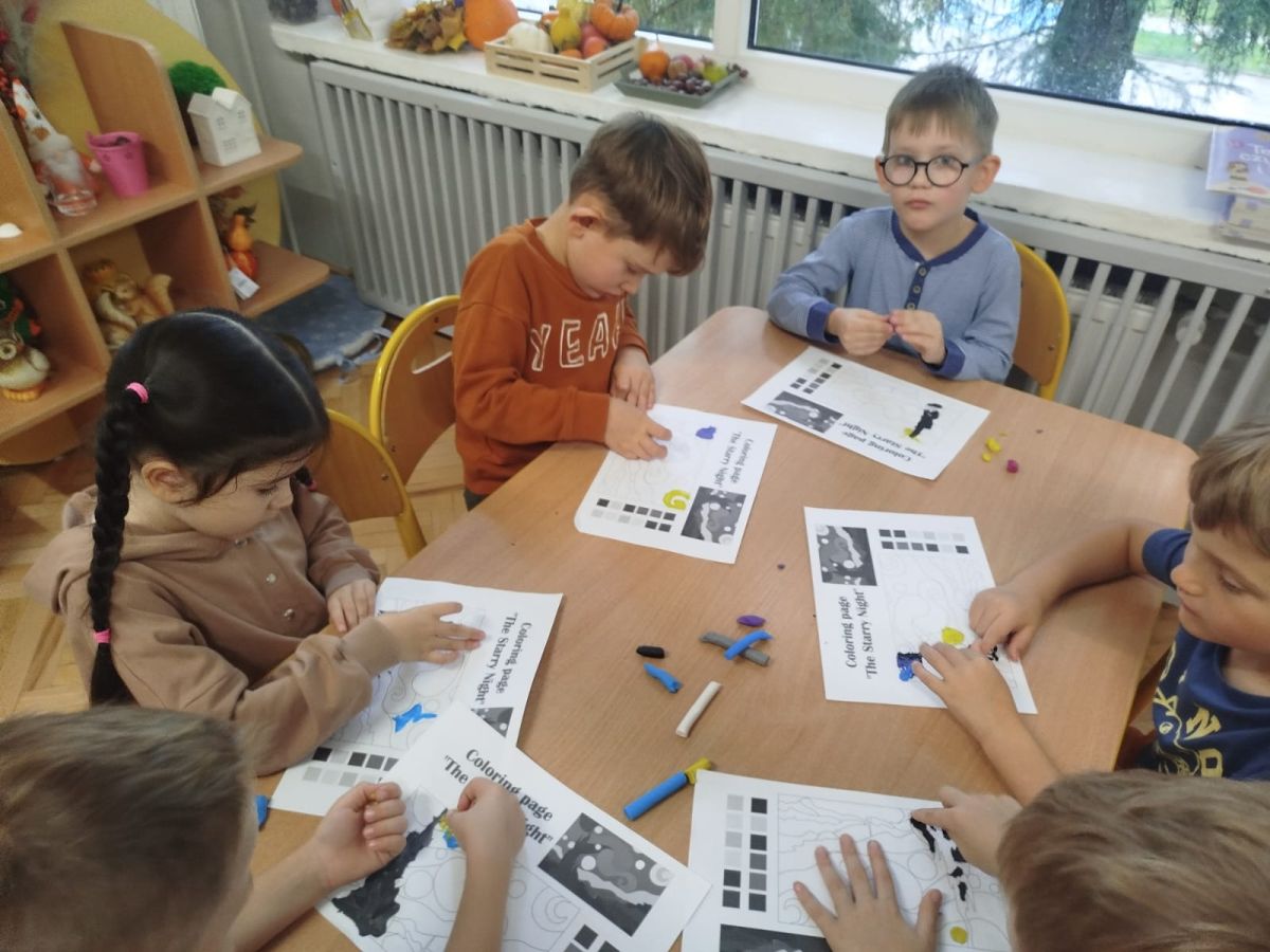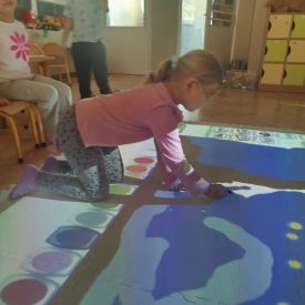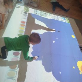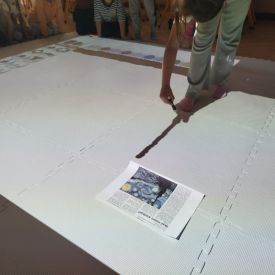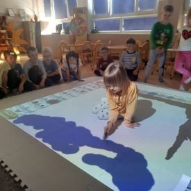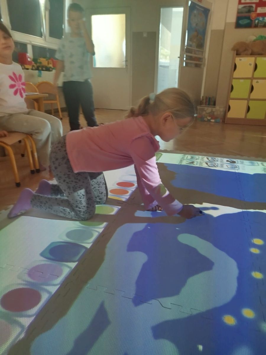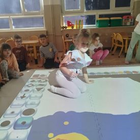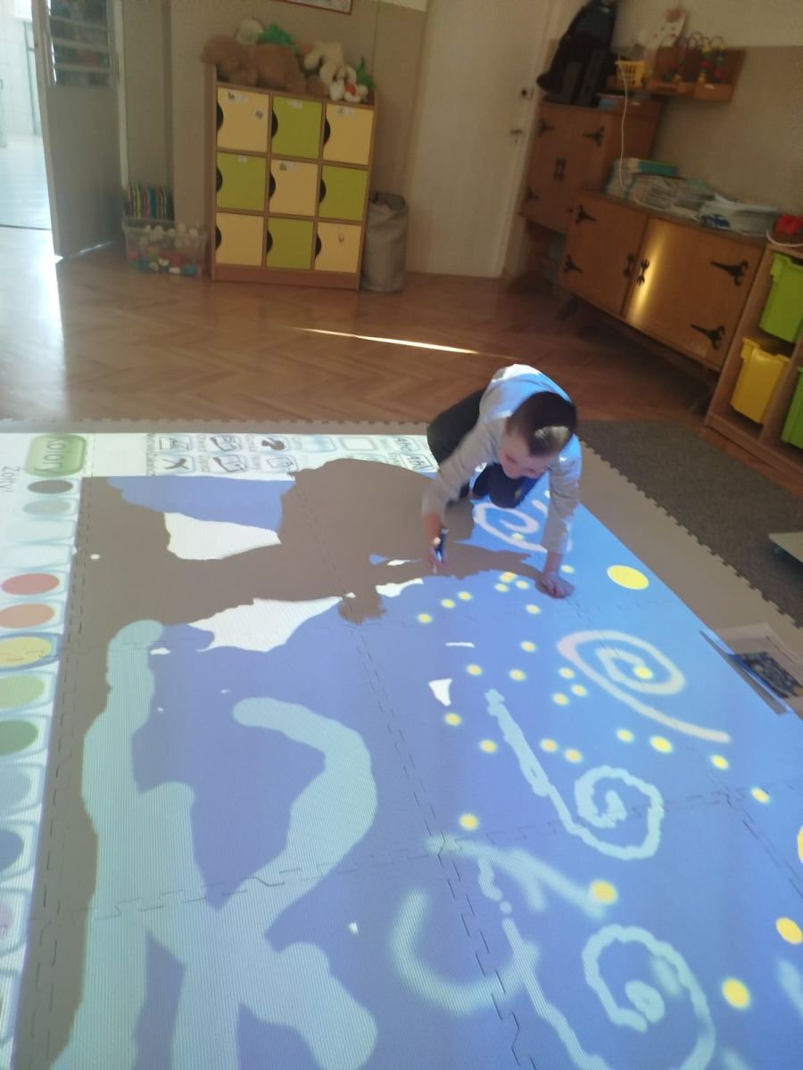 Zainspirowani twórczością Van Gogha, Krasnale przeniosły się na podłogę interaktywną, gdzie stworzyły własną wersję „Gwieździstej nocy”. Wspólna praca rozwijała współpracę rówieśniczą, logiczne i algorytmiczne myślenie, a także ekspresję twórczą.
