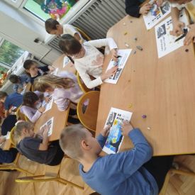 W minionym tygodniu grupa VI „Krasnale” wyruszyła w niezwykłą podróż do świata sztuki, poznając zawód malarza. Podczas zajęć dzieci zastanawiały się, kto może zostać malarzem, jakie cechy i umiejętności są potrzebne w tym zawodzie oraz czy praca artysty to wyłącznie przyjemność, czy również wysiłek, cierpliwość i wytrwałość. Rozmowy i zabawy wprowadziły przedszkolaki w świat twórczej ekspresji, a także pomogły im zrozumieć społeczną rolę artystów, którzy poprzez swoje dzieła potrafią wyrażać emocje, piękno i różnorodne wartości.