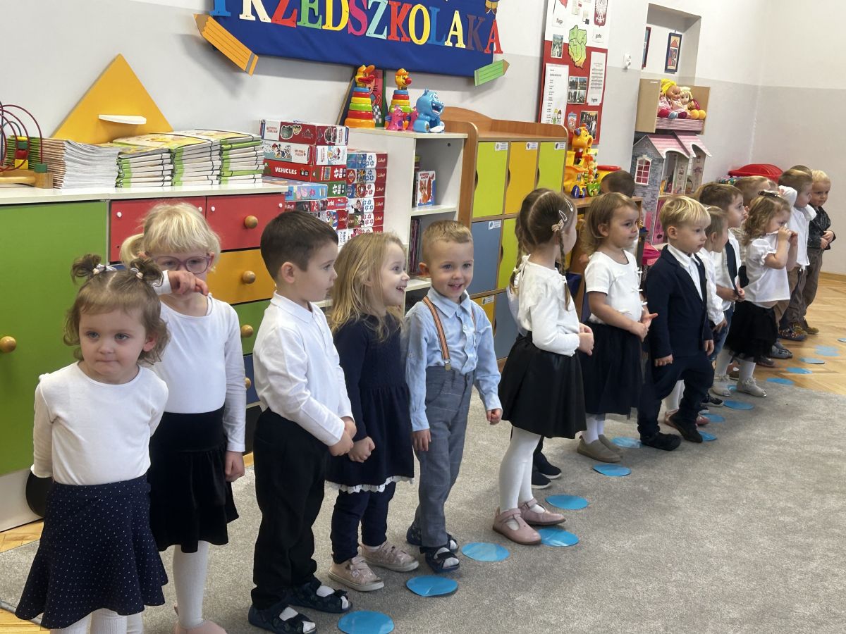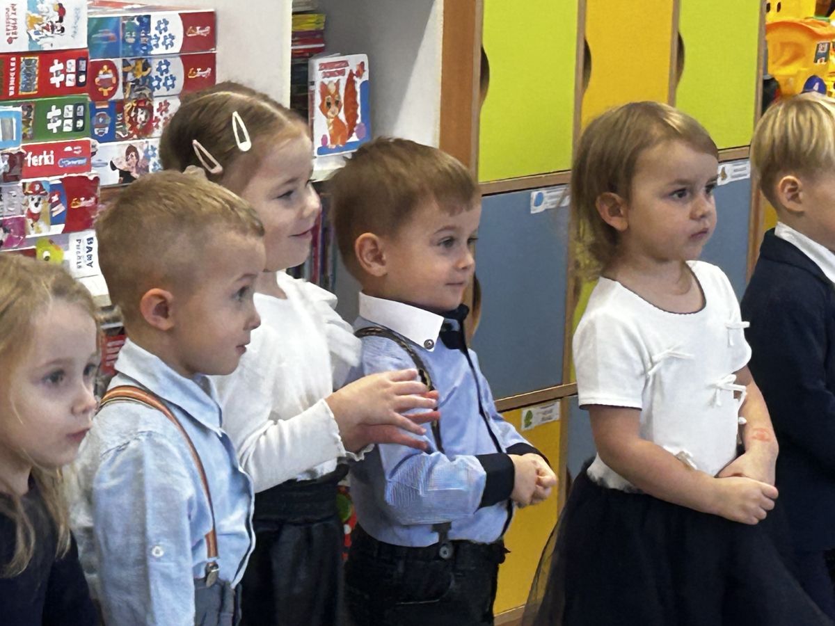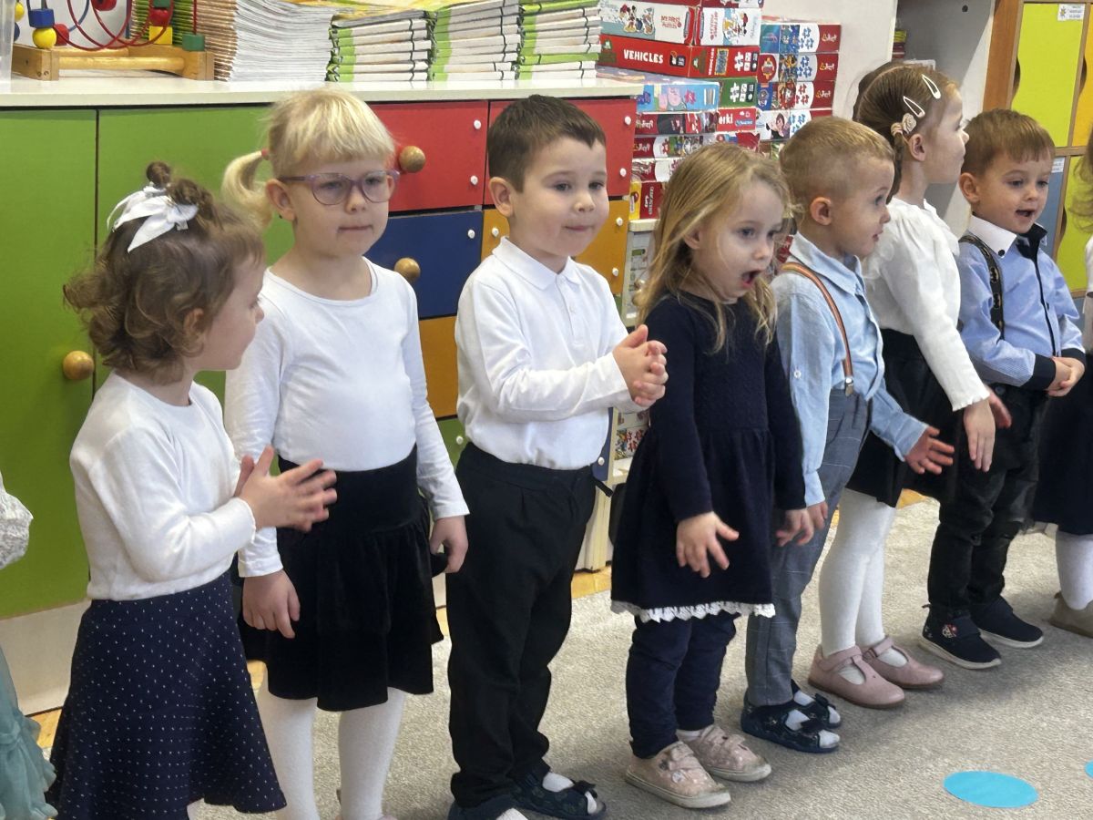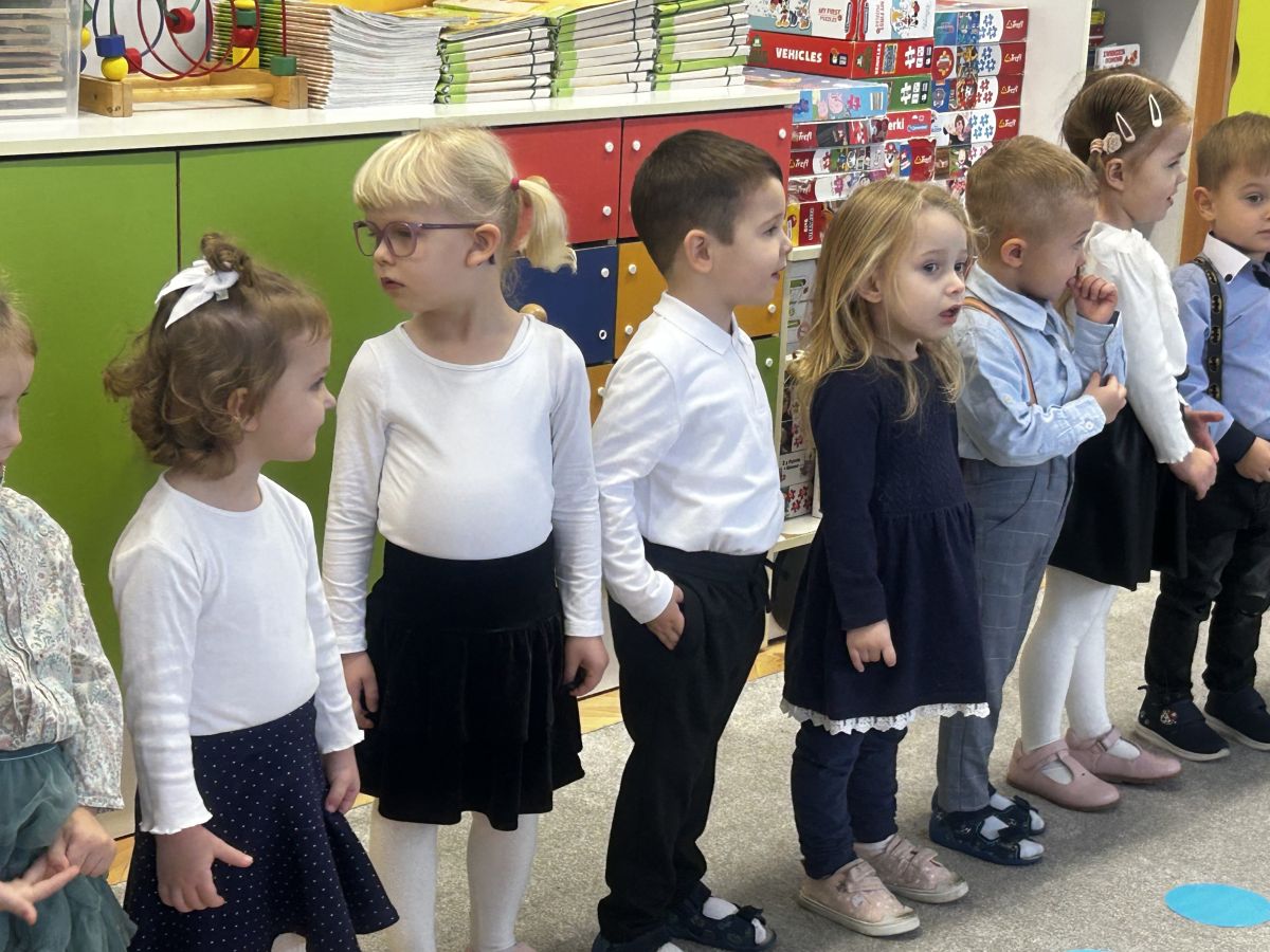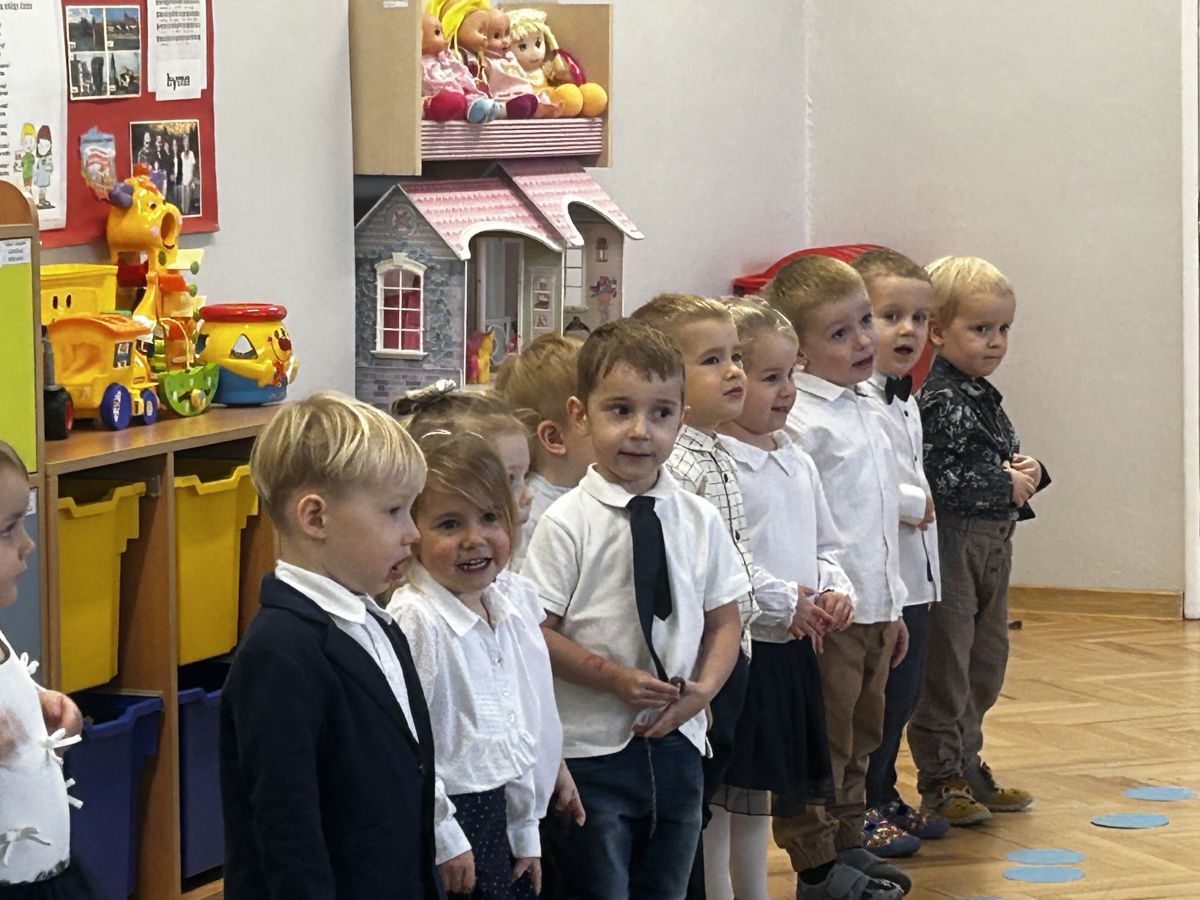 Uroczystość rozpoczęła się krótkim programem artystycznym. Dzieci recytowały wiersz i zaprezentowały piosenki, które przygotowywały od pierwszych dni pobytu w przedszkolu. Mimo wielkiej tremy poradziły sobie doskonale.