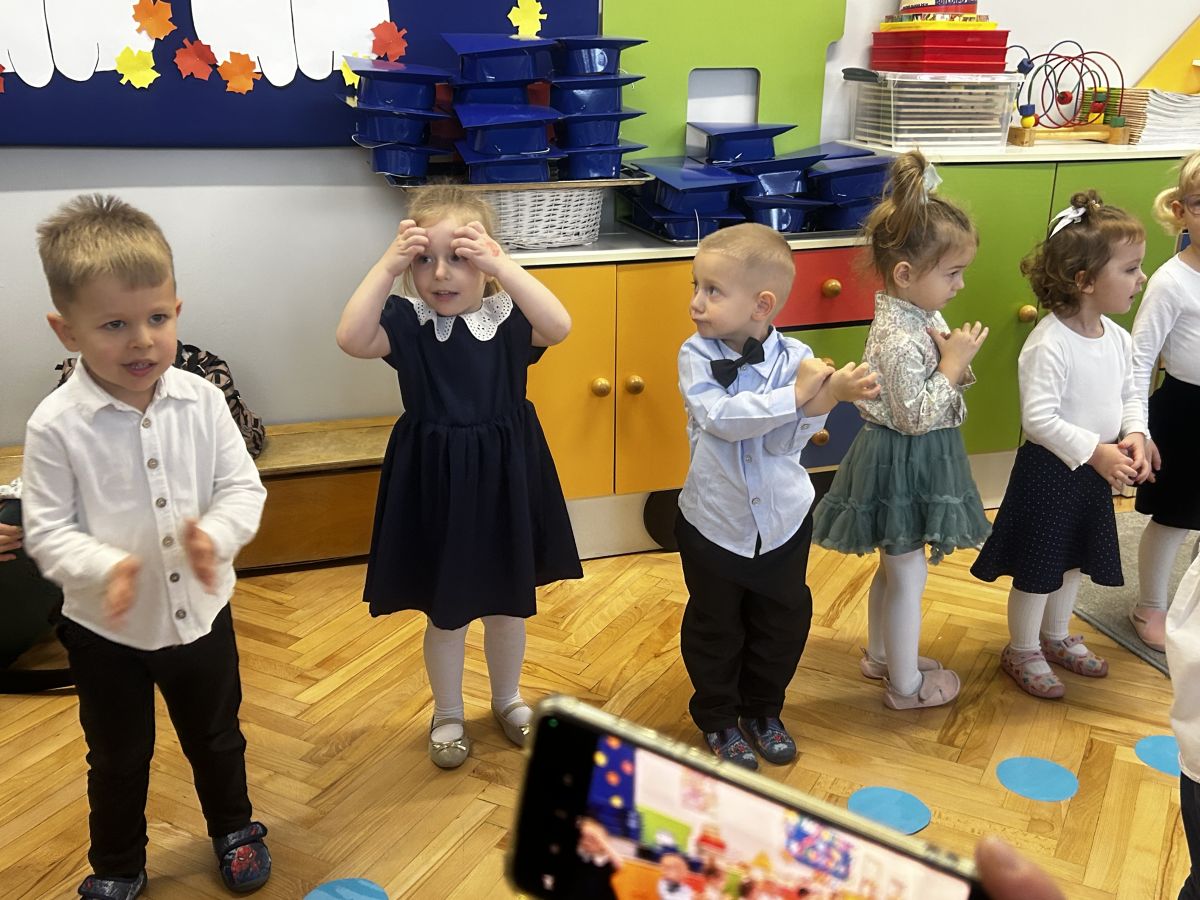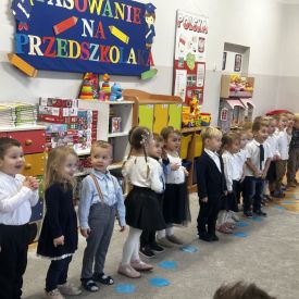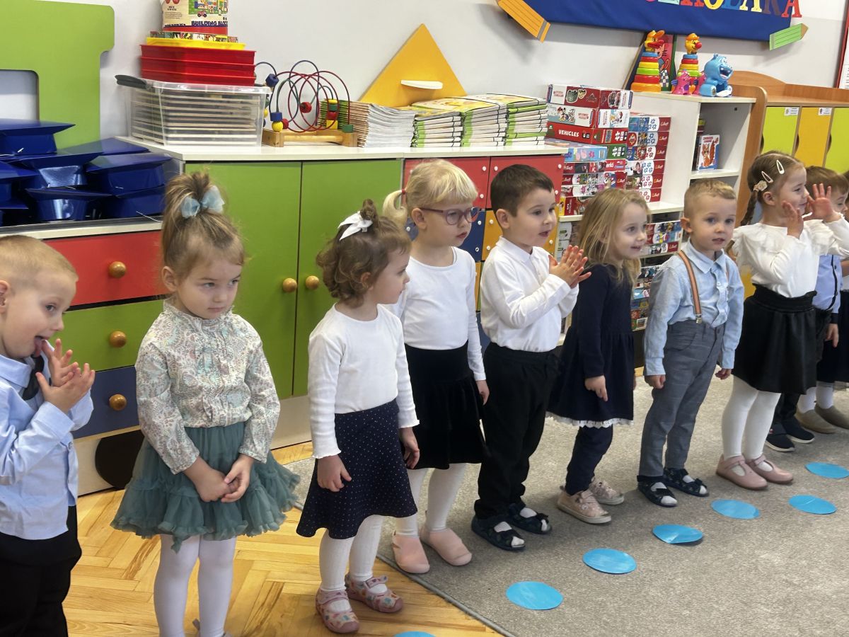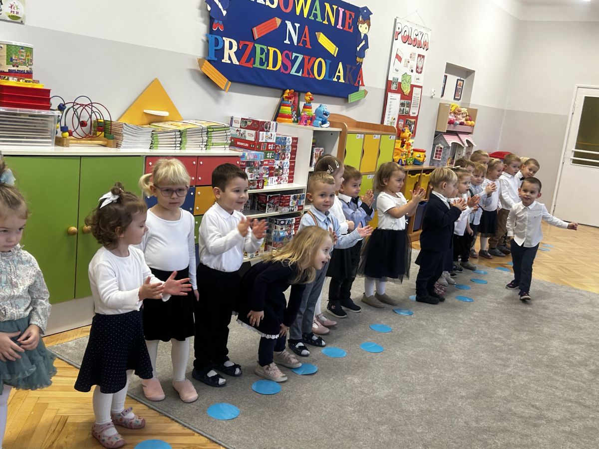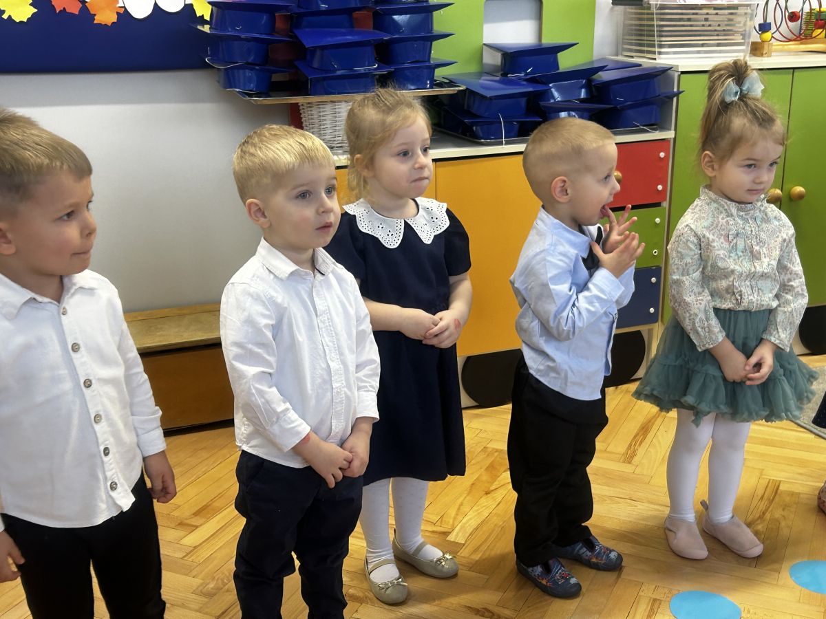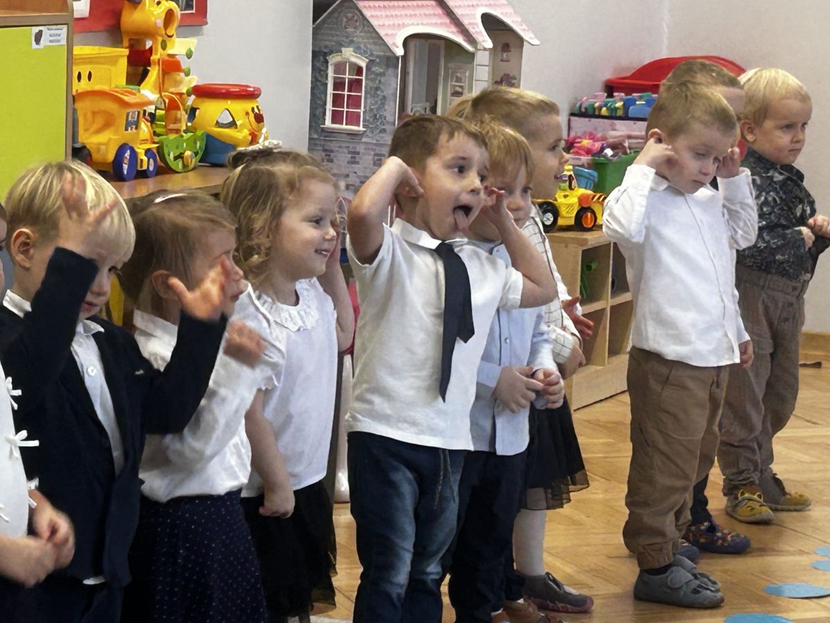 Uroczystość rozpoczęła się krótkim programem artystycznym. Dzieci recytowały wiersz i zaprezentowały piosenki, które przygotowywały od pierwszych dni pobytu w przedszkolu. Mimo wielkiej tremy poradziły sobie doskonale.