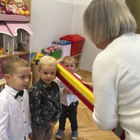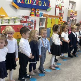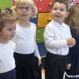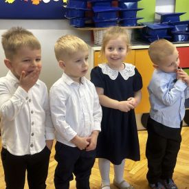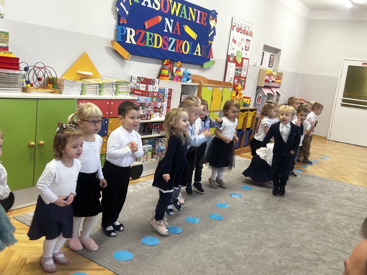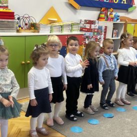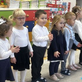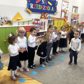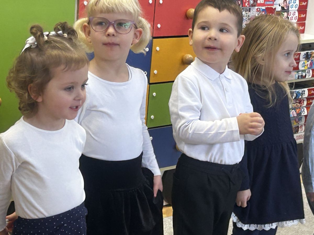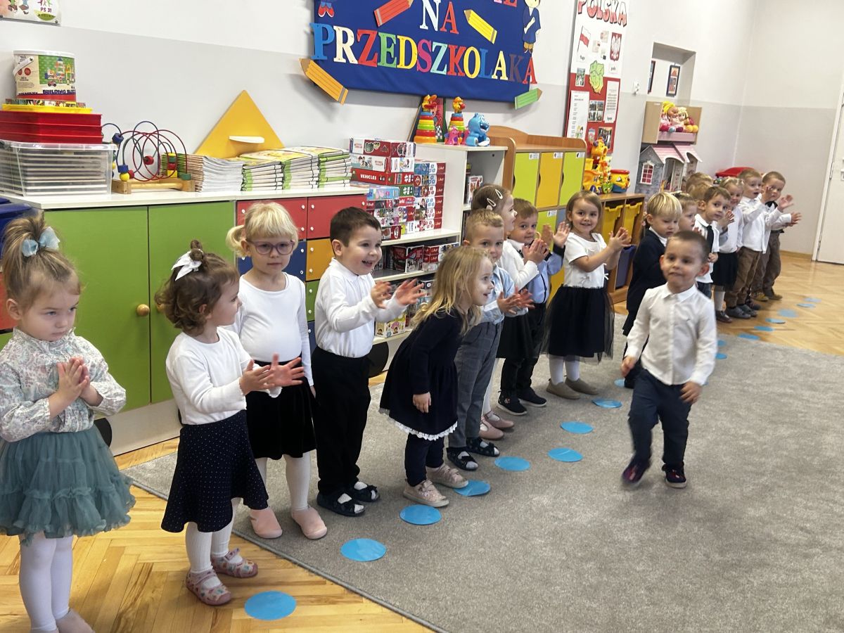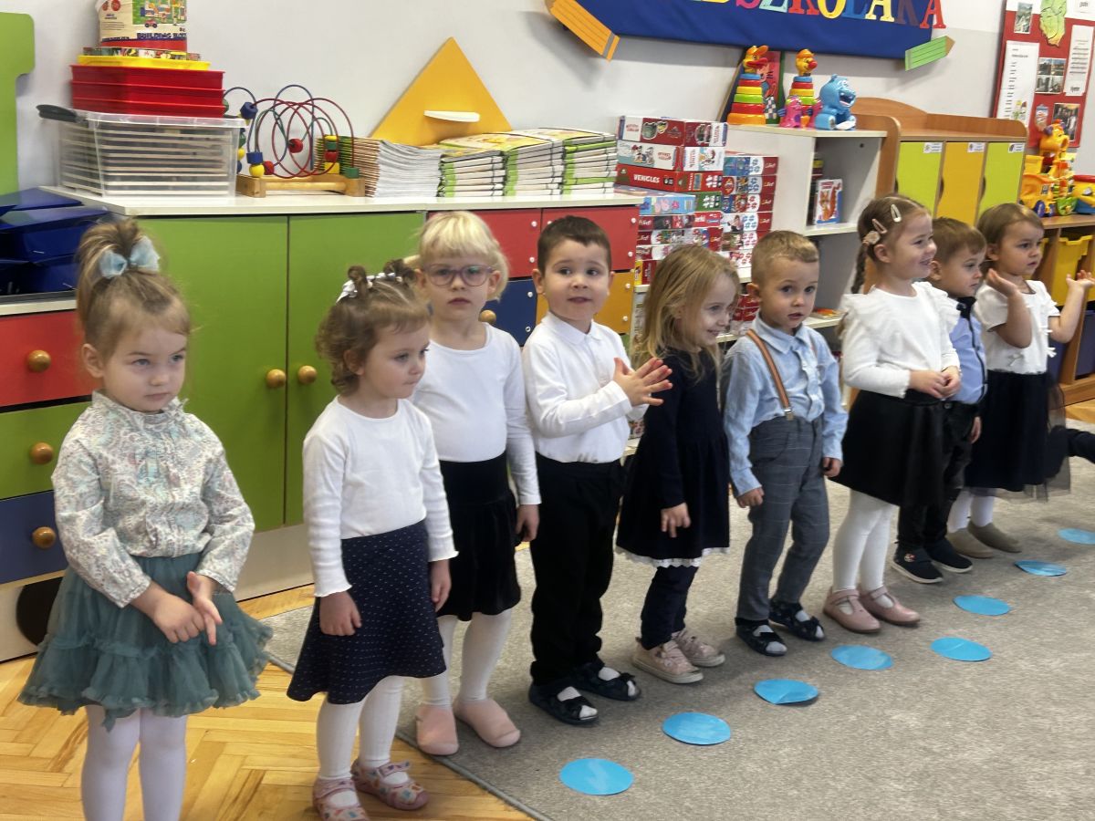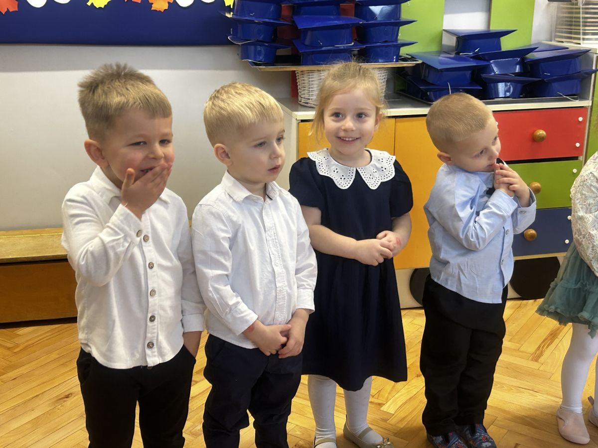Uroczystość rozpoczęła się krótkim programem artystycznym. Dzieci recytowały wiersz i zaprezentowały piosenki, które przygotowywały od pierwszych dni pobytu w przedszkolu. Mimo wielkiej tremy poradziły sobie doskonale.